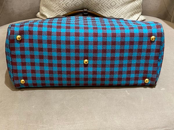 • Material: Turquoise/Brown Canvas with Leather Trim