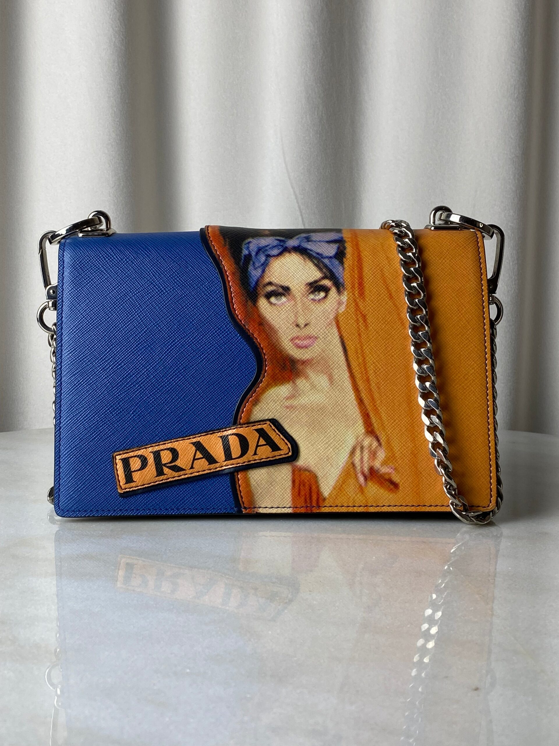 Prada Blue Multicolor Patched Frame Crossbody Bag