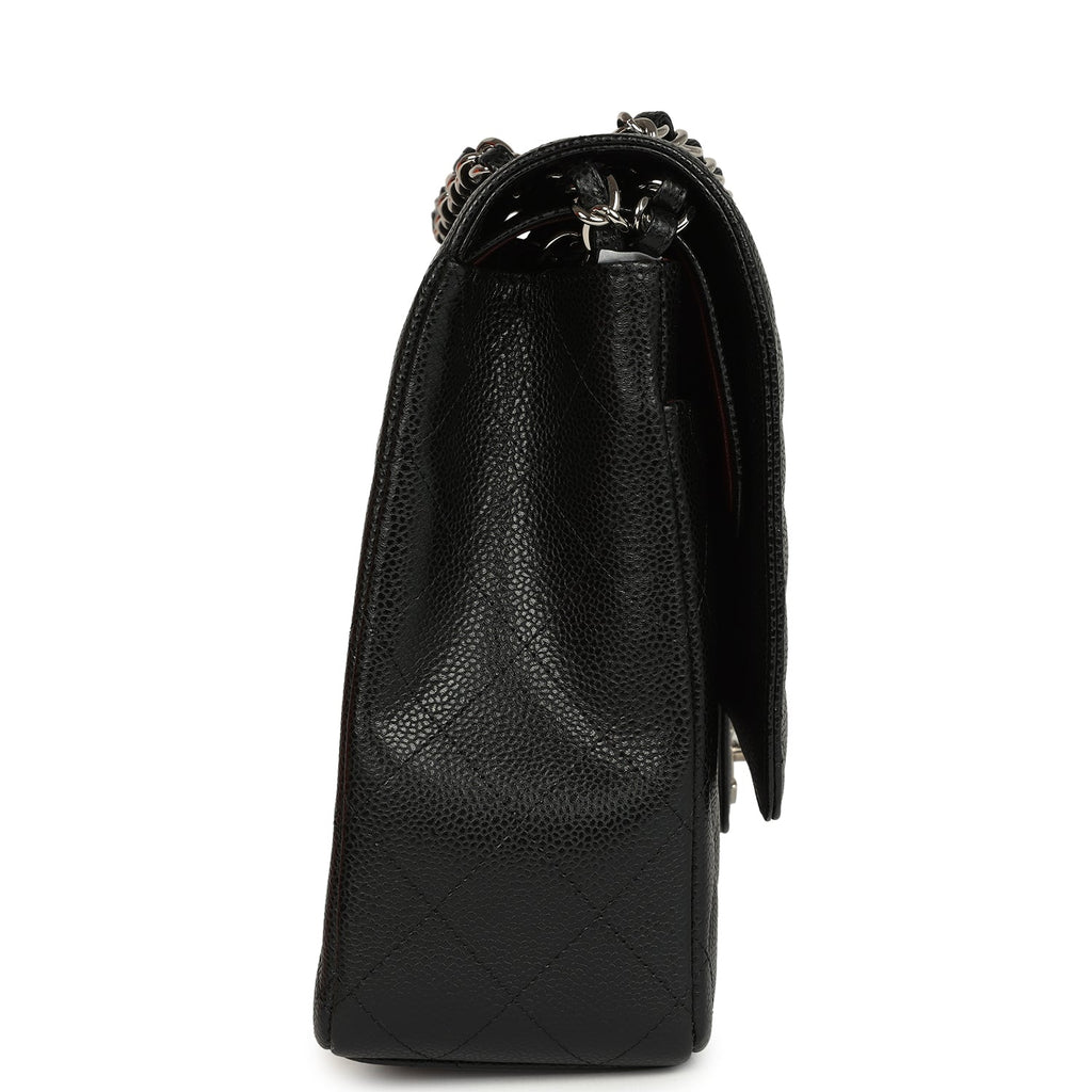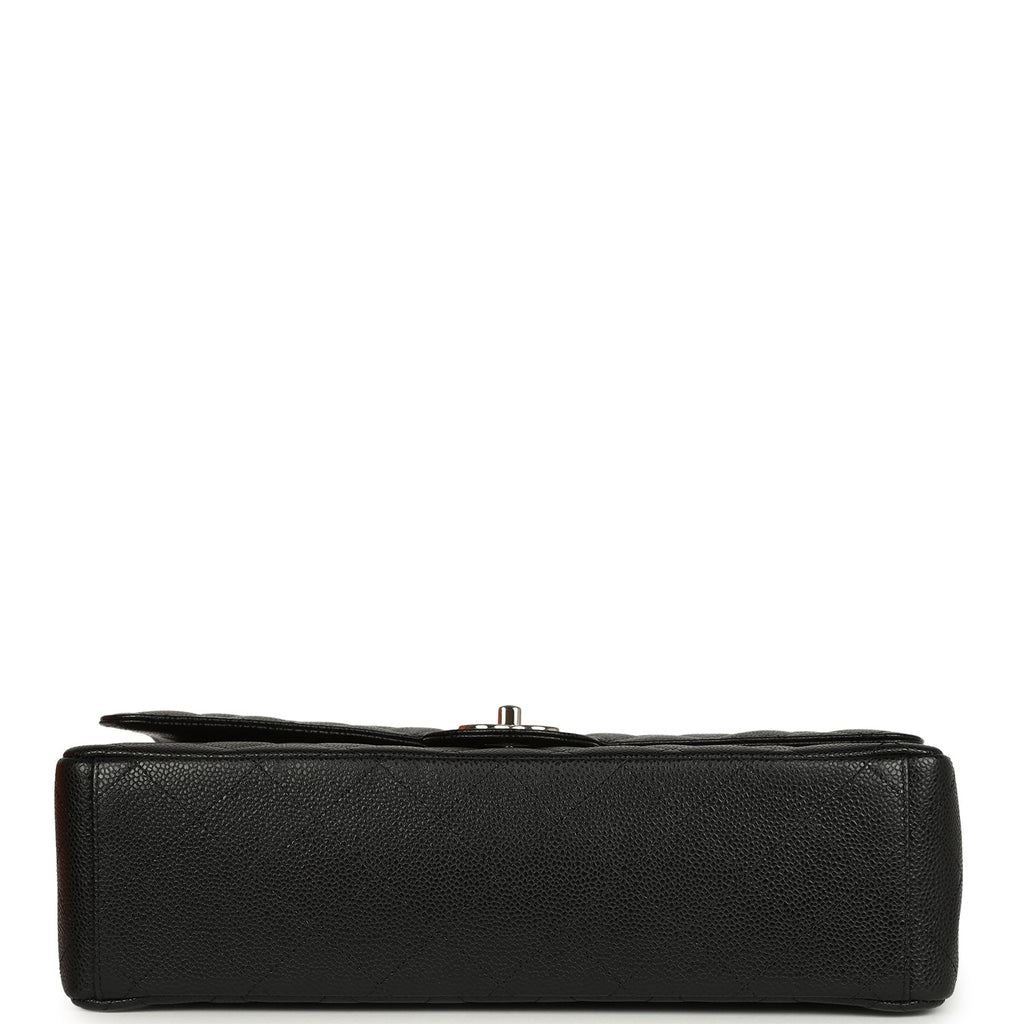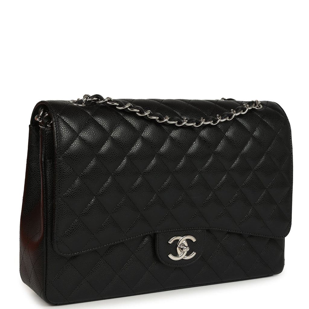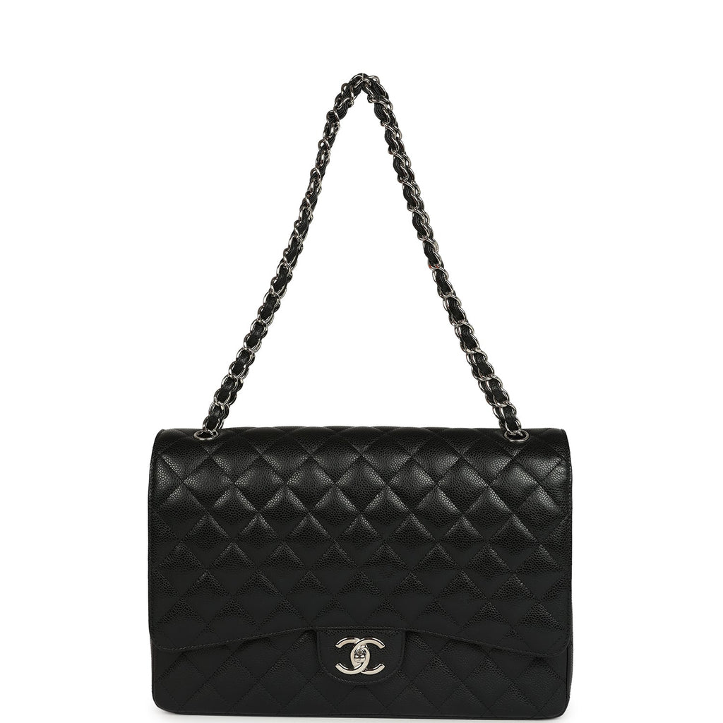 Pre-owned Chanel Maxi Classic Double Flap Bag Black Caviar Silver Hardware Shop for an authentic pre-owned Chanel Maxi Classic Double Flap in black caviar with silver hardware in mint condition at Madison Avenue Couture.
