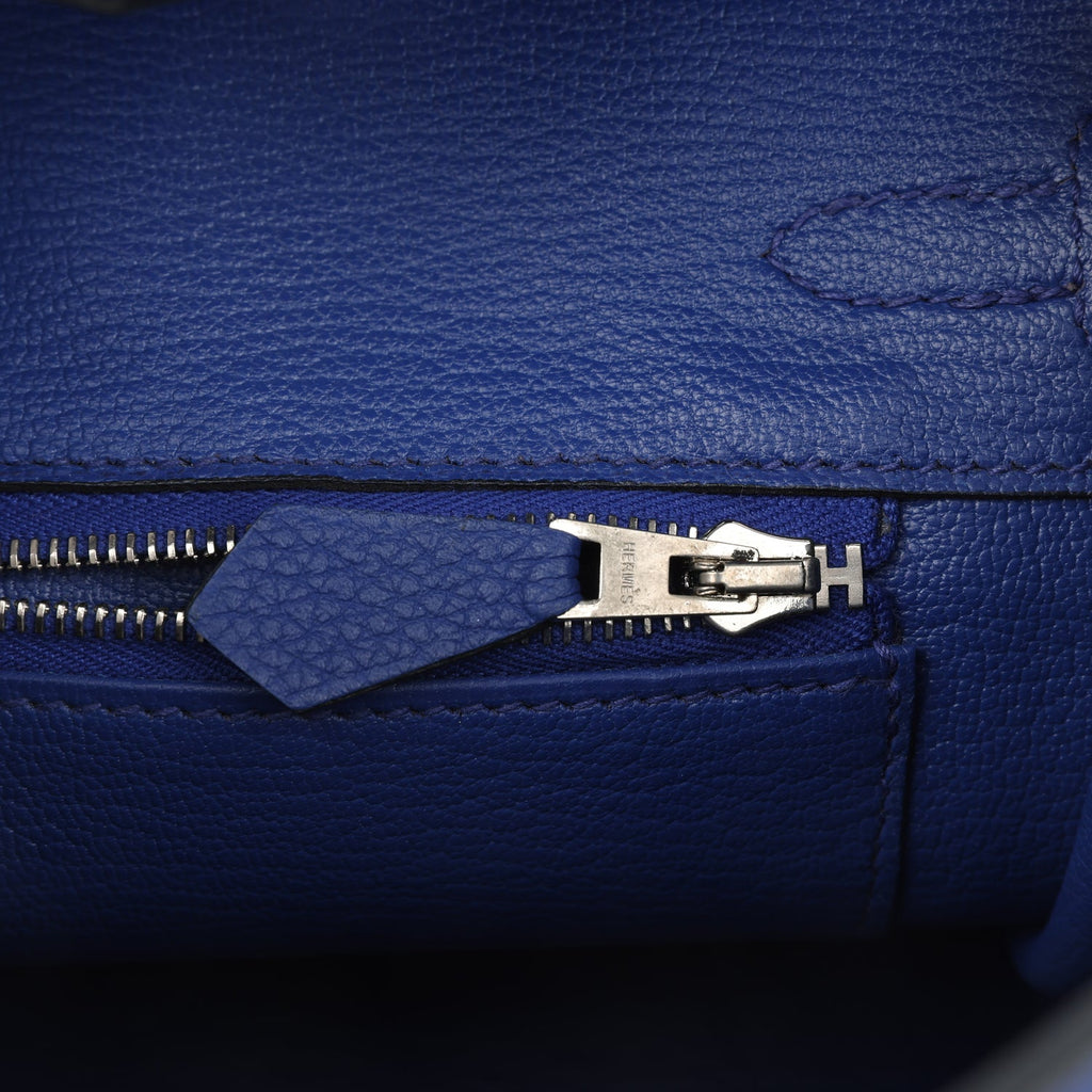 Pre-owned Hermes Birkin 25 Bleu Electric Togo Palladium Hardware Shop for an authentic pre-owned Hermes Birkin 25 in Bleu Electric Togo with palladium hardware in excellent to mint condition at Madison Avenue Couture.