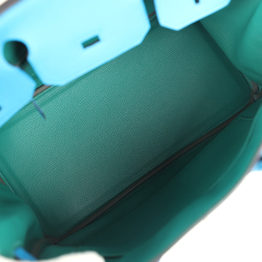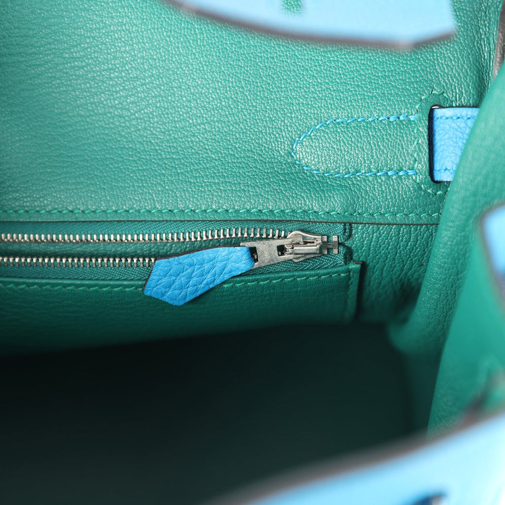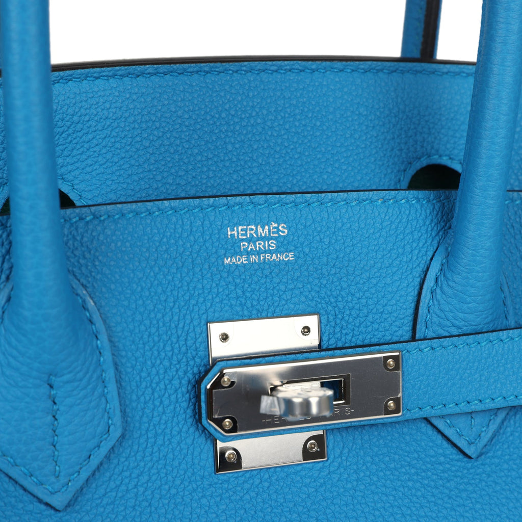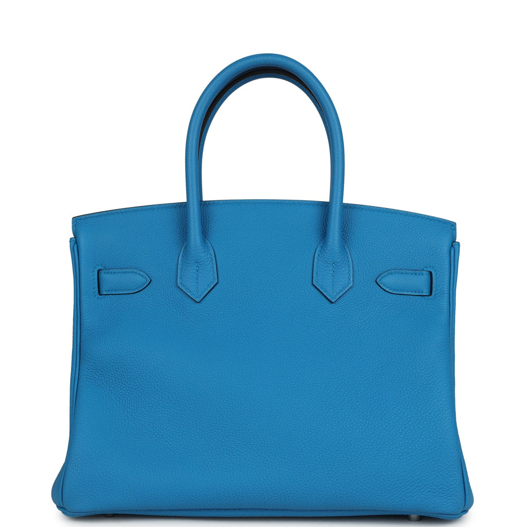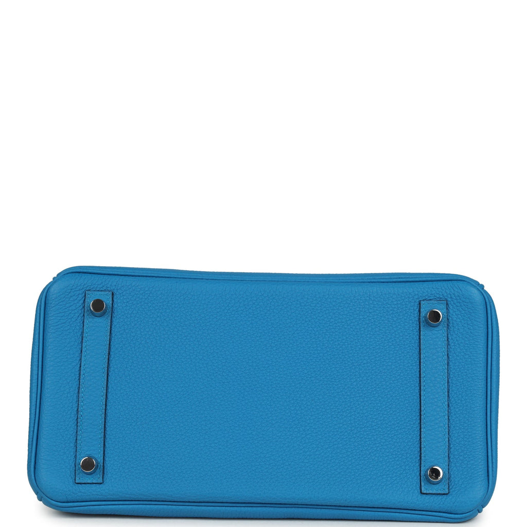 Pre-owned Hermes Birkin 30 Bleu Zanzibar Verso Togo Palladium Hardware Shop for an authentic pre-owned Hermes Birkin 30 in Bleu Zanzibar Verso togo leather with palladium hardware in mint condition at Madison Avenue Couture.