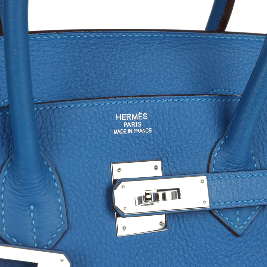 Pre-owned Hermes Birkin 35 Mykonos Togo Palladium Hardware Shop for an authentic pre-owned Hermes Birkin 35 in Mykonos togo leather with palladium hardware in excellent condition at Madison Avenue Couture.