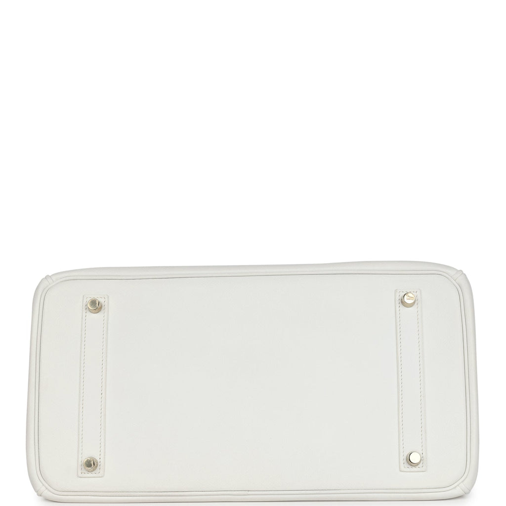 Pre-owned Hermes Birkin 35 White Epsom Gold Hardware Shop for an authentic pre-owned Hermes Birkin 35 in White clemence leather with gold hardware in excellent condition at Madison Avenue Couture.