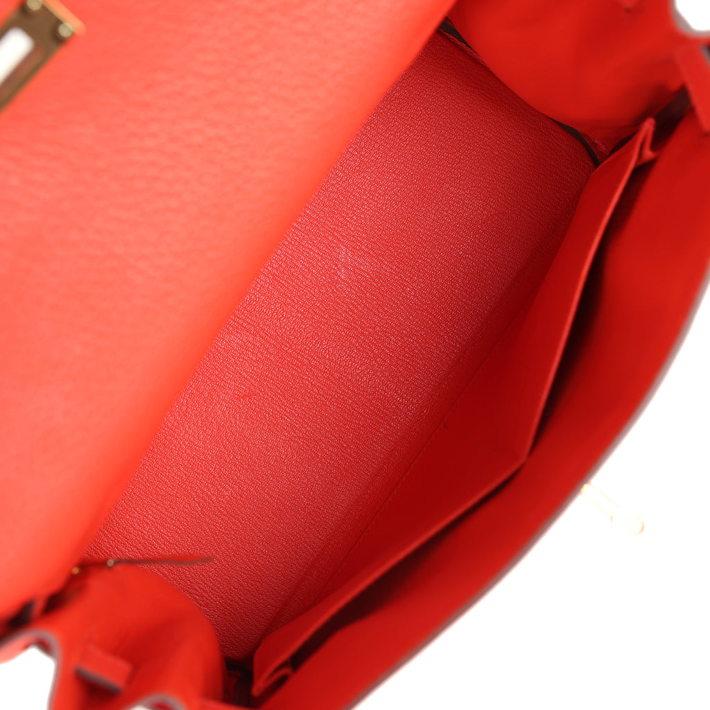 Pre-owned Hermes Kelly Retourne 28 Capucine Togo Gold Hardware Shop for an authentic pre-owned Hermes Kelly 28 in Capucine togo with gold hardware in mint condition at Madison Avenue Couture.
