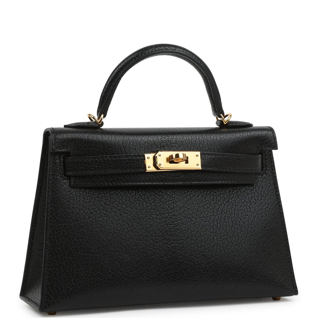 Pre-owned Hermes Kelly Sellier 20 Black Chevre Chamkila Gold Hardware Shop for an authentic pre-owned Hermes Kelly Sellier 20 in Black chevre leather with gold hardware in excellent to mint condition at Madison Avenue Couture.