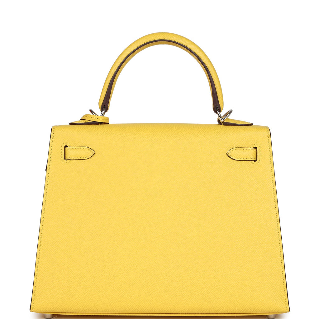 Pre-owned Hermes Kelly Sellier 25 Jaune De Naples Epsom Palladium Hardware Shop for an authentic pre-owned Hermes Kelly Sellier 25 in Jaune De Naples epsom leather with palladium hardware in excellent condition at Madison Avenue Couture.