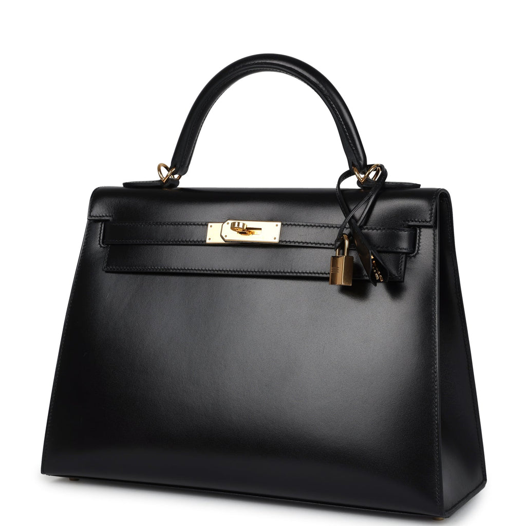 Pre-owned Hermes Kelly Sellier 32 Black Box Gold Hardware Shop for an authentic pre-owned Hermes Kelly 32 in Black box leather with gold hardware in excellent to mint condition at Madison Avenue Couture.