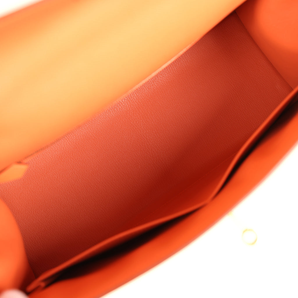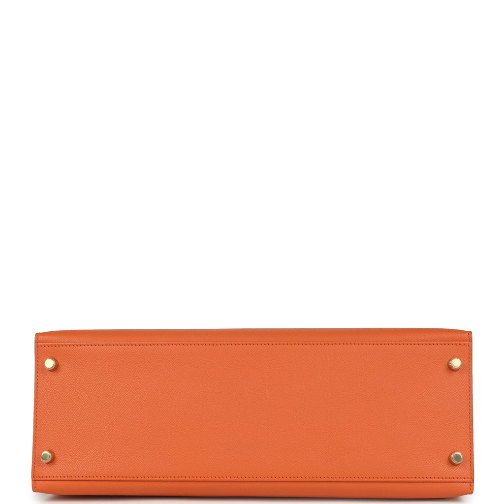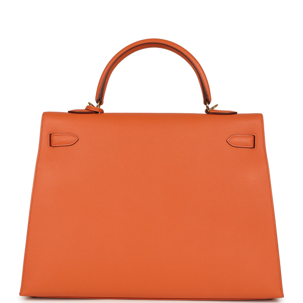 Pre-owned Hermes Kelly Sellier 35 Mango Epsom Gold Hardware Shop for an authentic pre-owned Hermes Kelly Sellier 35 in Mango epsom leather with gold hardware in mint condition at Madison Avenue Couture.