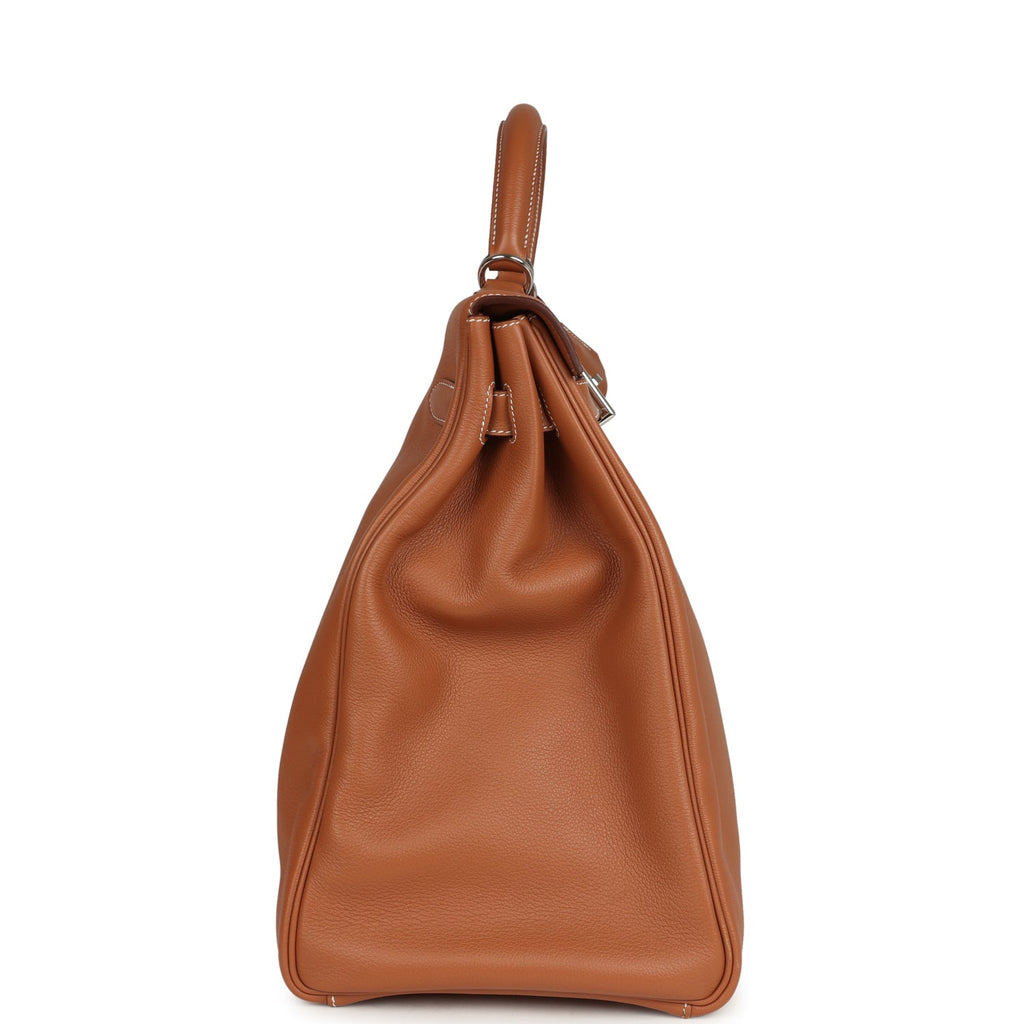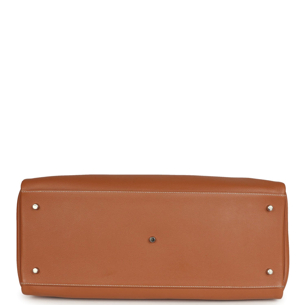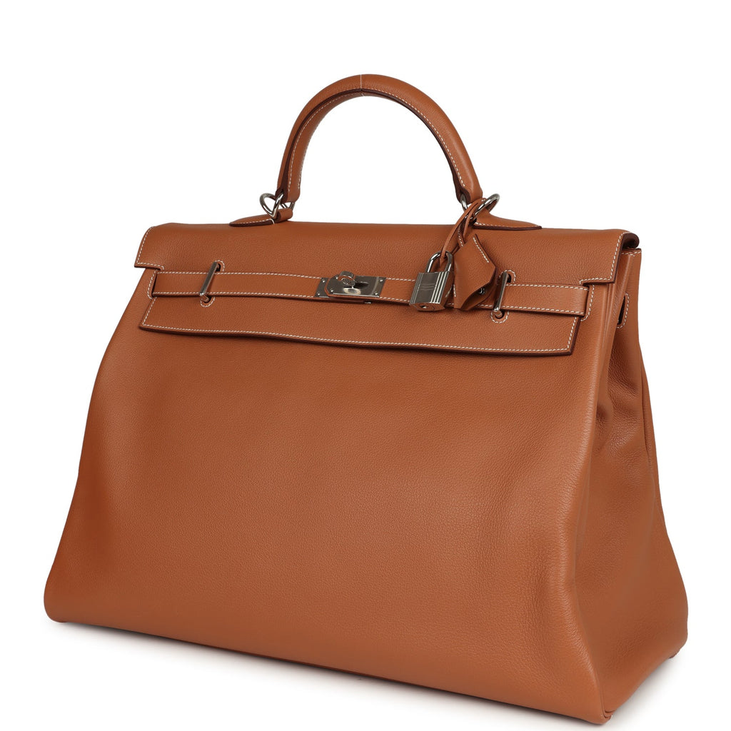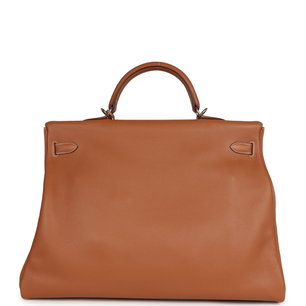 Pre-owned Hermes Kelly Voyage 50 Gold Evercolor Palladium Hardware Shop for an authentic pre-owned Hermes Kelly Relax Voyage 50 in Gold evercolor leather with palladium hardware in excellent condition at Madison Avenue Couture.