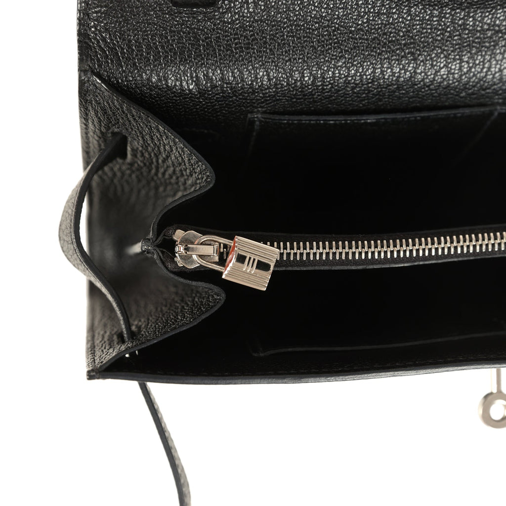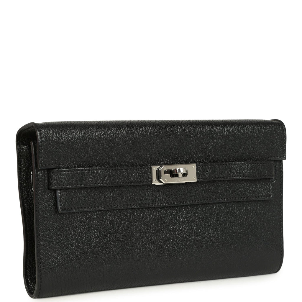 Pre-owned Hermes Kelly Wallet To Go Black Chevre Mysore Palladium Hardware Shop for an authentic pre-owned Hermes Kelly Wallet To Go in Black Chevre Mysore leather with palladium hardware in excellent condition at Madison Avenue Couture.