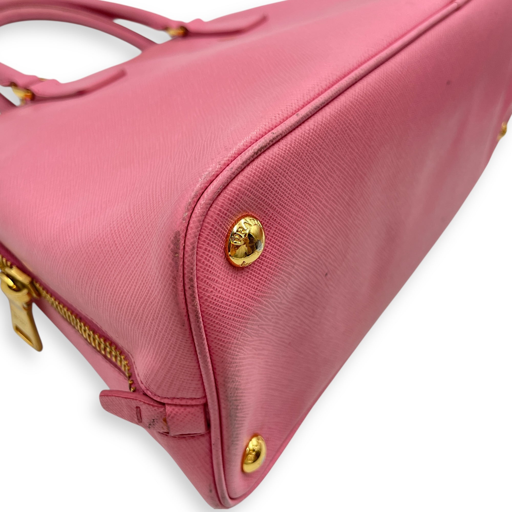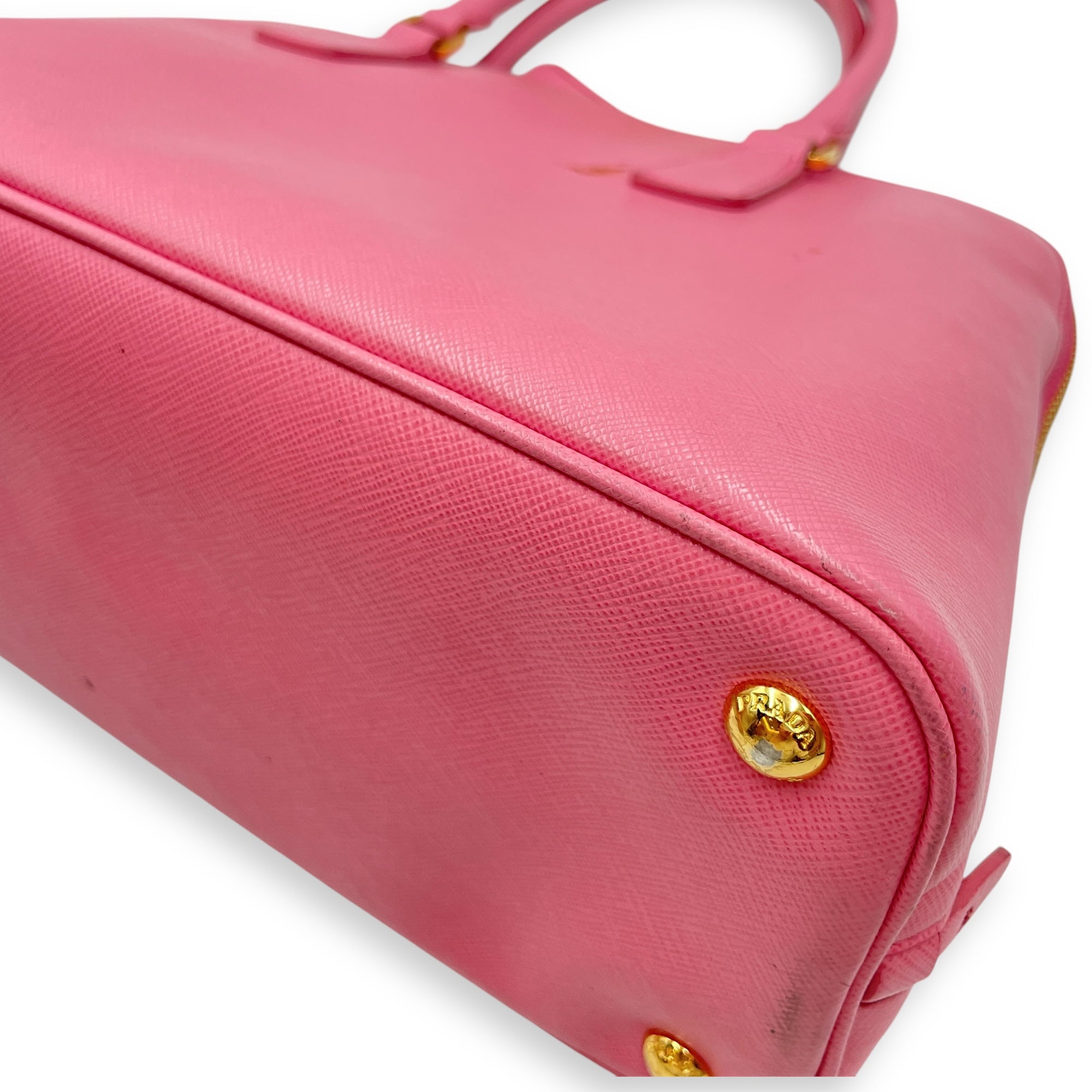 Promenade Pink Top Handle Bag in Saffiano Leather, Gold hardware