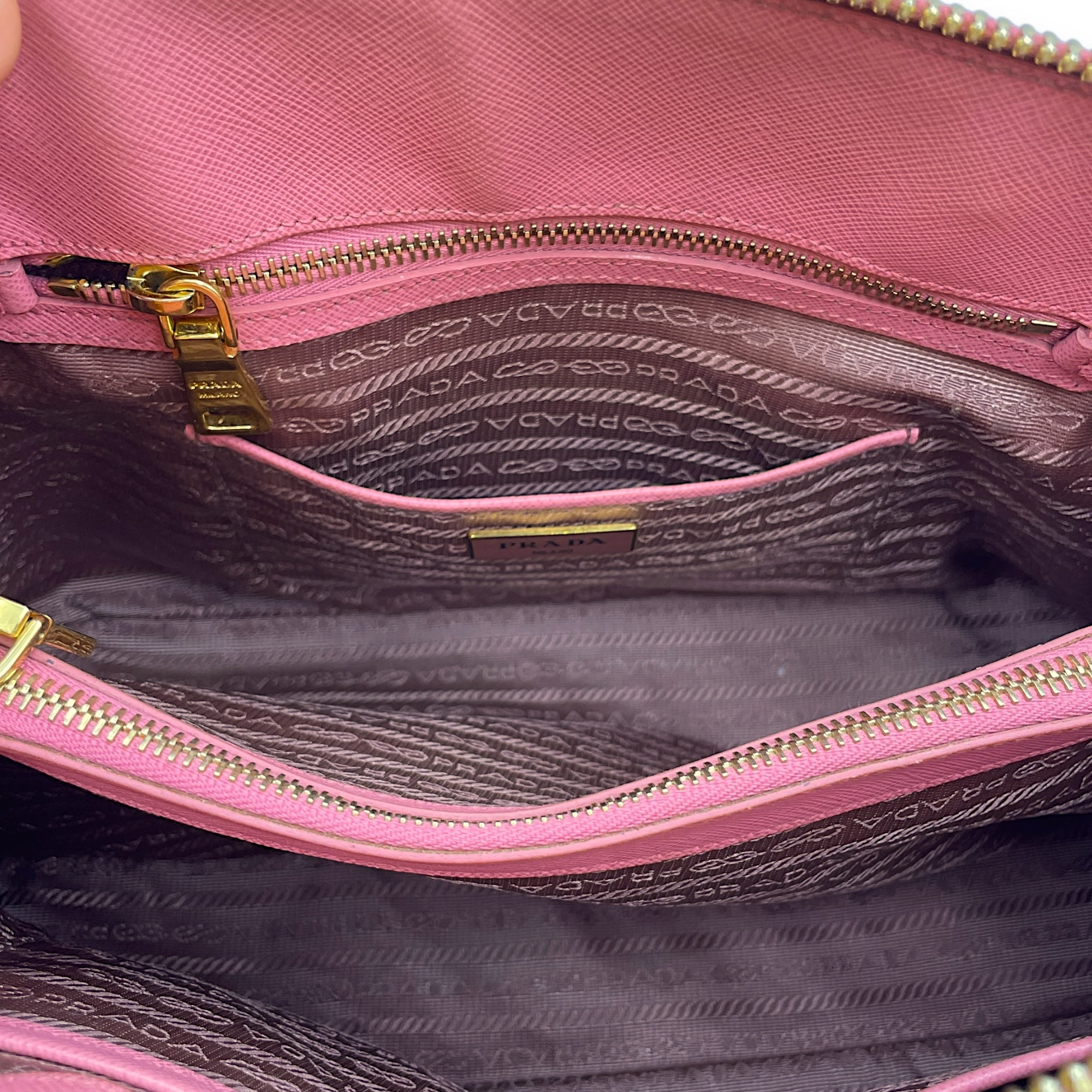 Be the first to review “Promenade Pink Top Handle Bag in Saffiano Leather, Gold hardware”