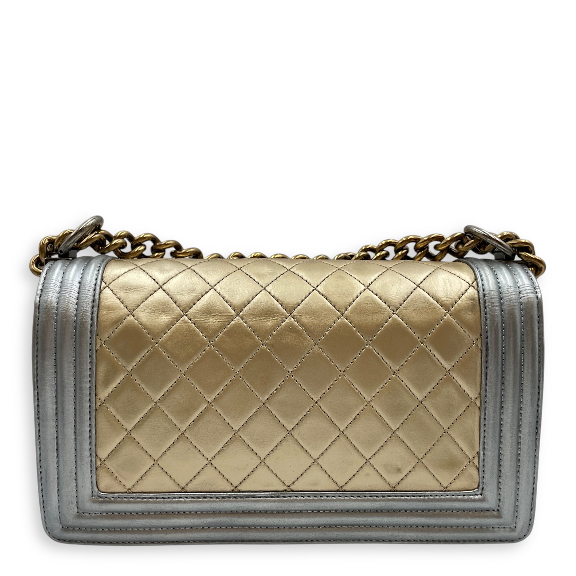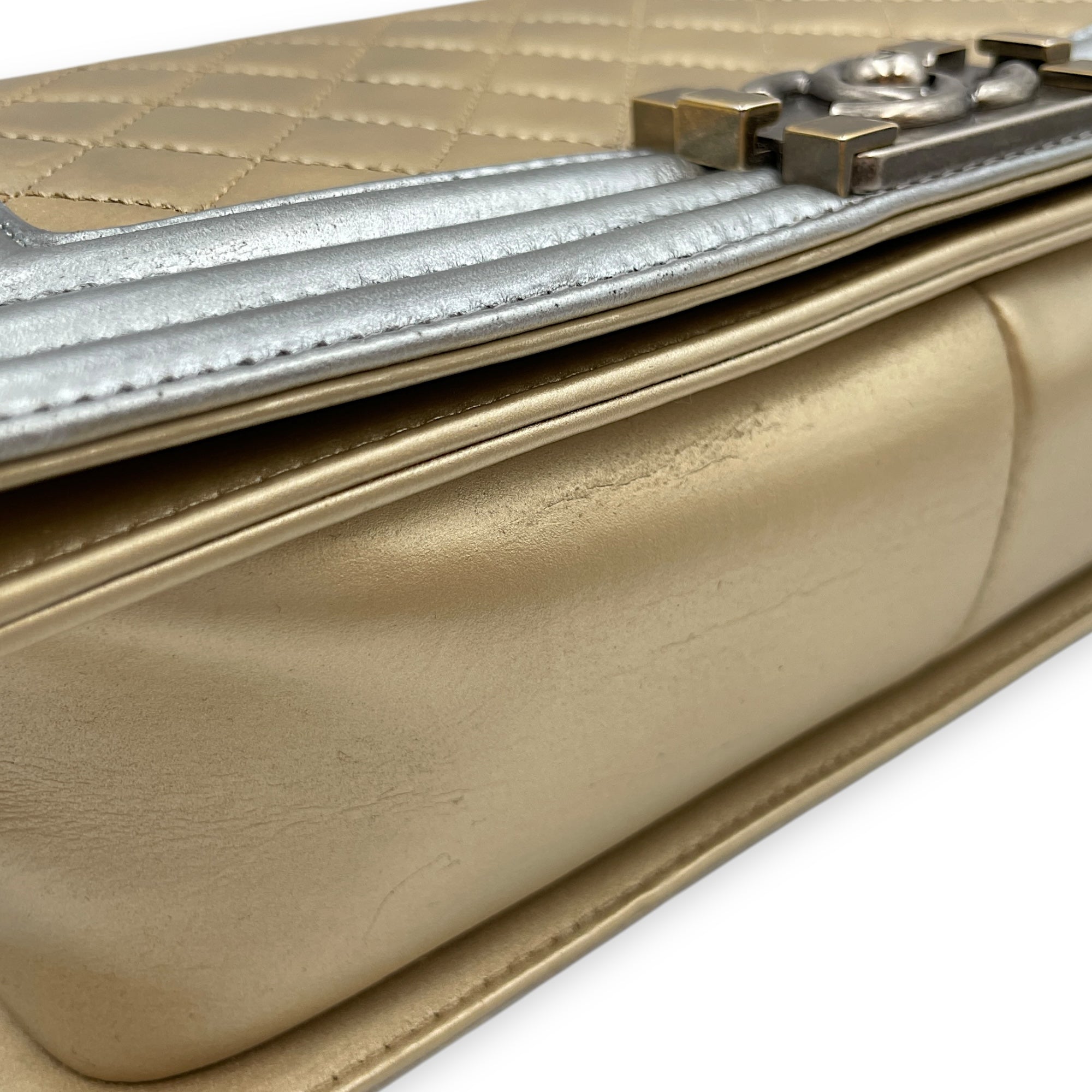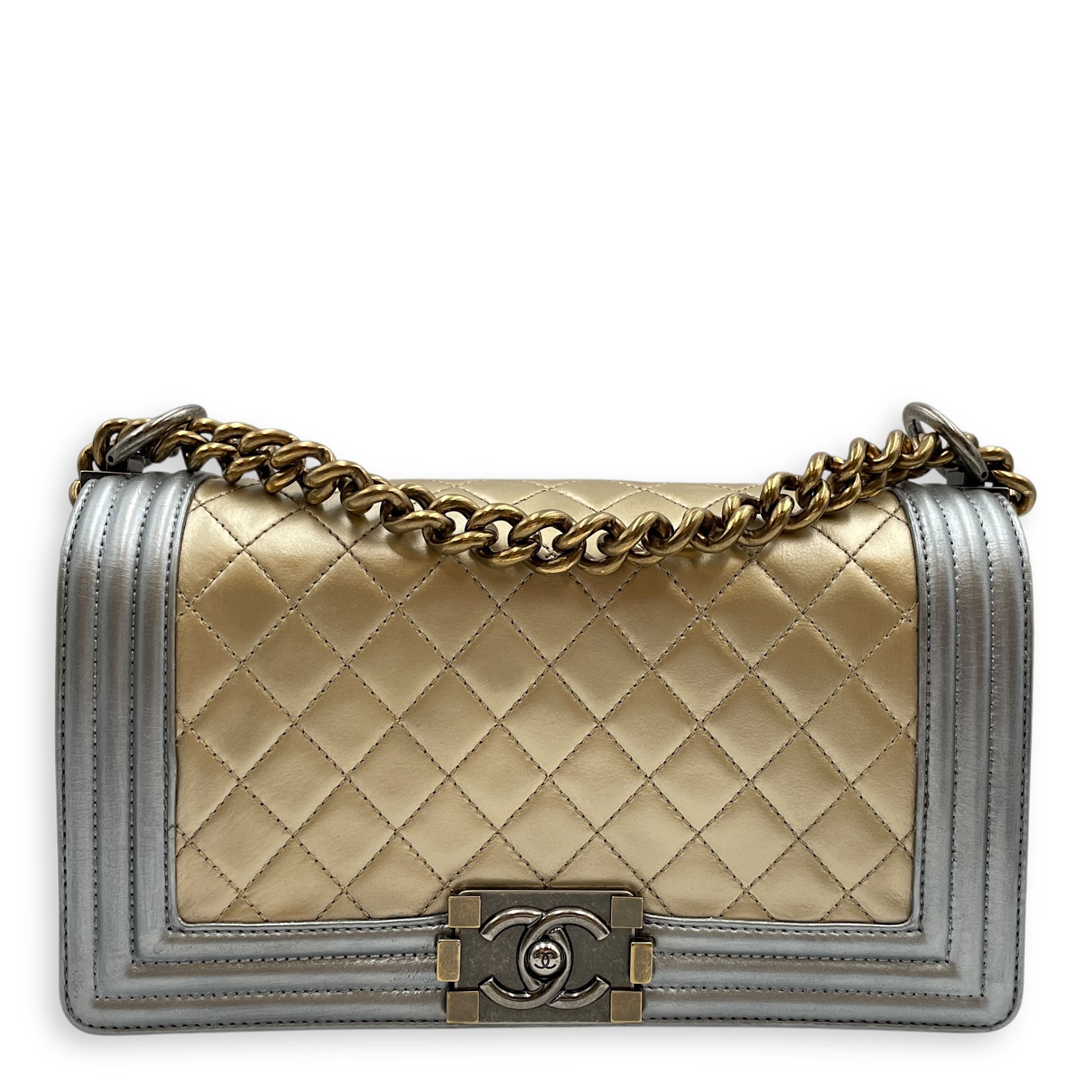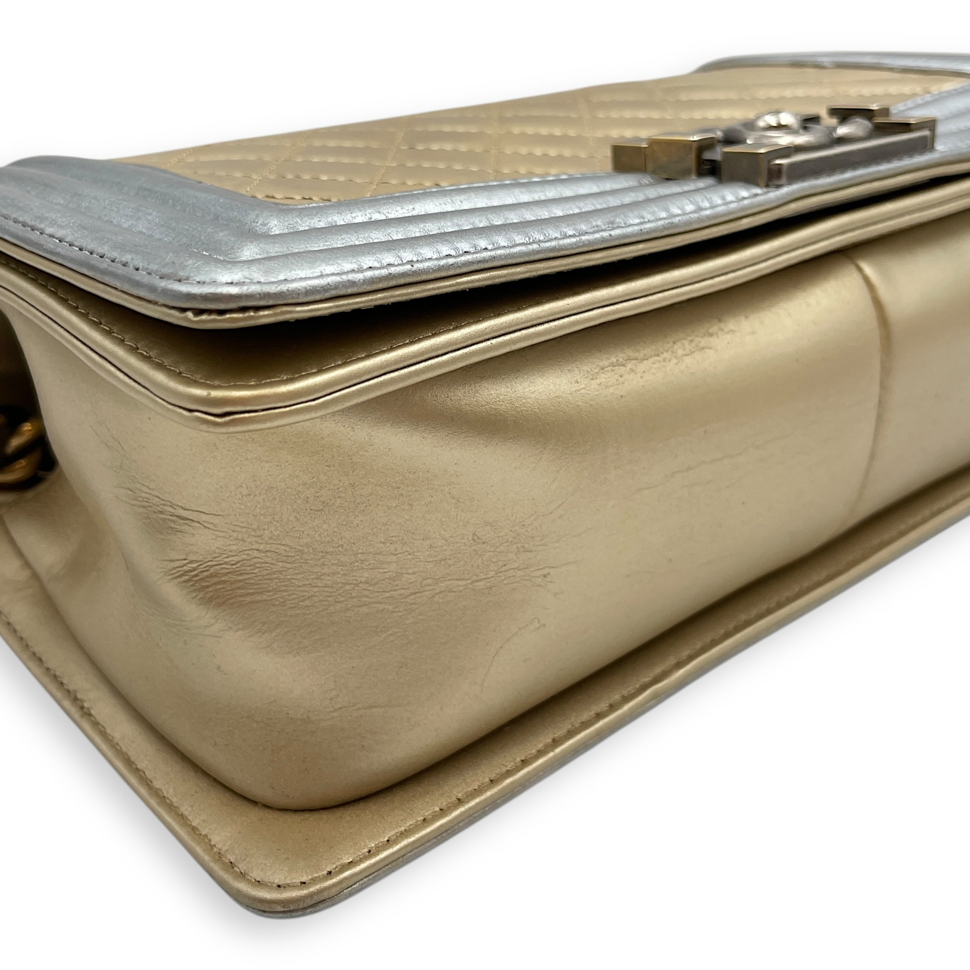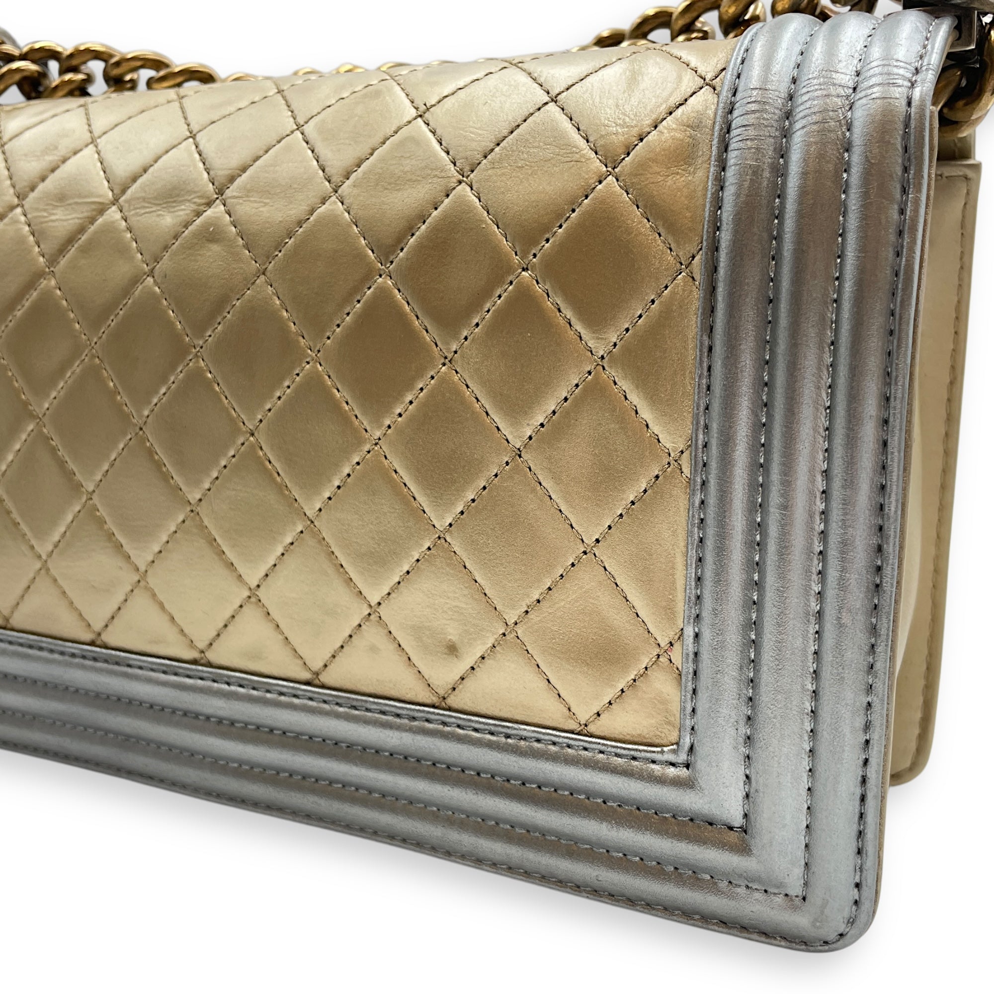 Quilted Bi-Colour Boy Medium Gold/Silver Shoulder Bag in Metallic, Brushed Gold hardware