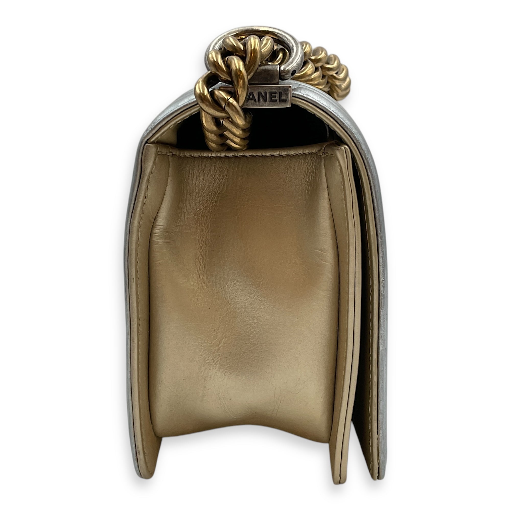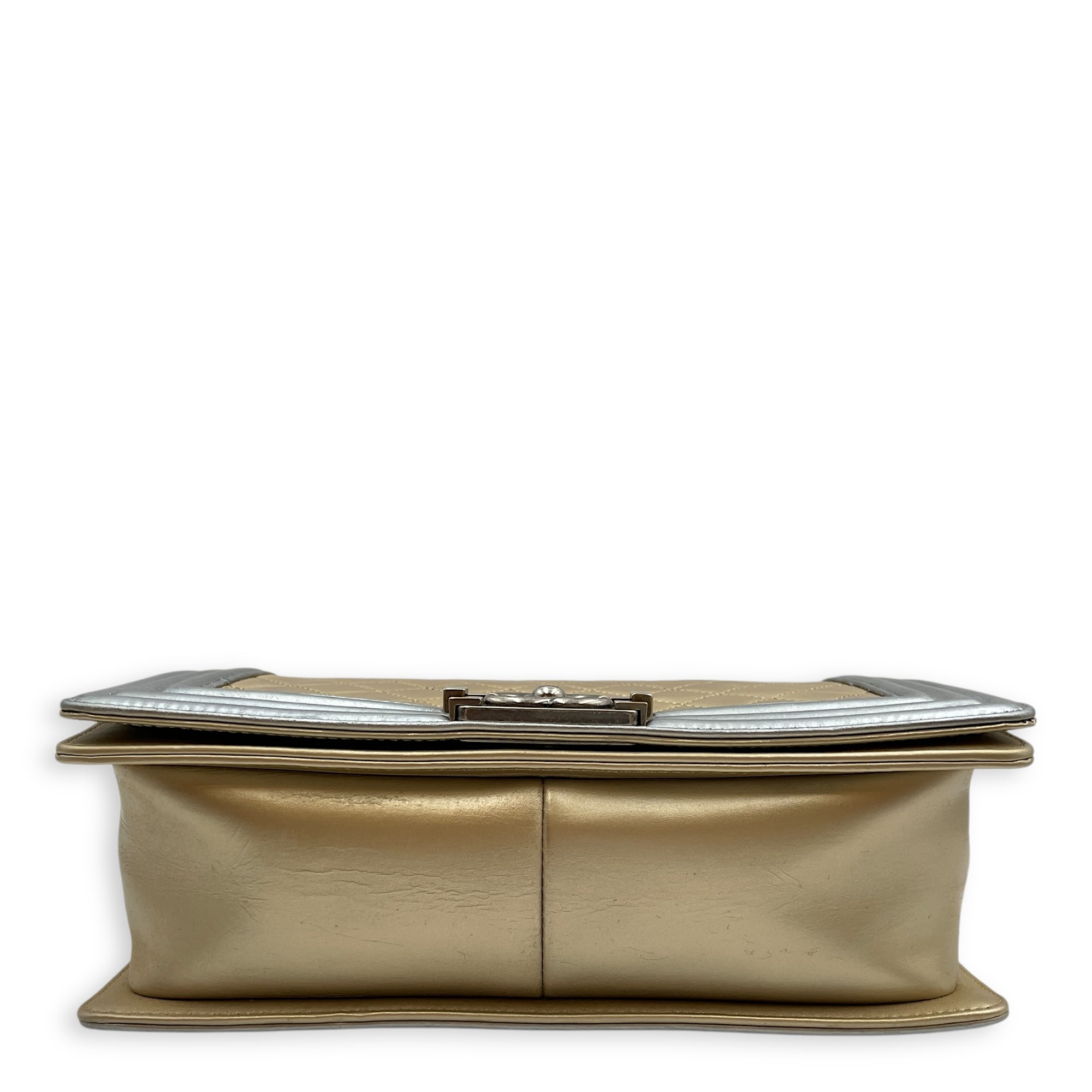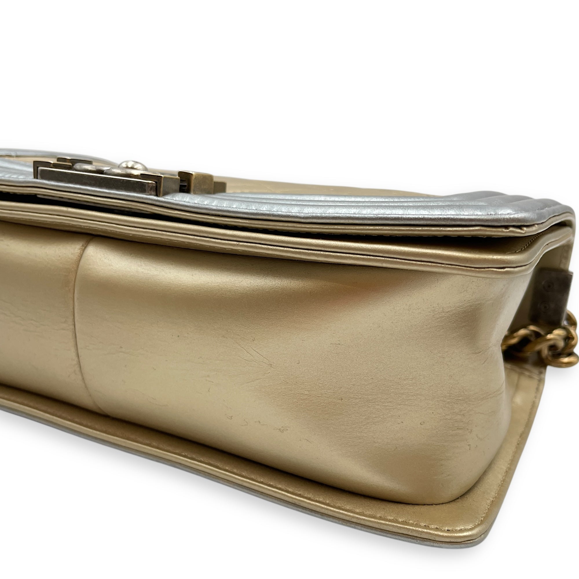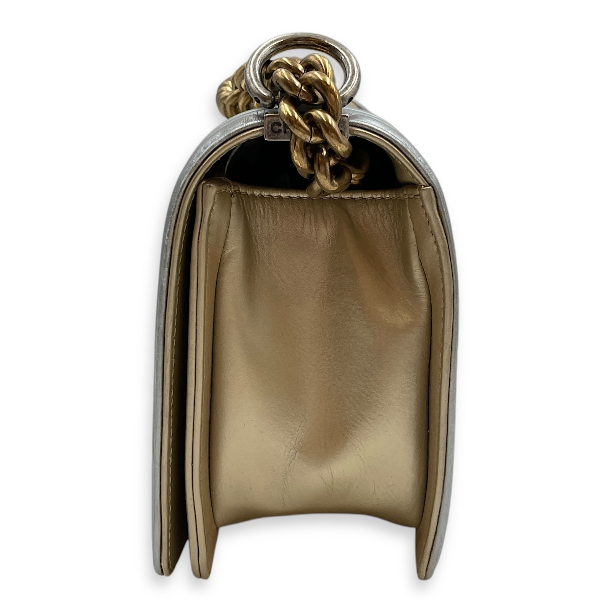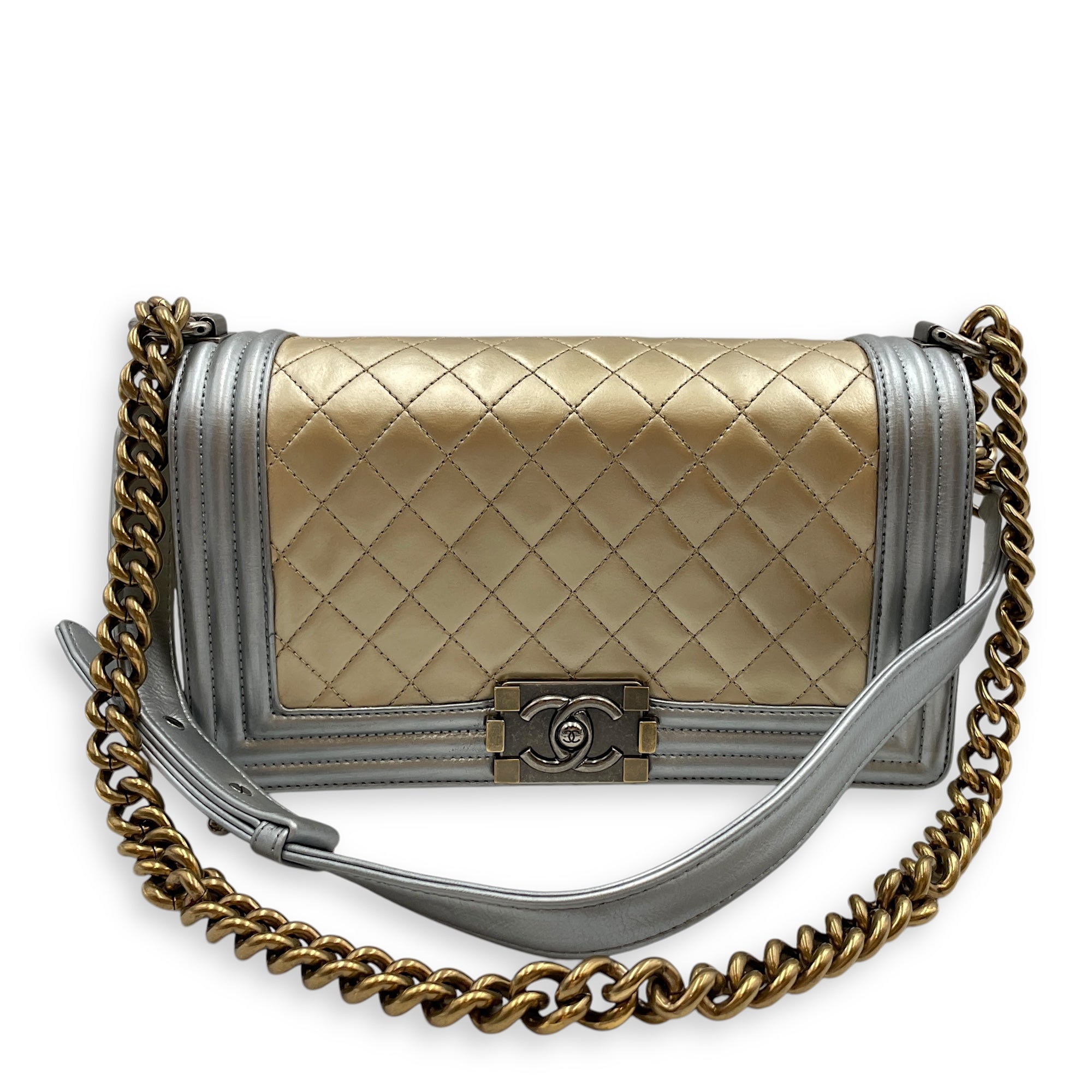 Quilted Bi-Colour Boy Medium Gold/Silver Shoulder Bag in Metallic, Brushed Gold hardware