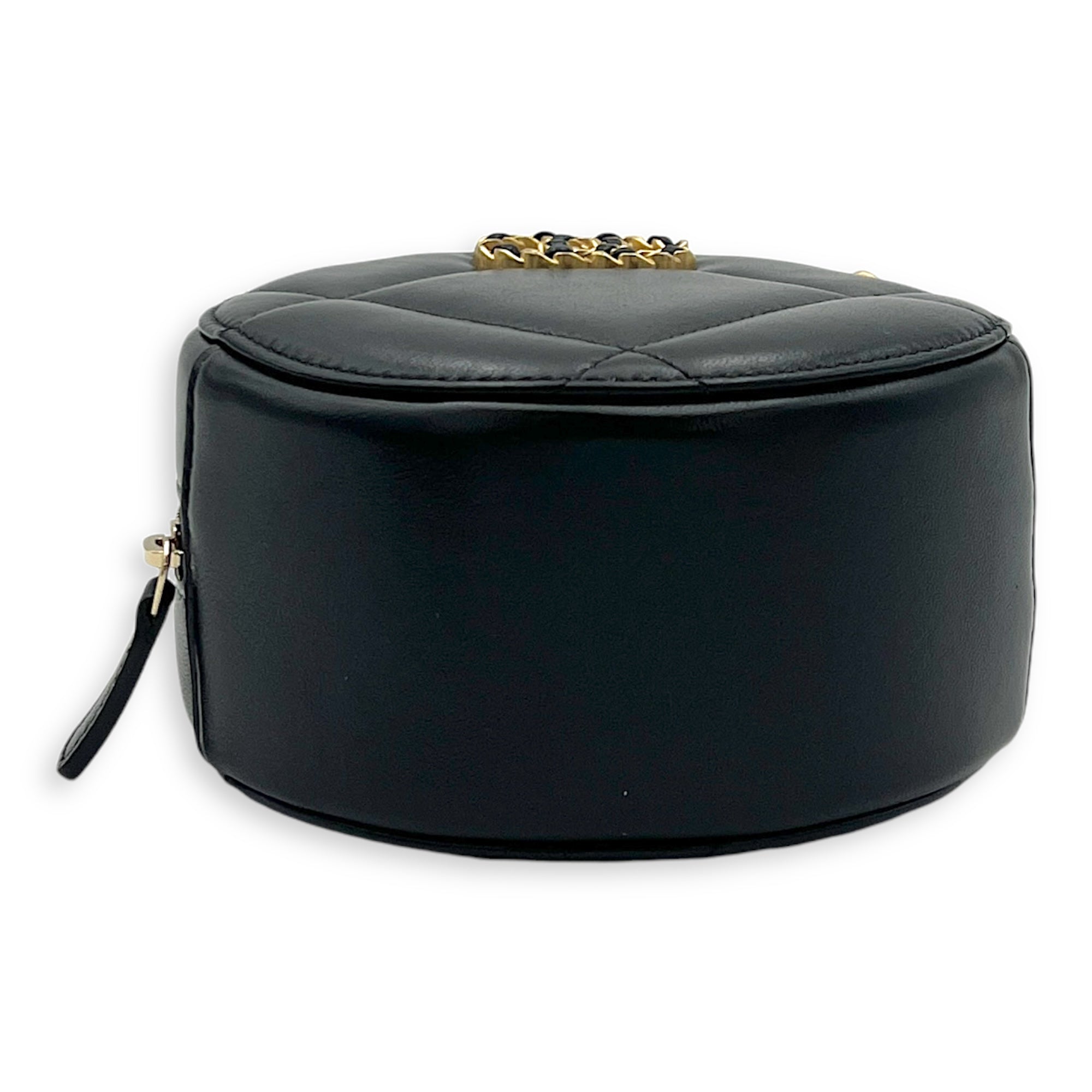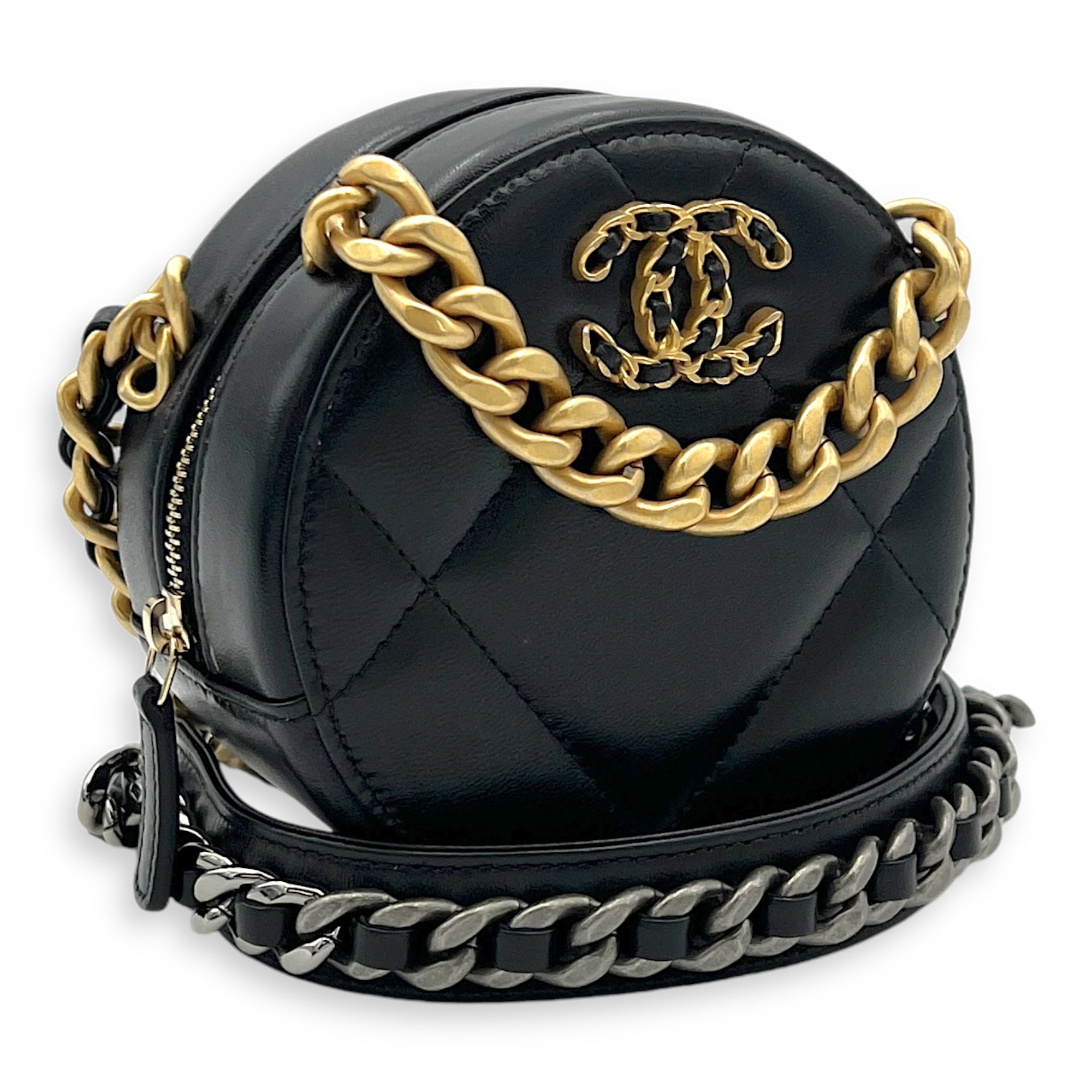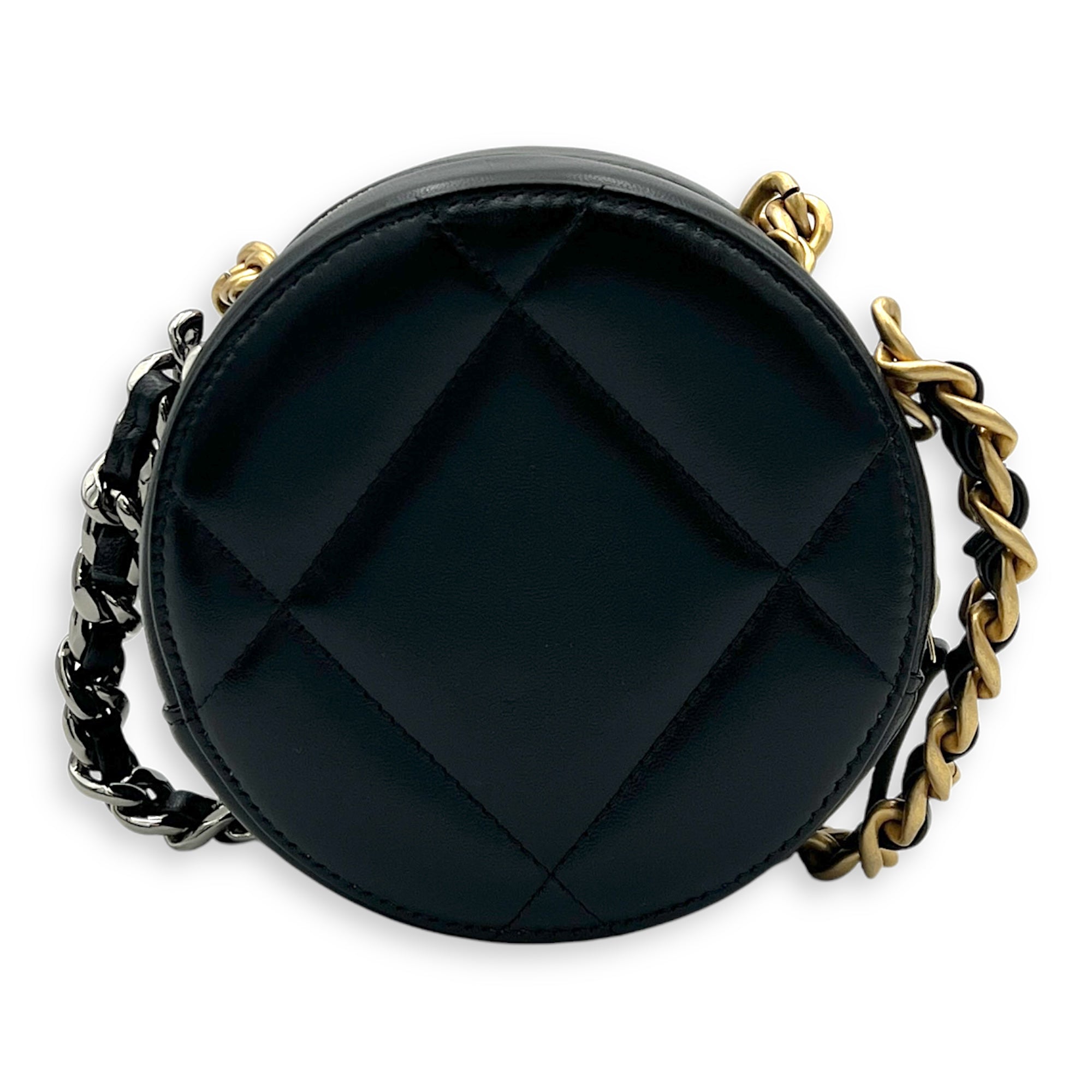 Quilted C19 Round Crossbody Bag Black in Calfskin, Mixed hardware