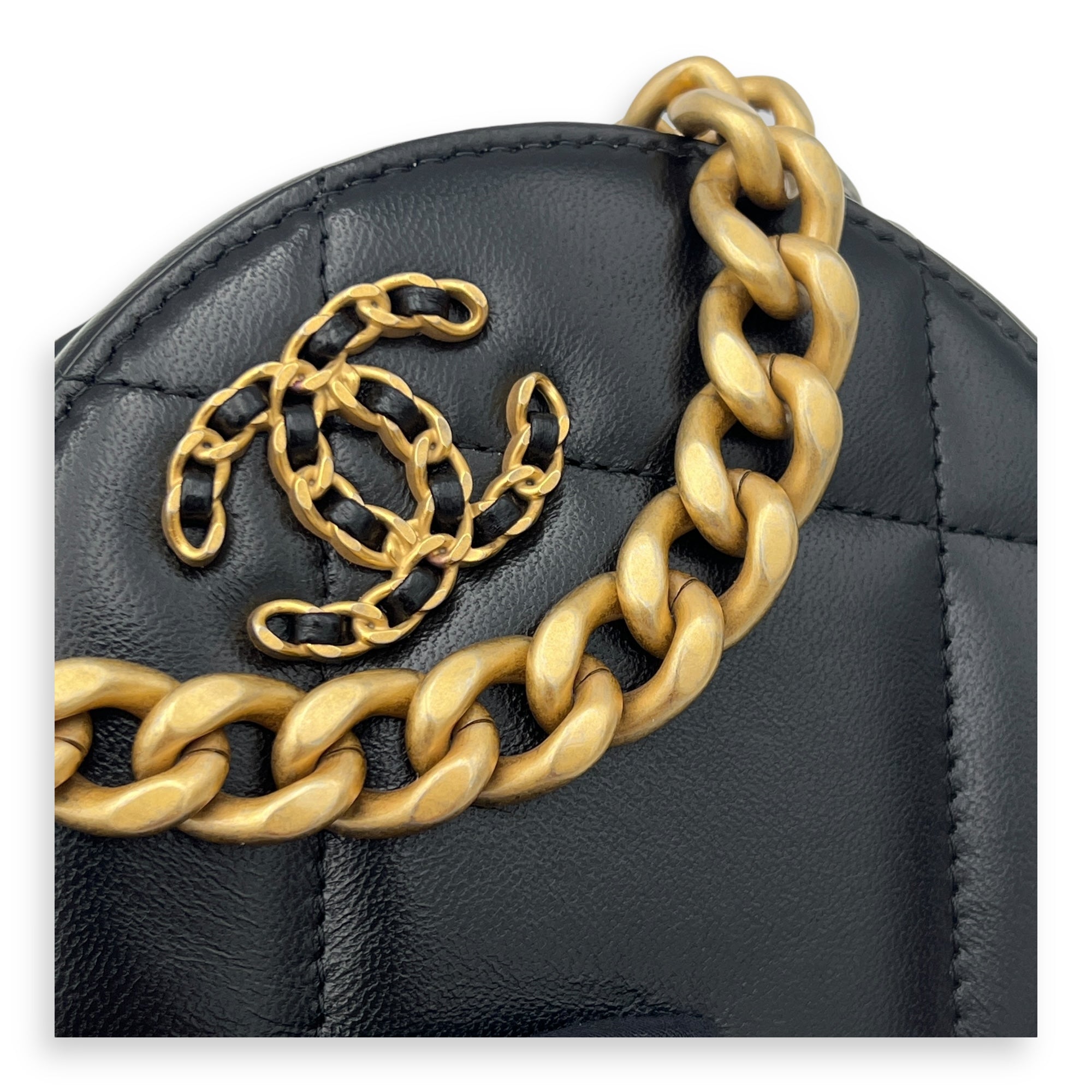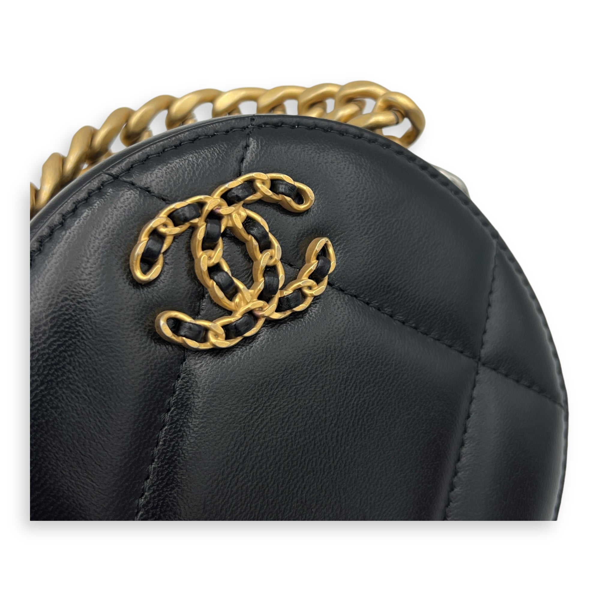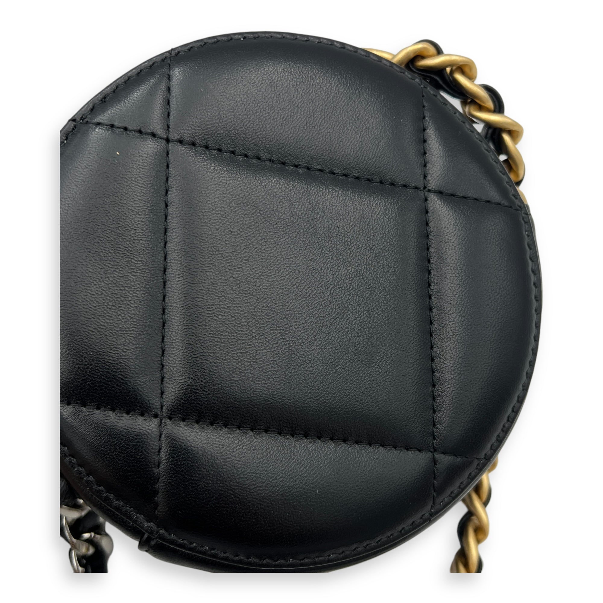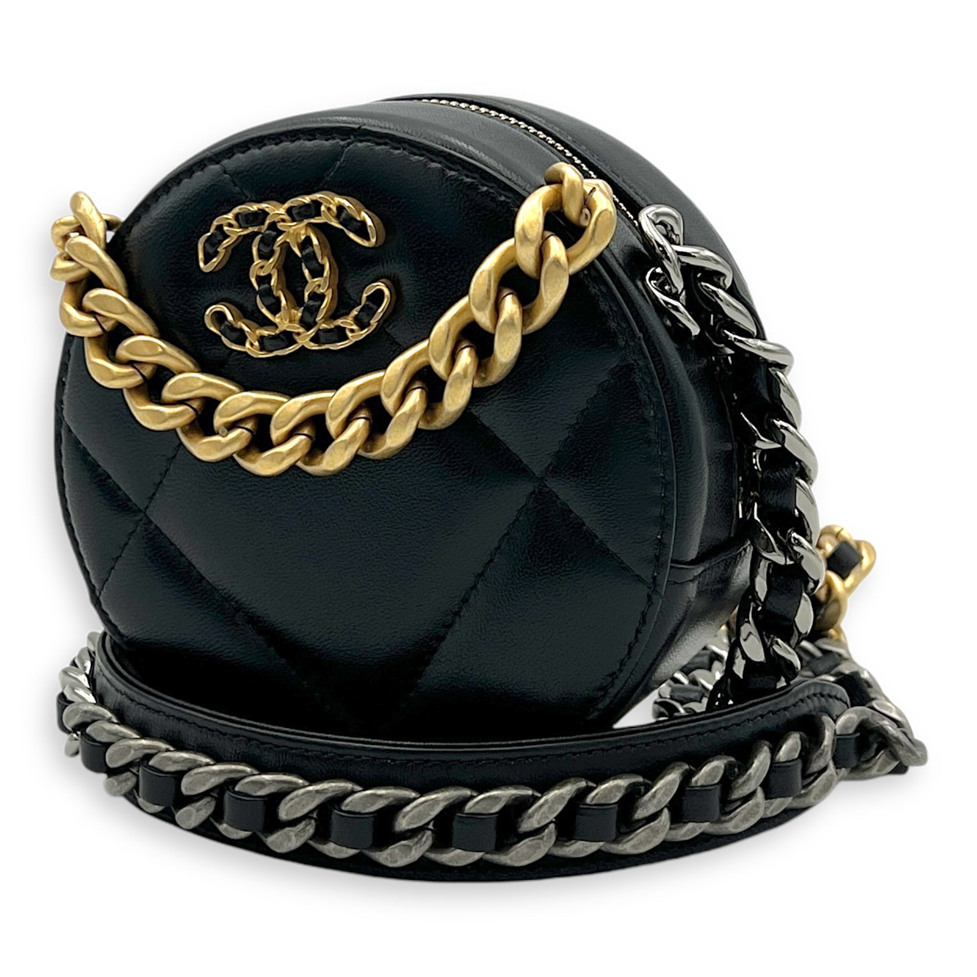 Quilted C19 Round Crossbody Bag Black in Calfskin, Mixed hardware
