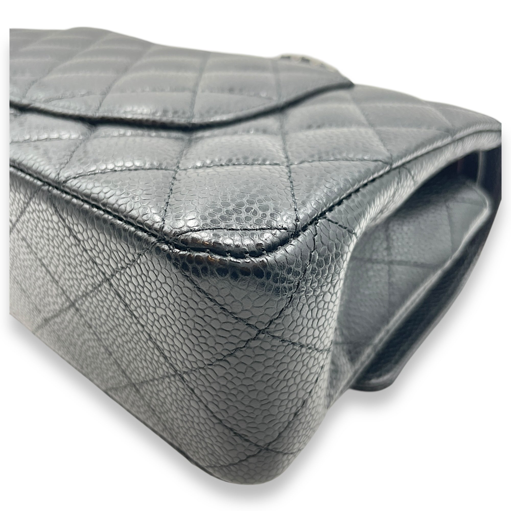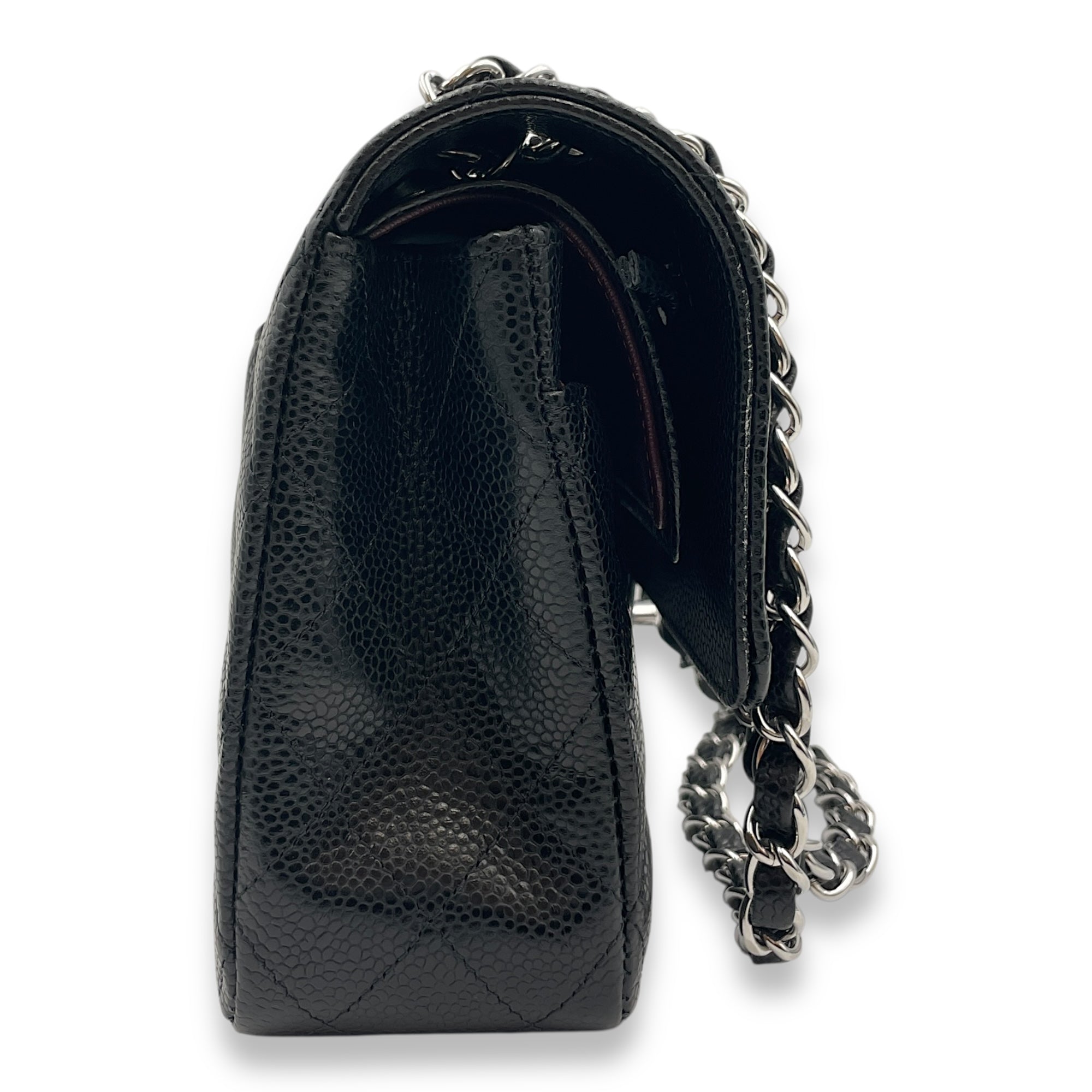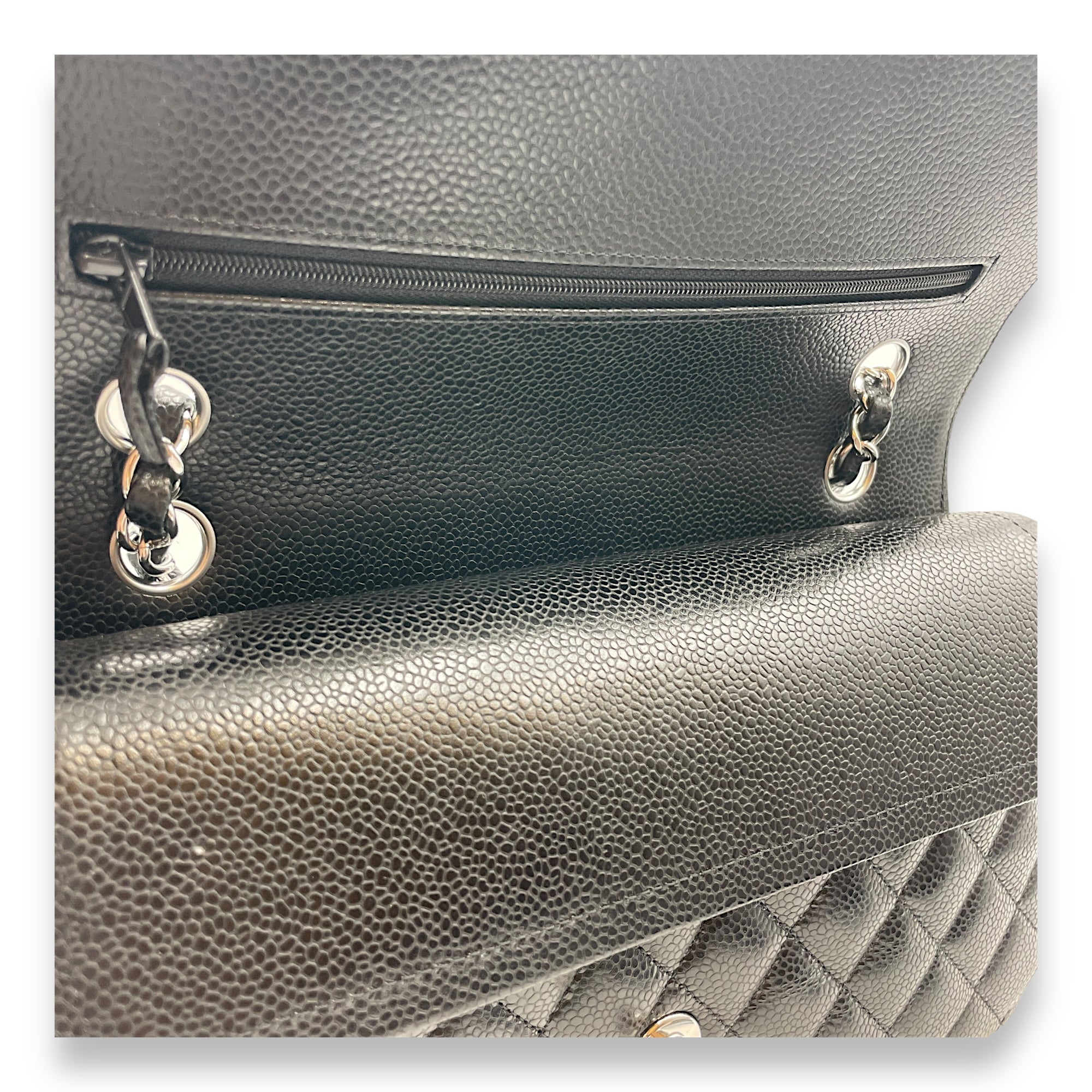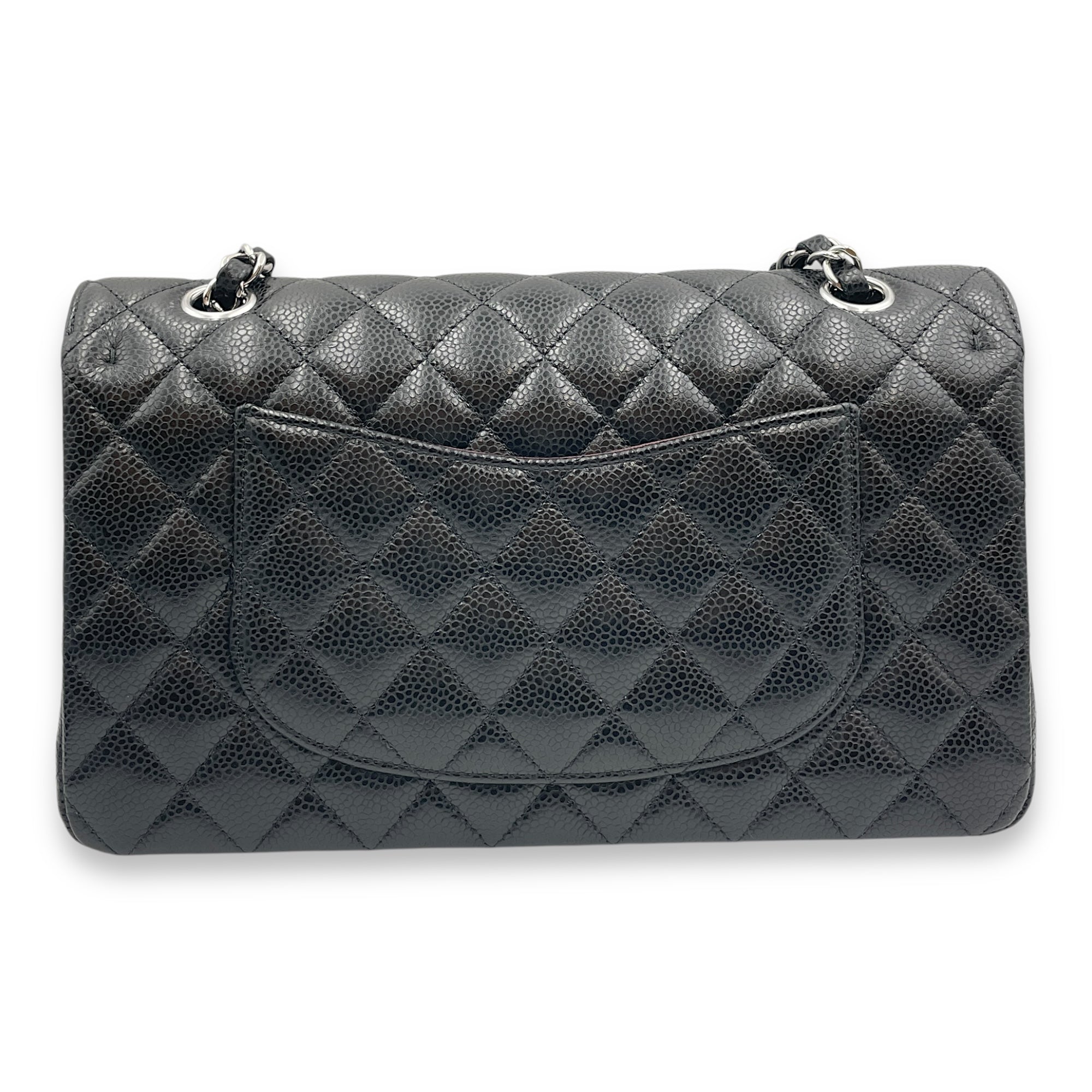 Quilted CC Classic Medium Black Double Flap Bag in Caviar Leather, Silver hardware