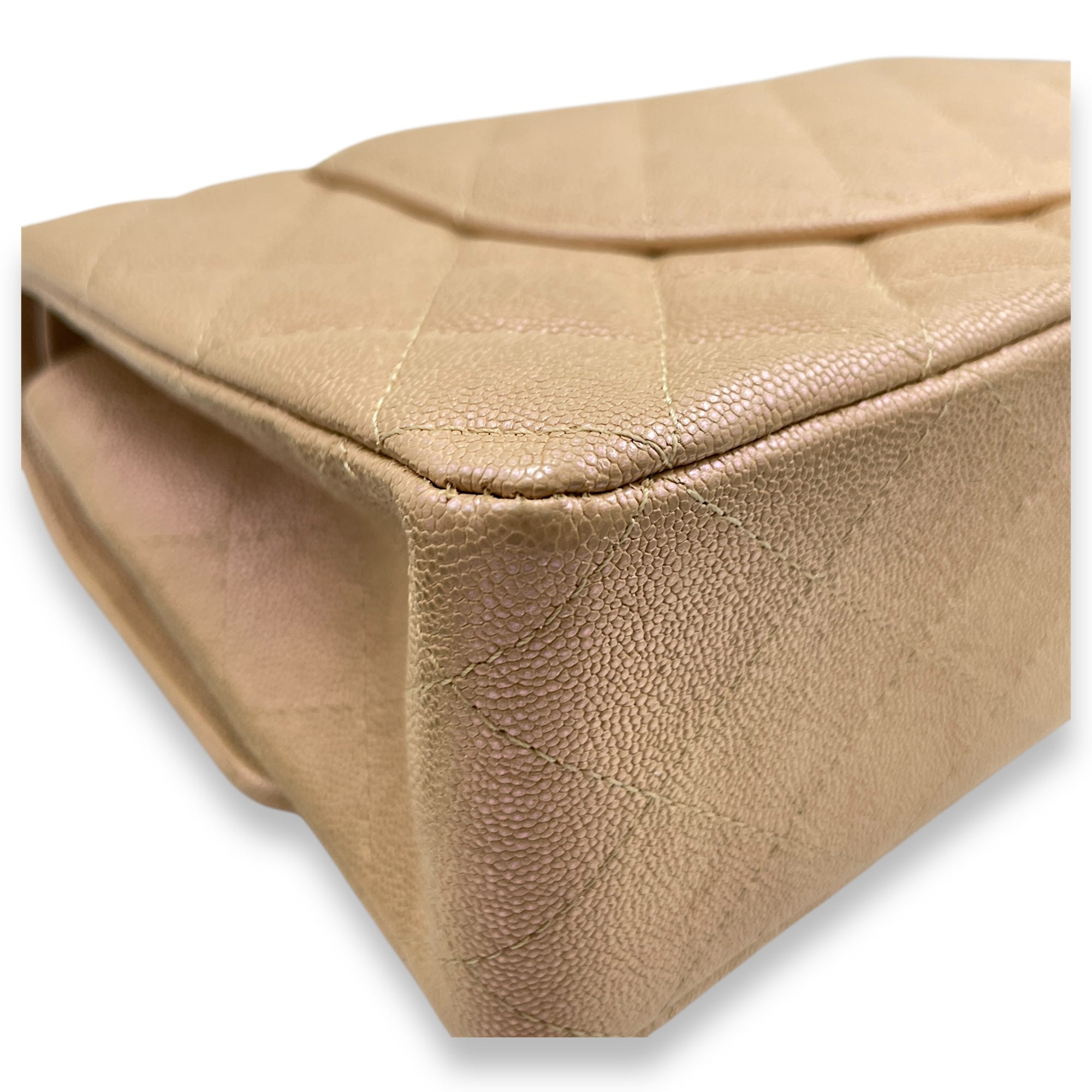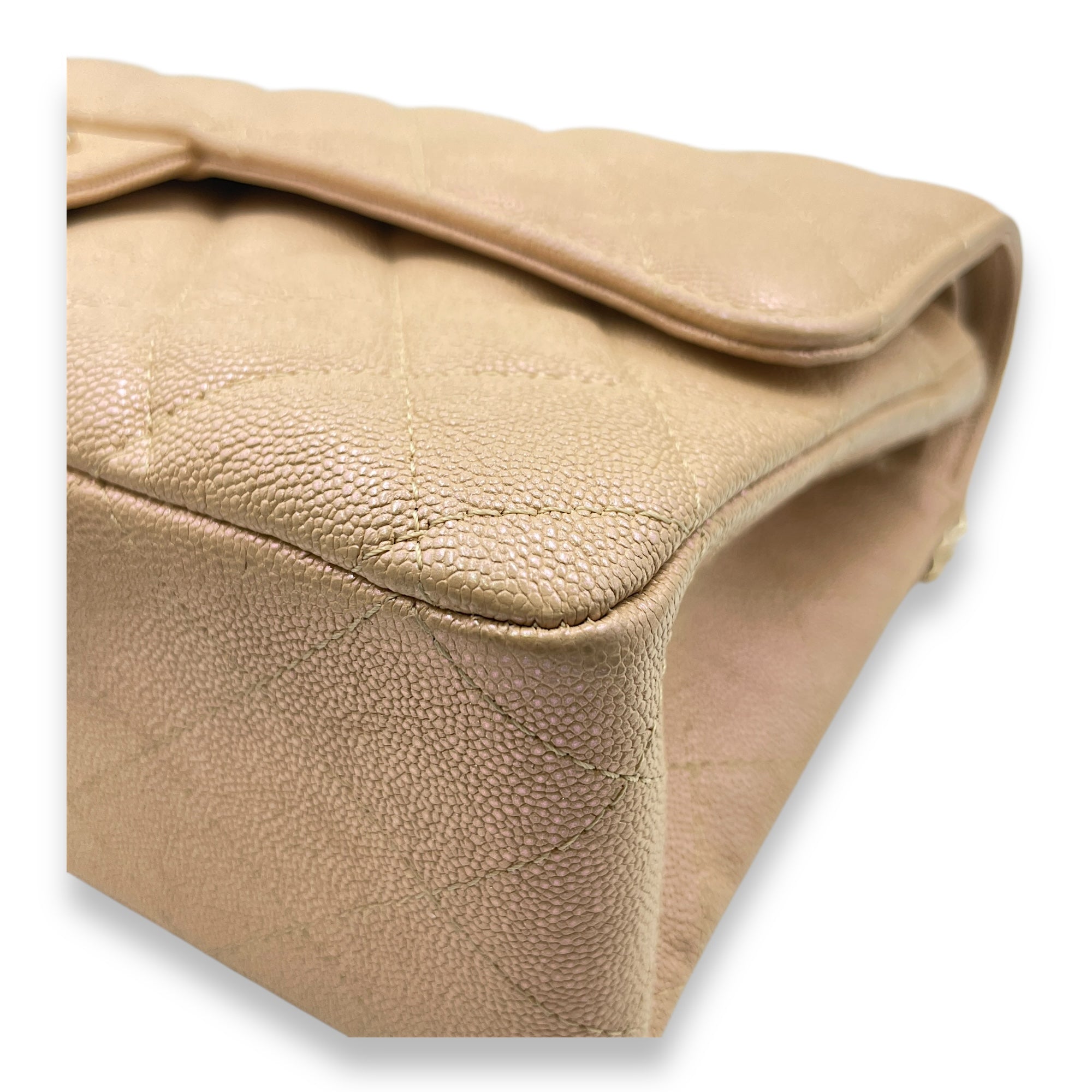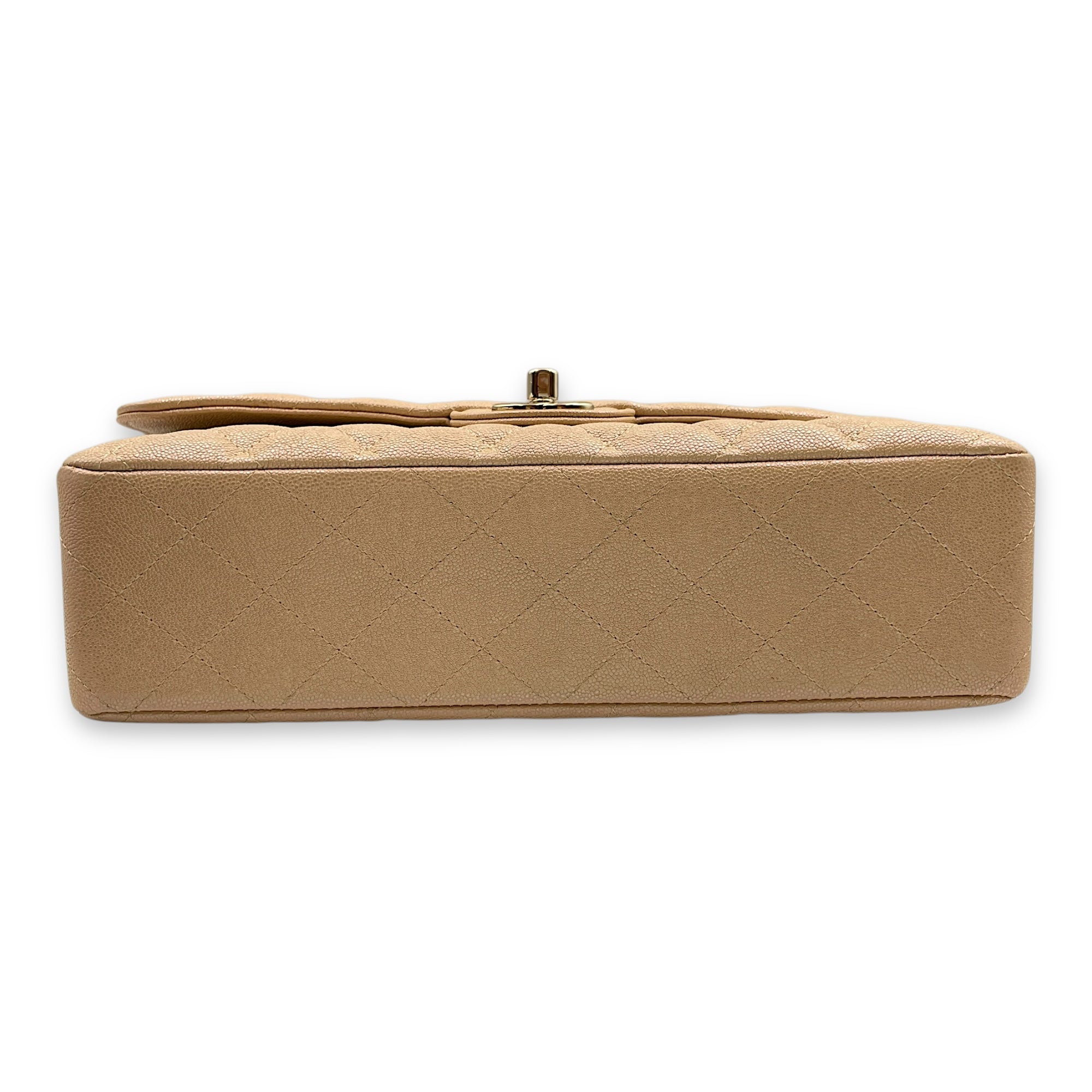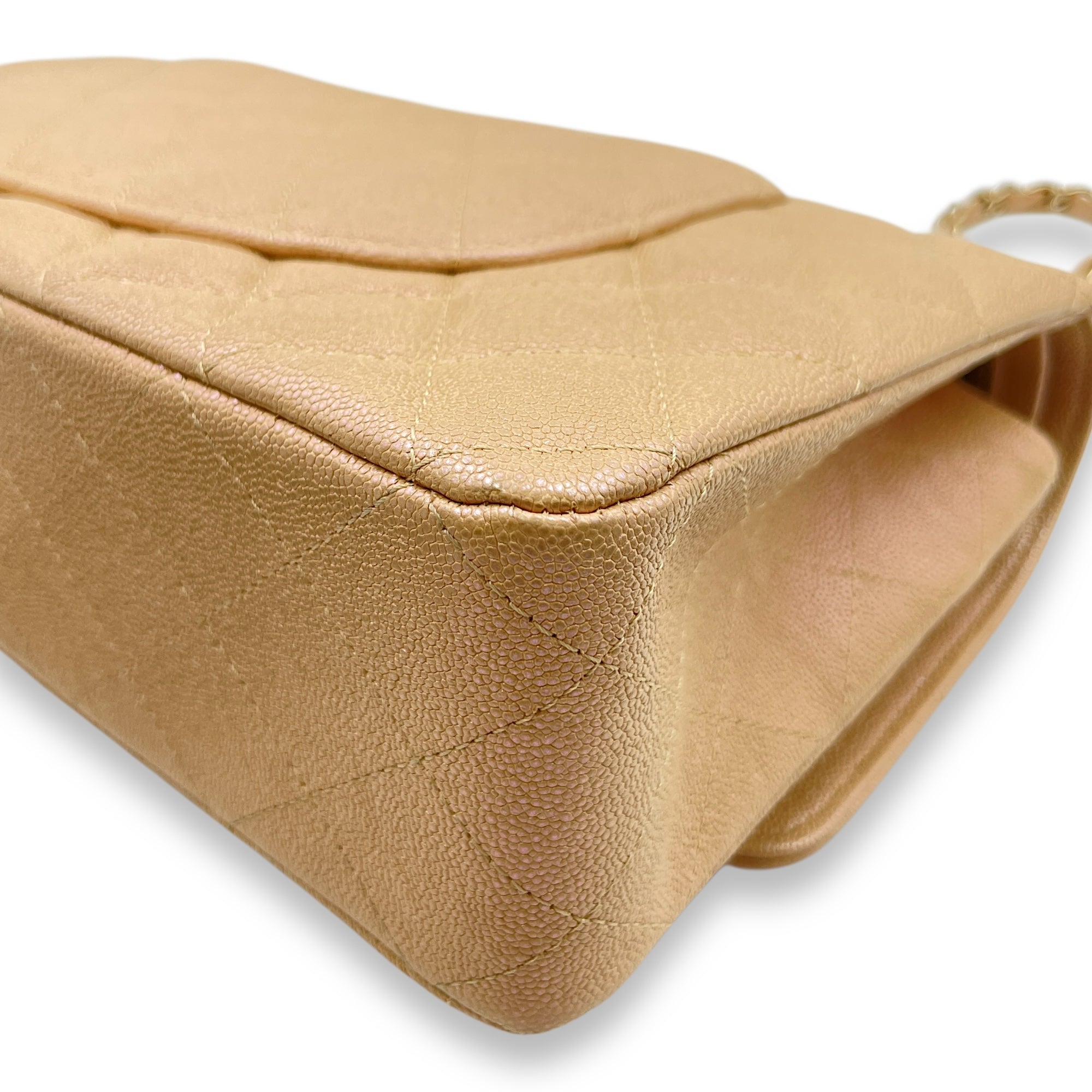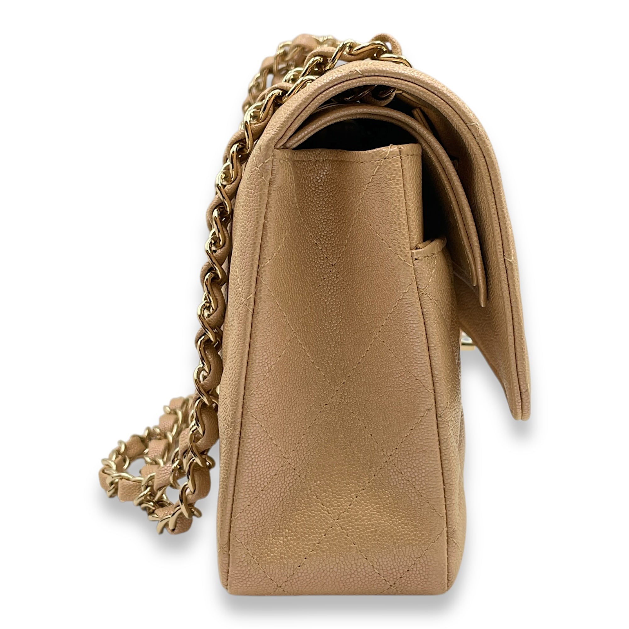 Quilted CC Classic Medium Pearly Beige Double Flap Bag in Caviar Leather, Gold hardware