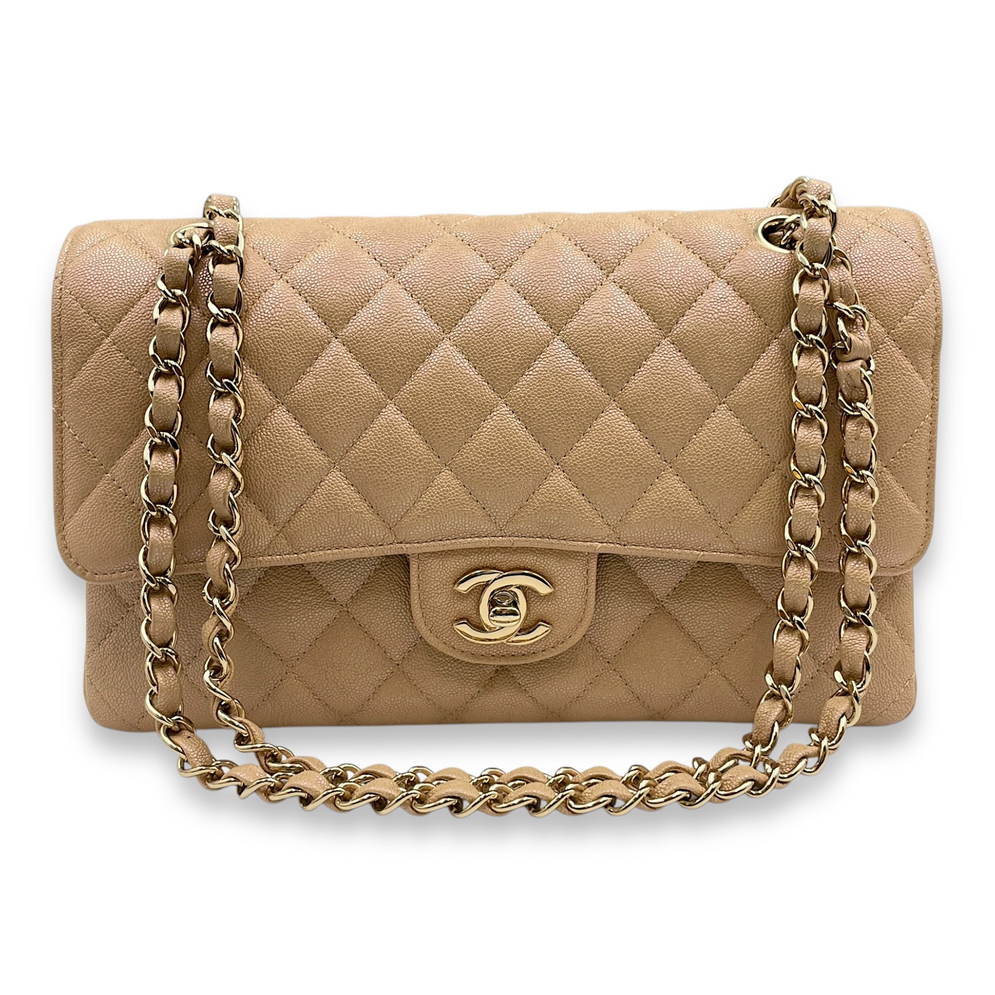 Be the first to review “Quilted CC Classic Medium Pearly Beige Double Flap Bag in Caviar Leather, Gold hardware”