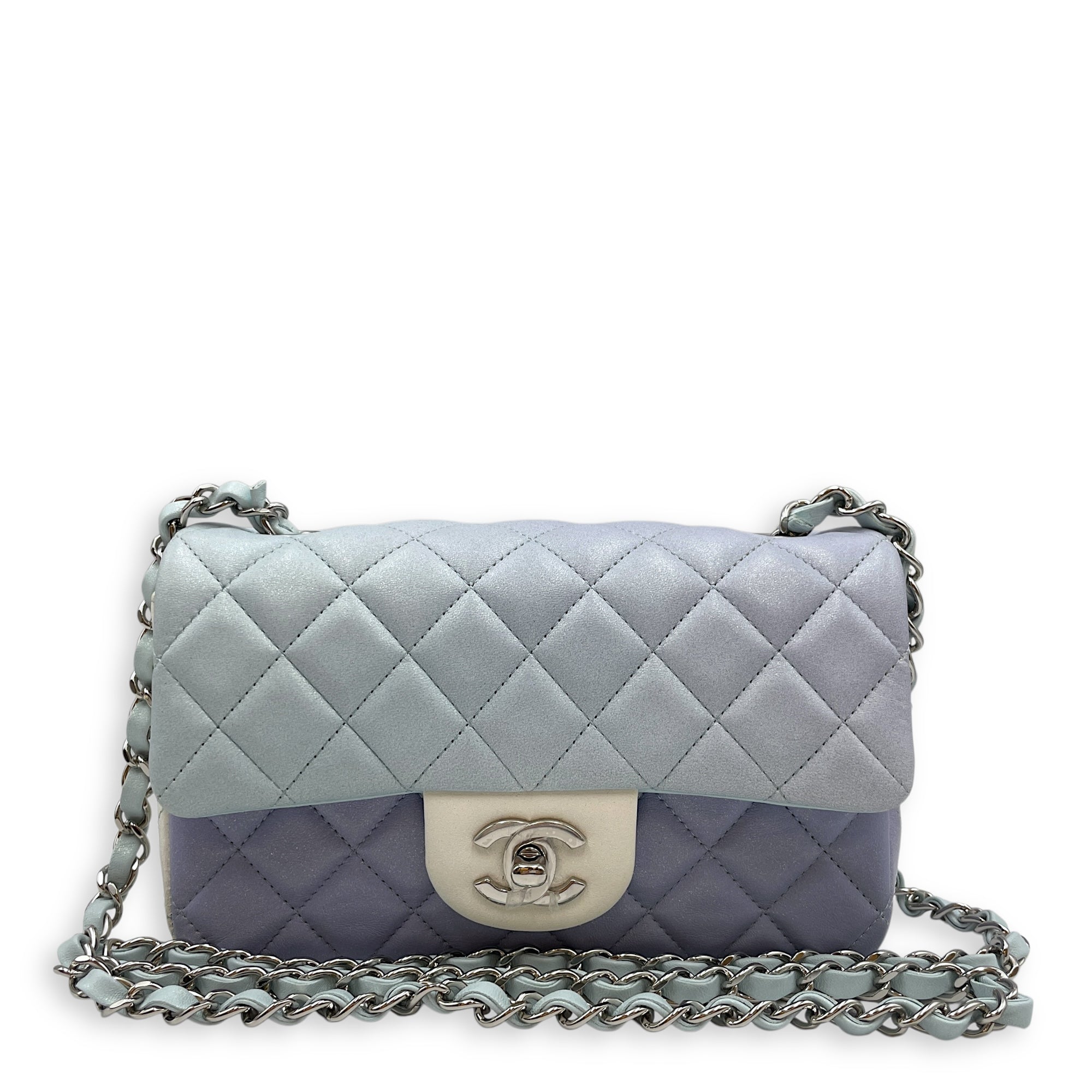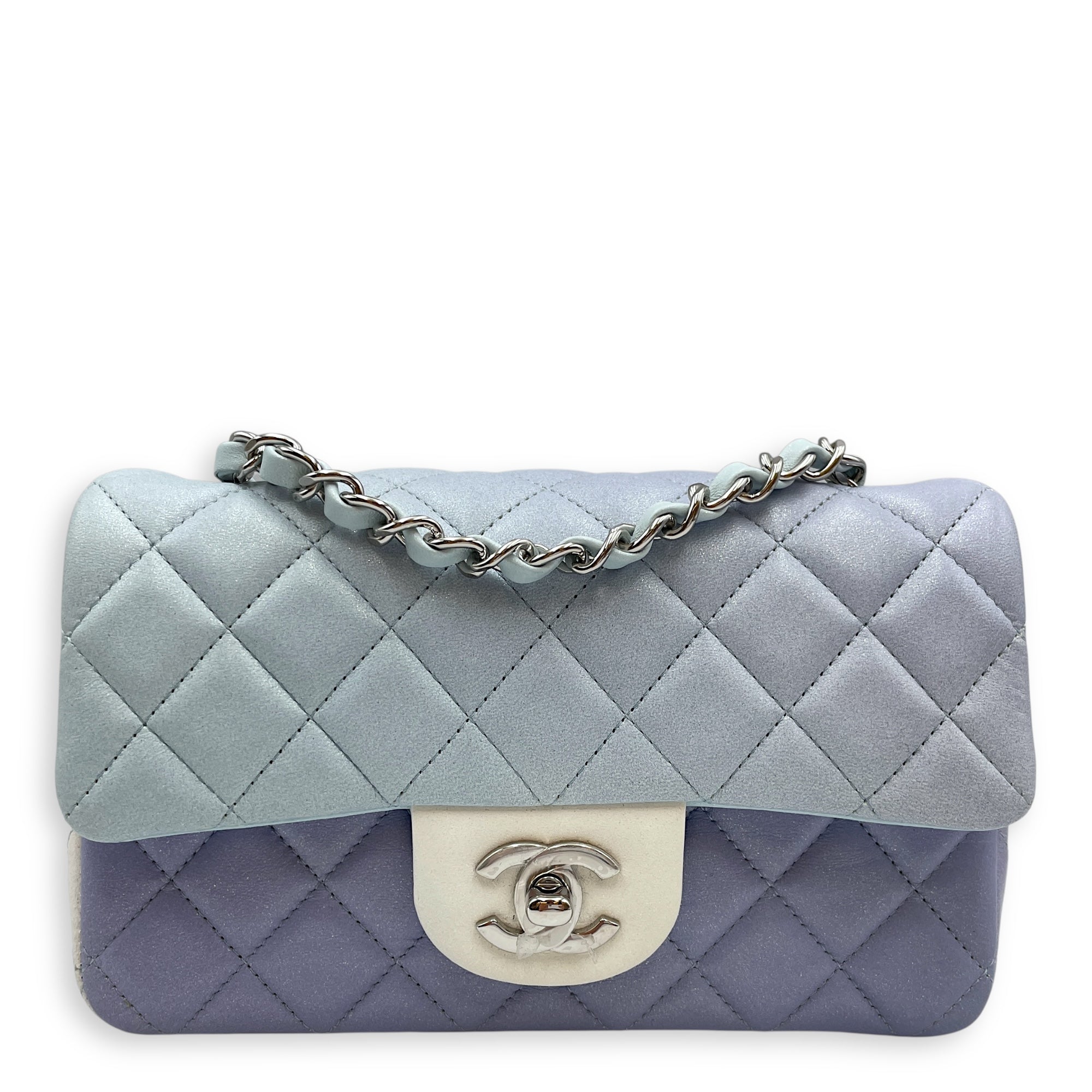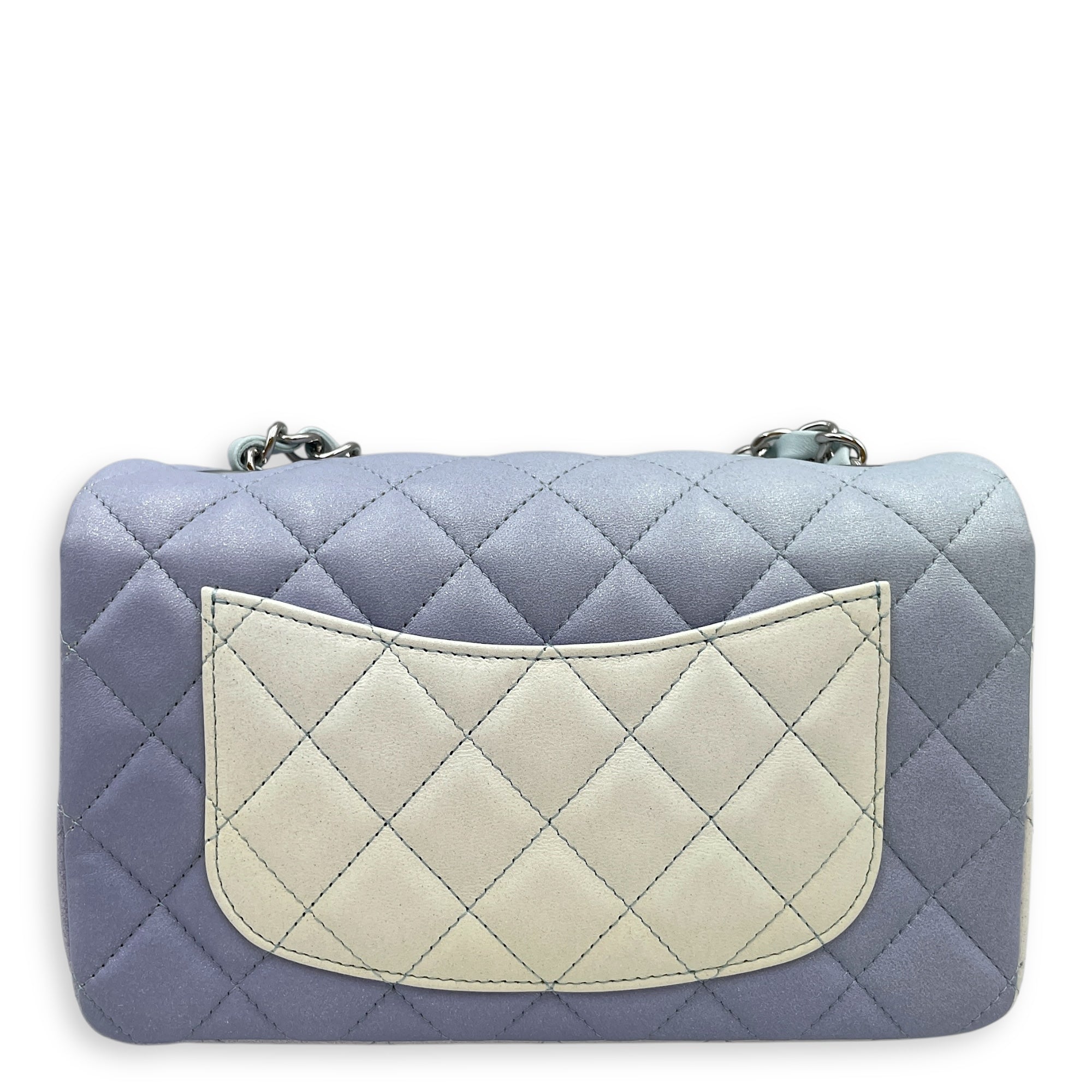 Rectangle Mini Ombre Blue Flap Bag in Lambskin, Silver hardware