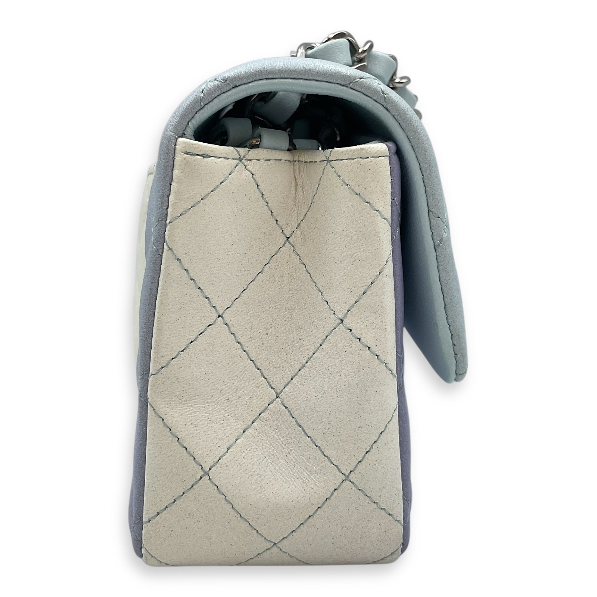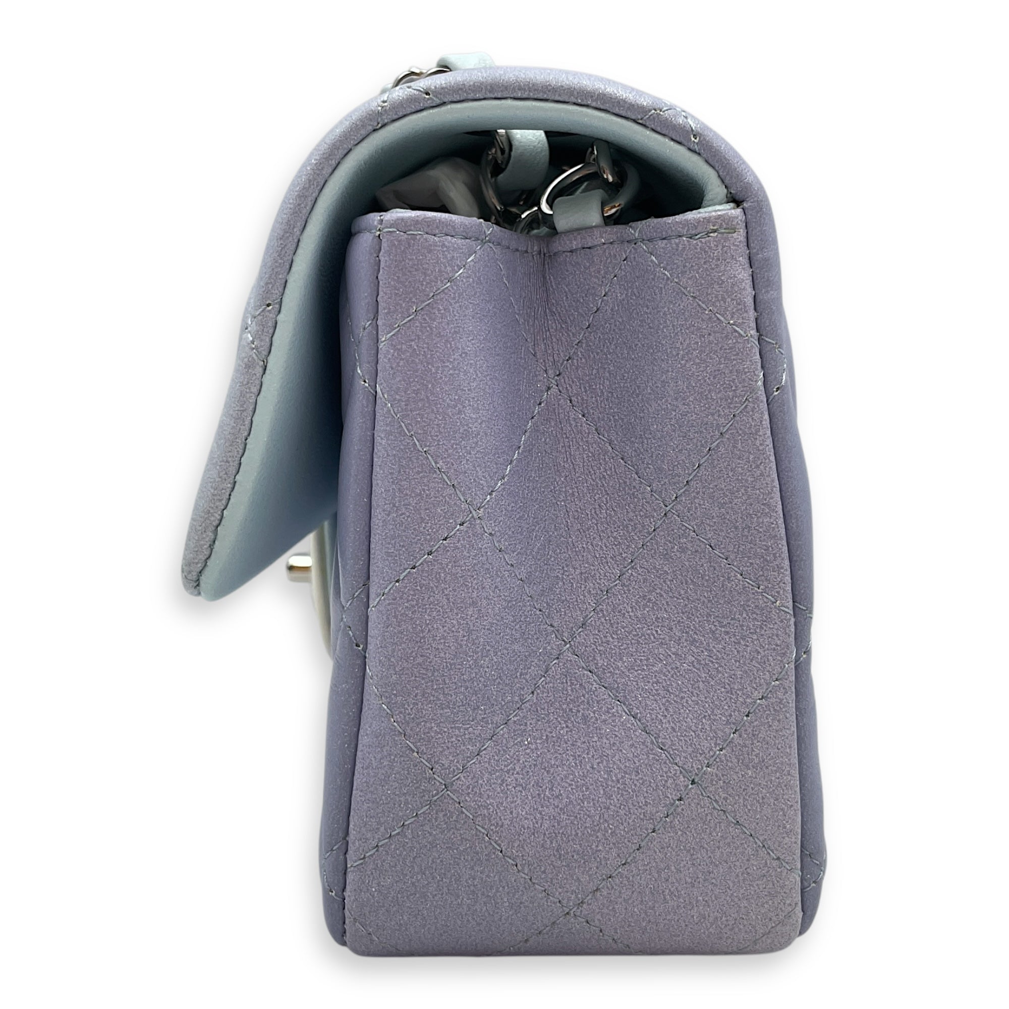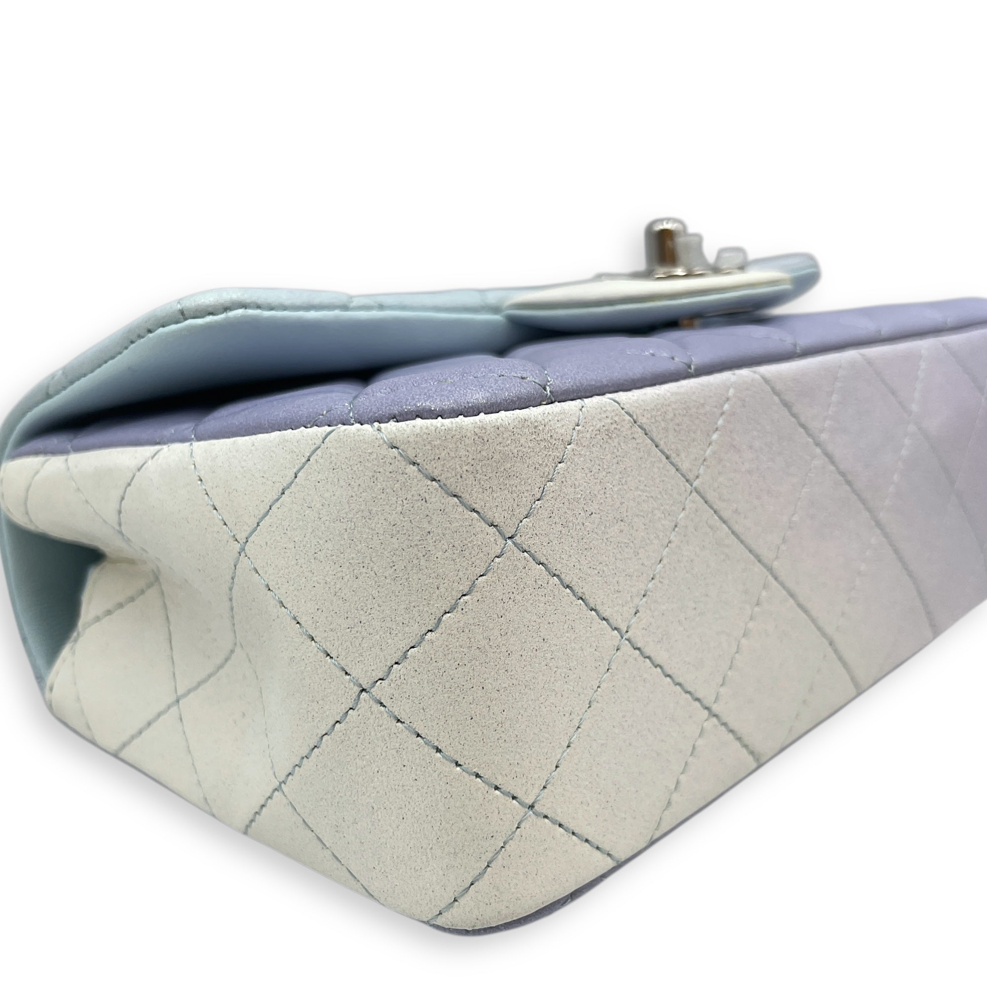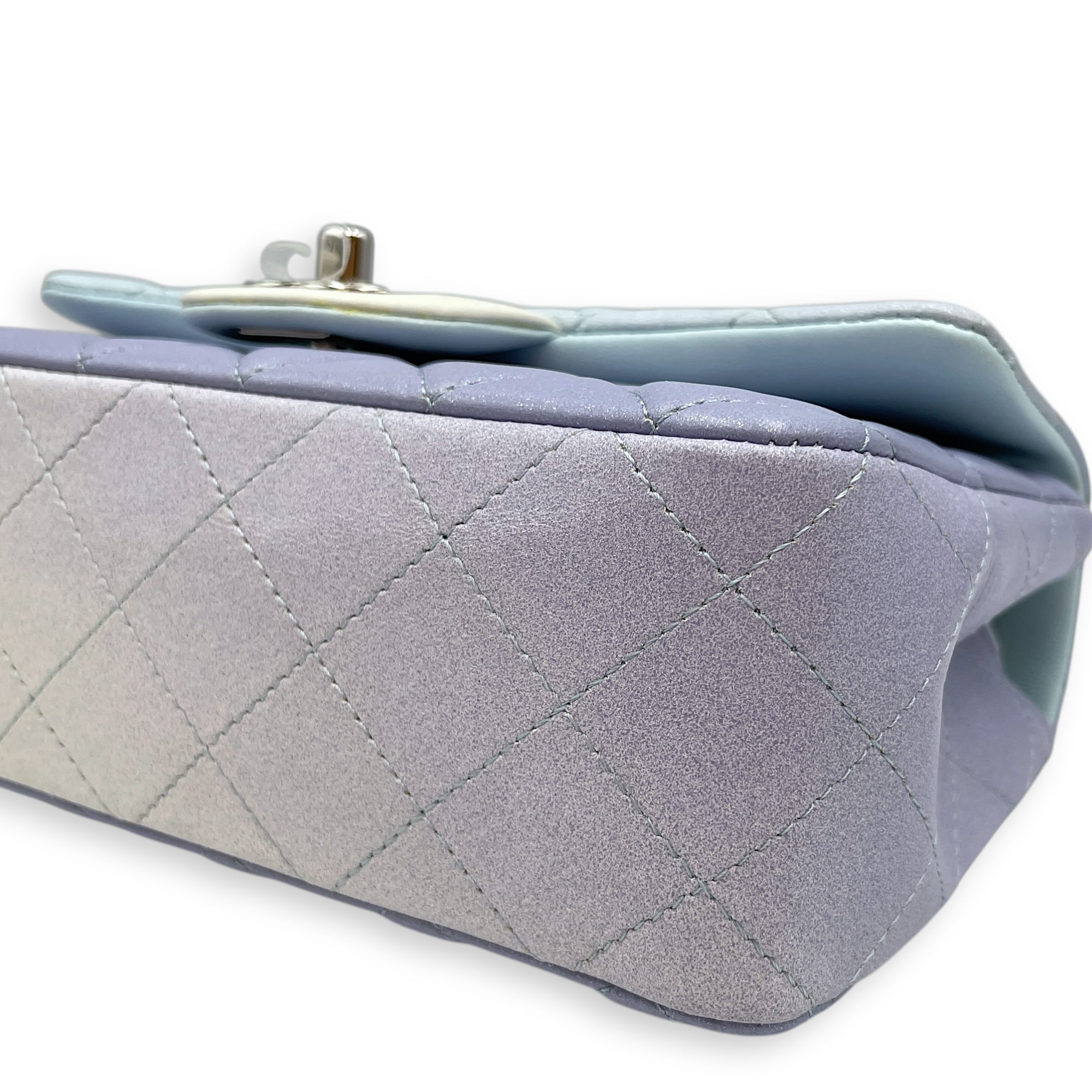 Rectangle Mini Ombre Blue Flap Bag in Lambskin, Silver hardware