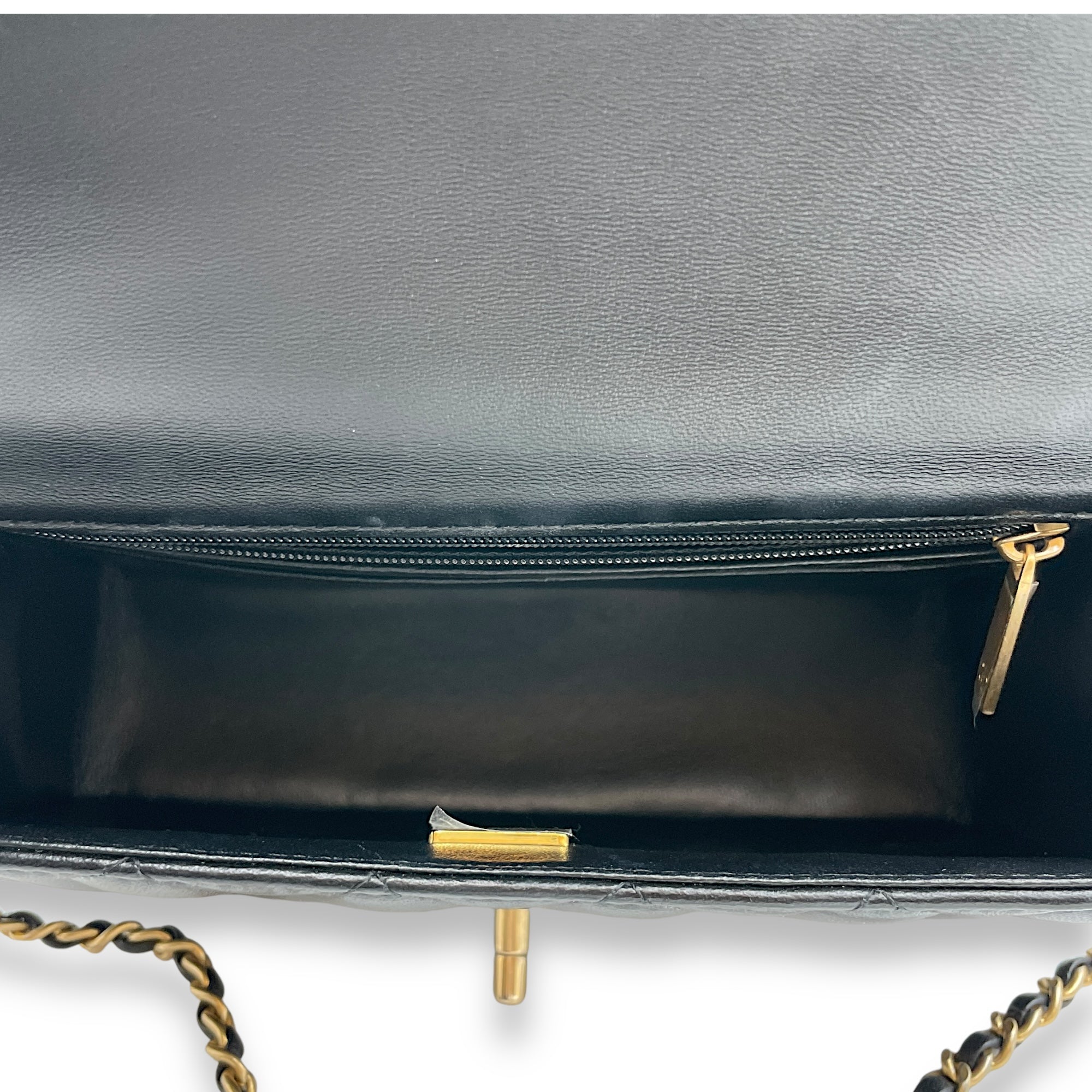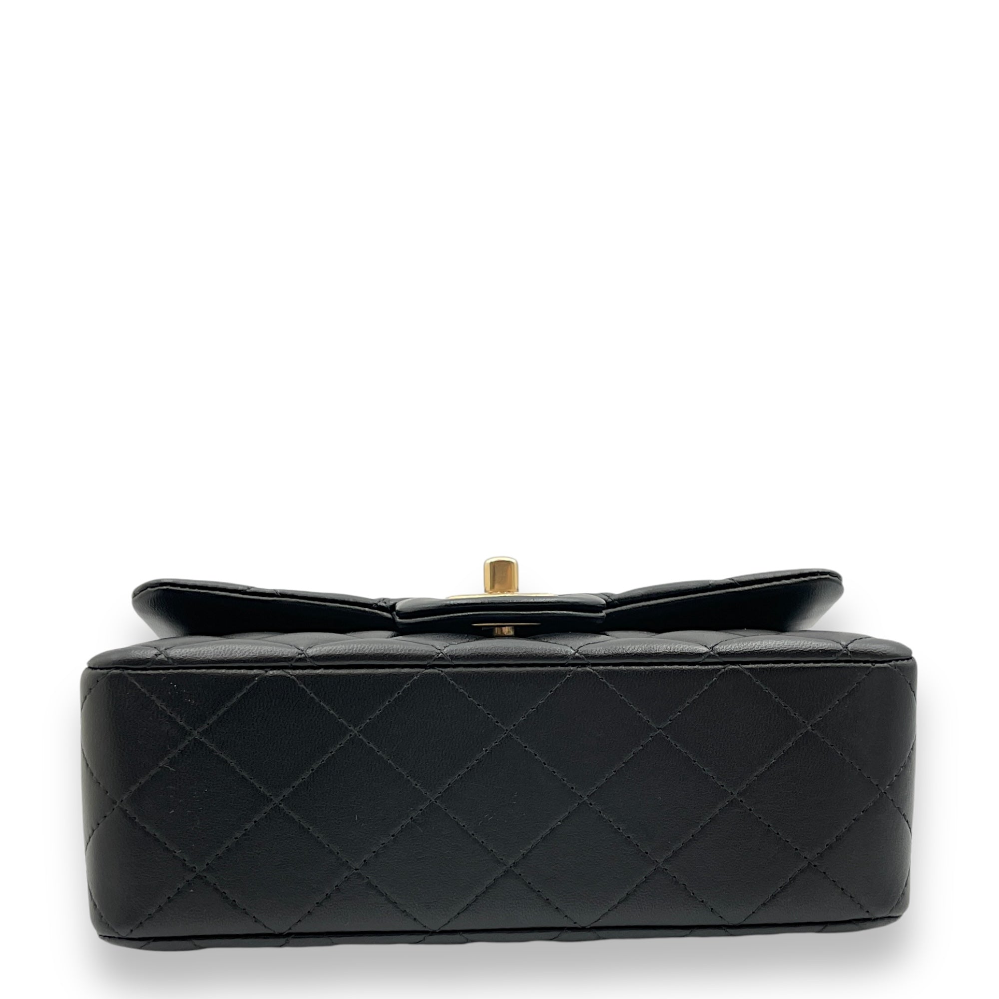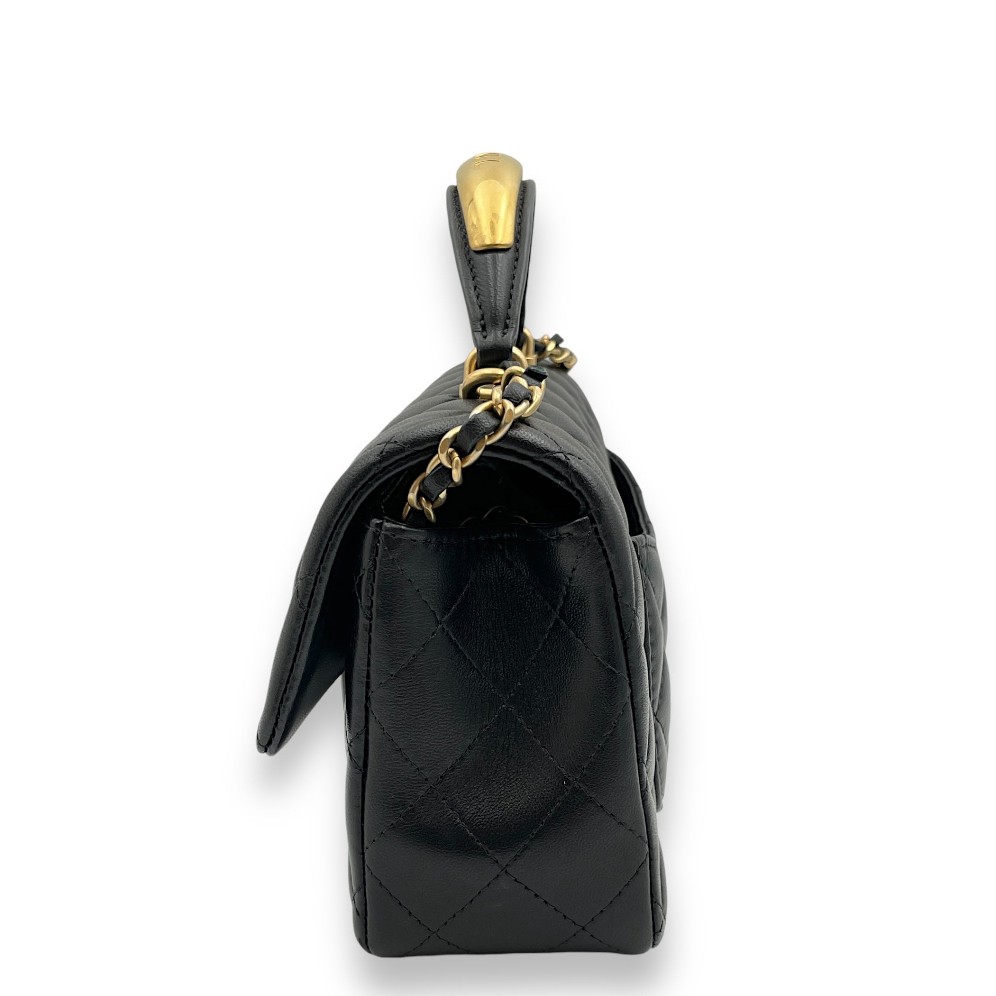 Rectangle with Metal Top Handle Mini Black Crossbody Bag in Lambskin, Gold hardware