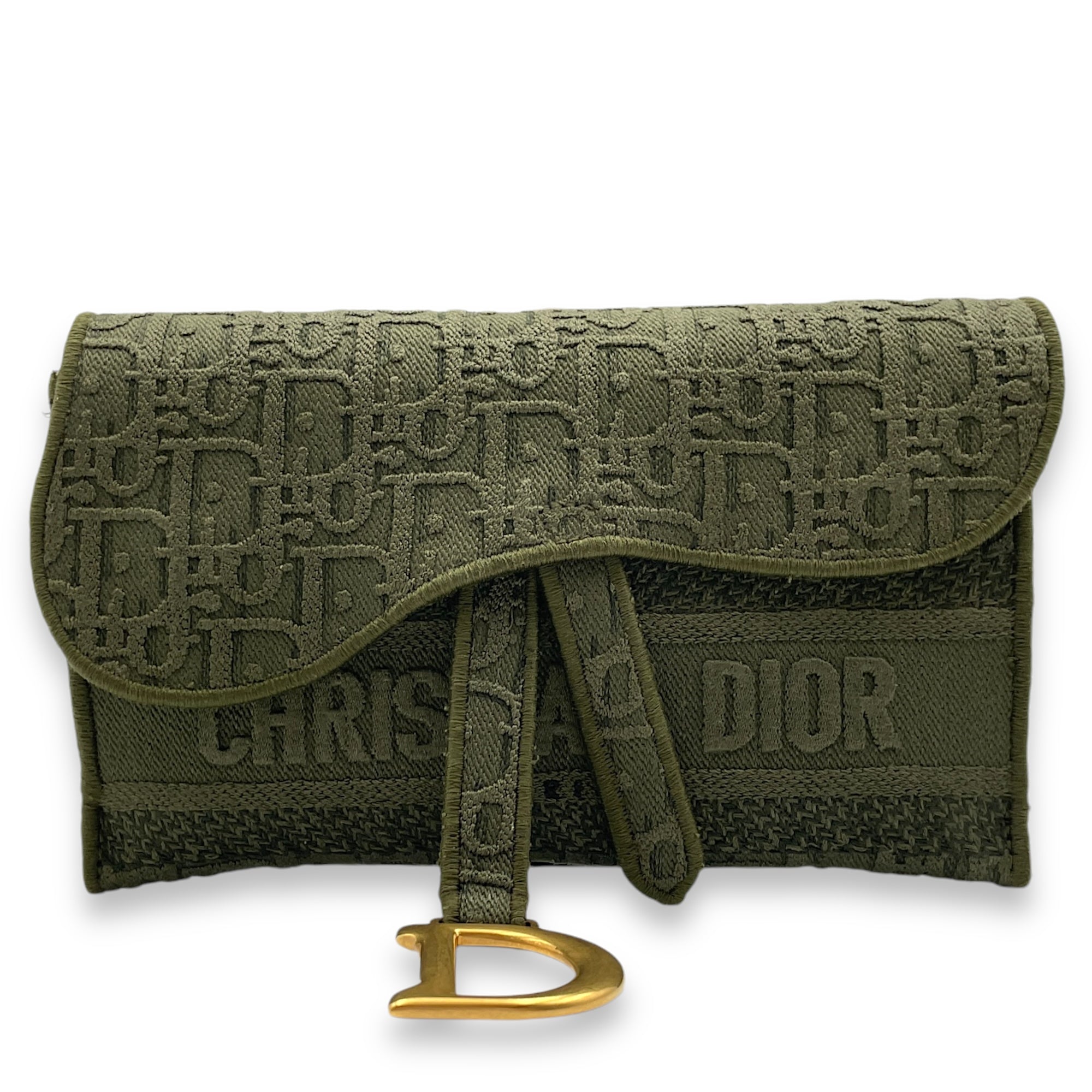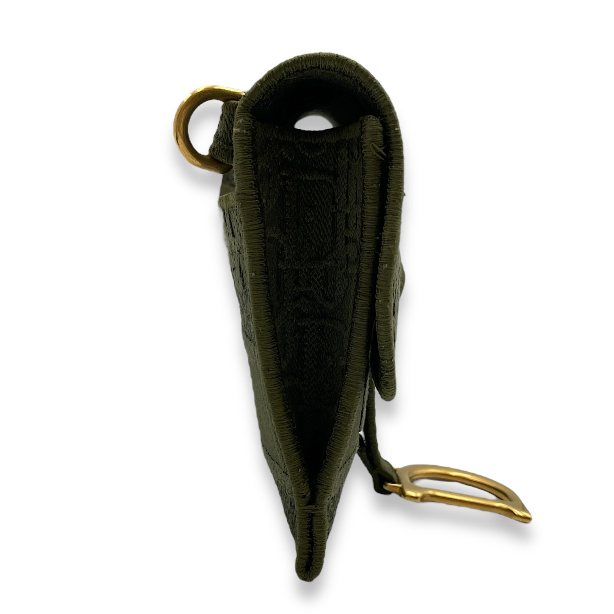 Saddle Green Crossbody Bag in Canvas, Gold hardware