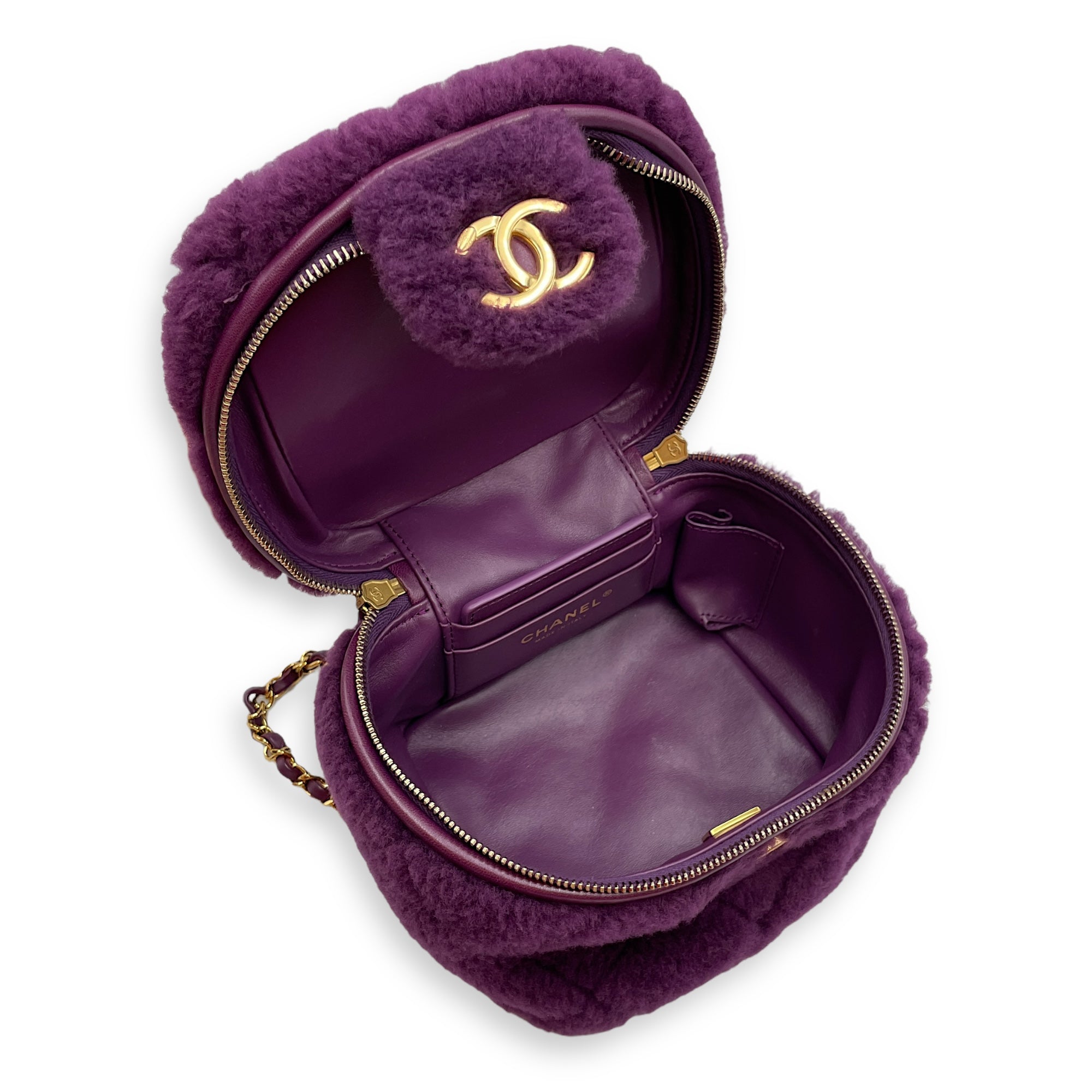 Shearling Quilted Vanity Purple Shoulder Bag in Lambskin, Gold hardware