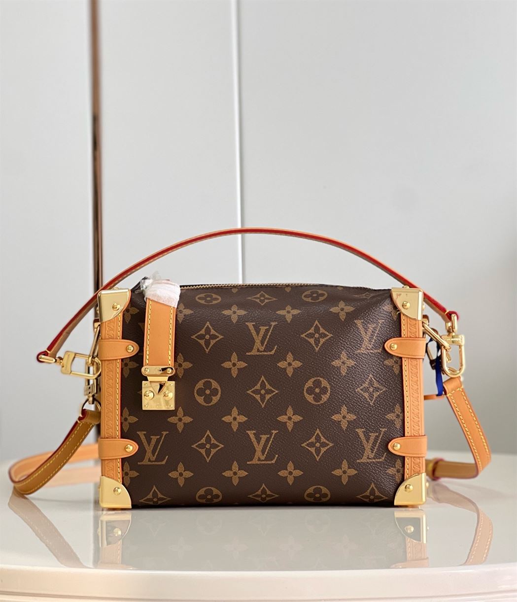 Side Trunk PM handbag Monogram canvas made from cowhide-leather trim. The traditional shape is shrunken down to fit as a modern handbag!