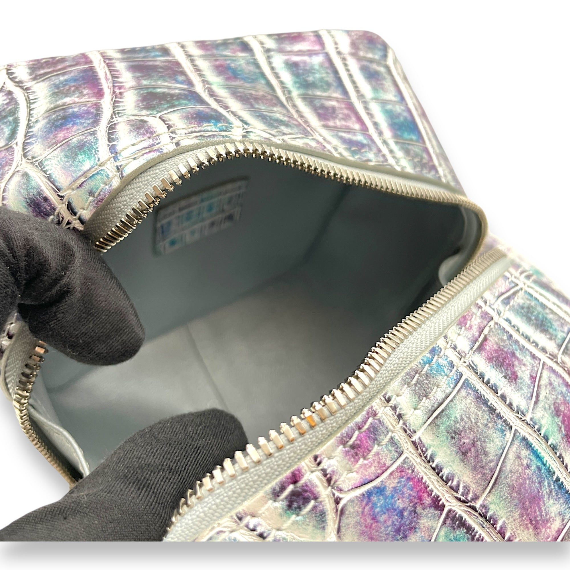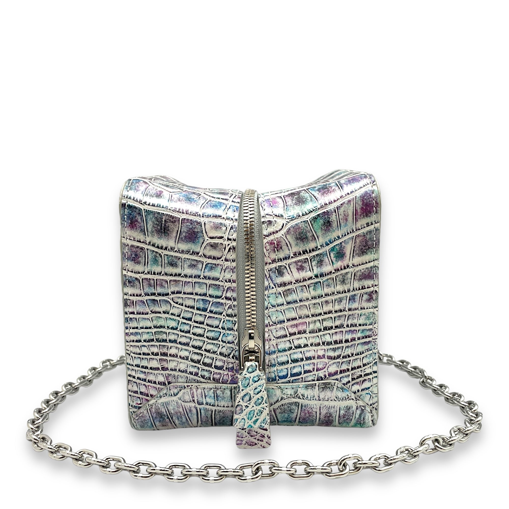 Be the first to review “Square PM Rainbow Top Handle Bag in Alligator, Palladium hardware”