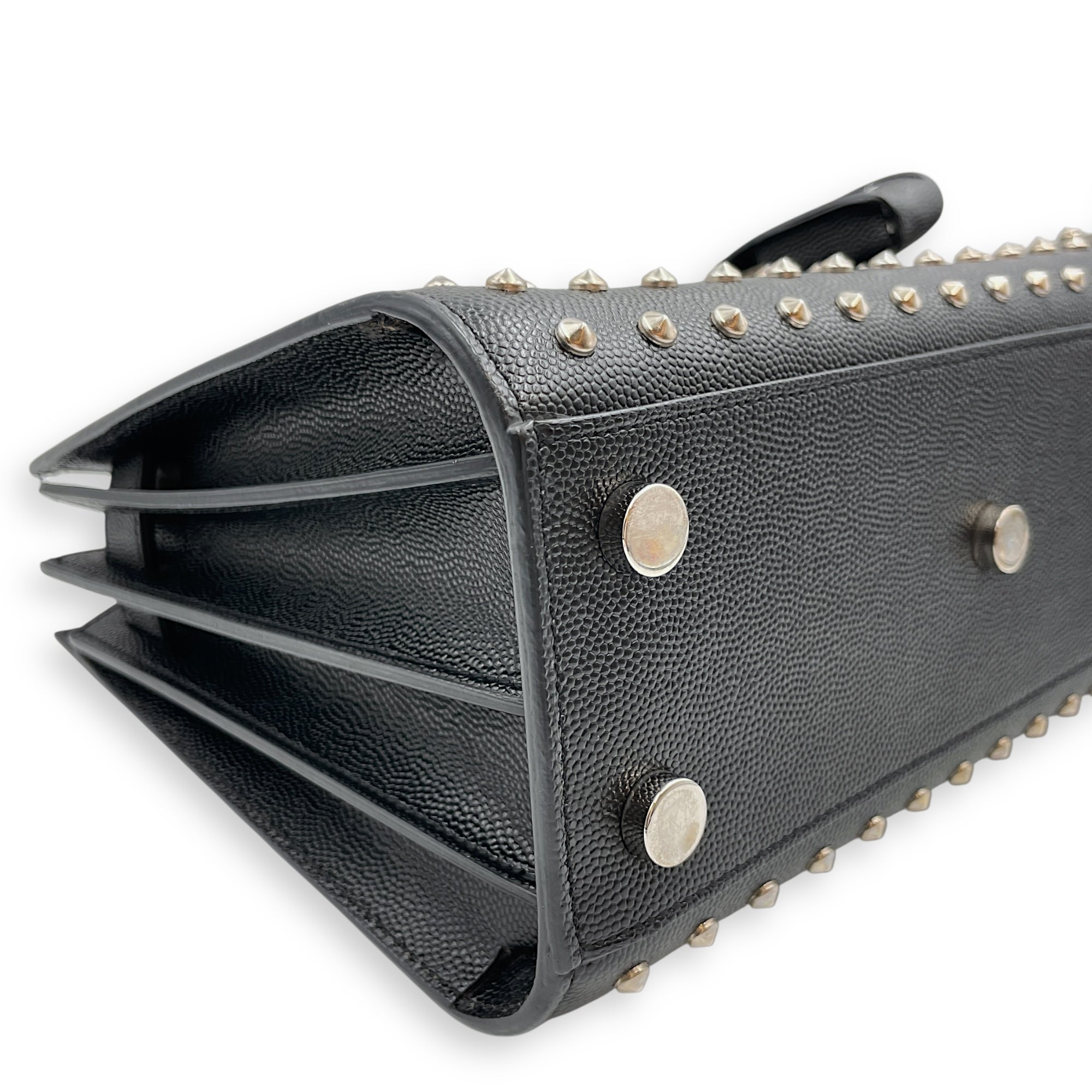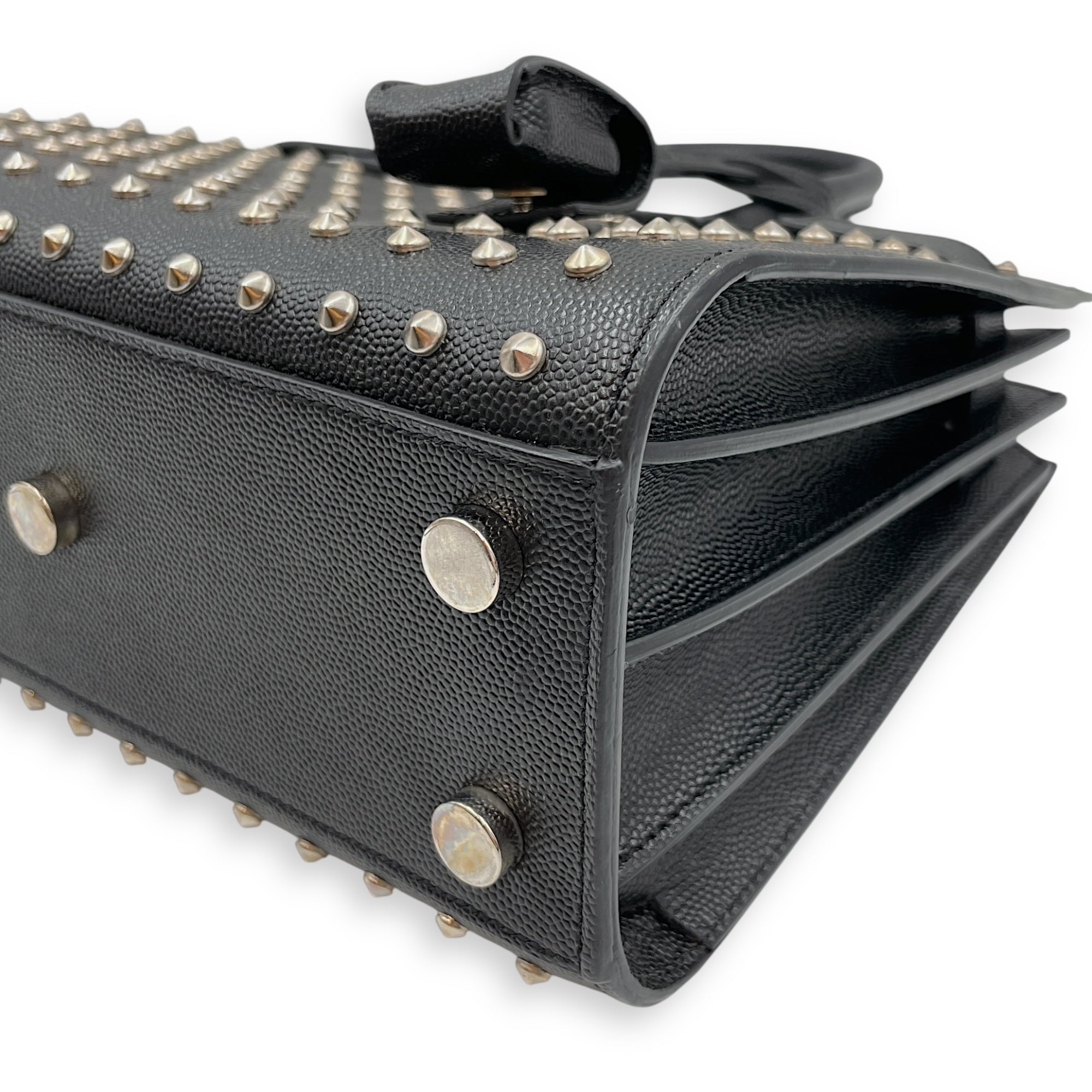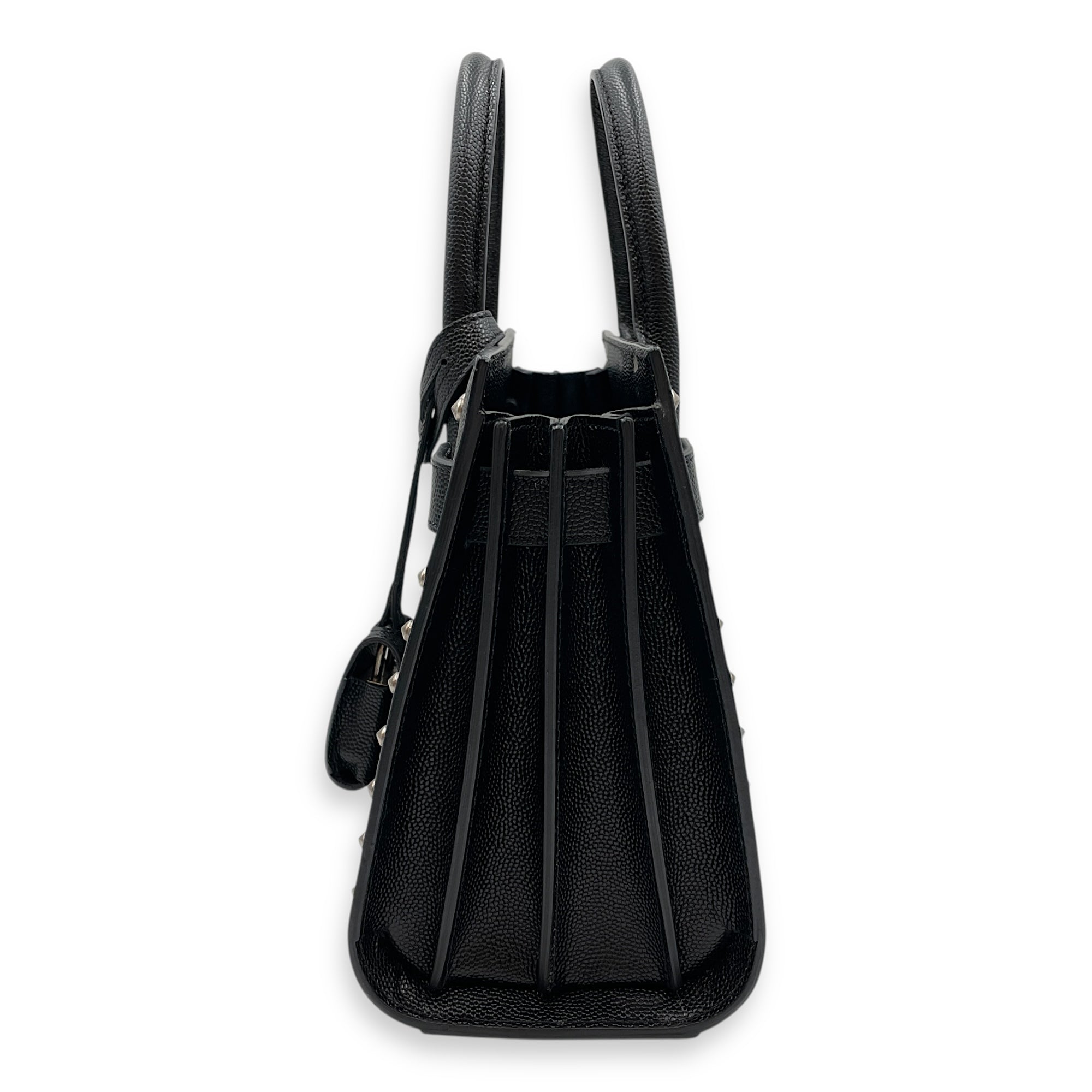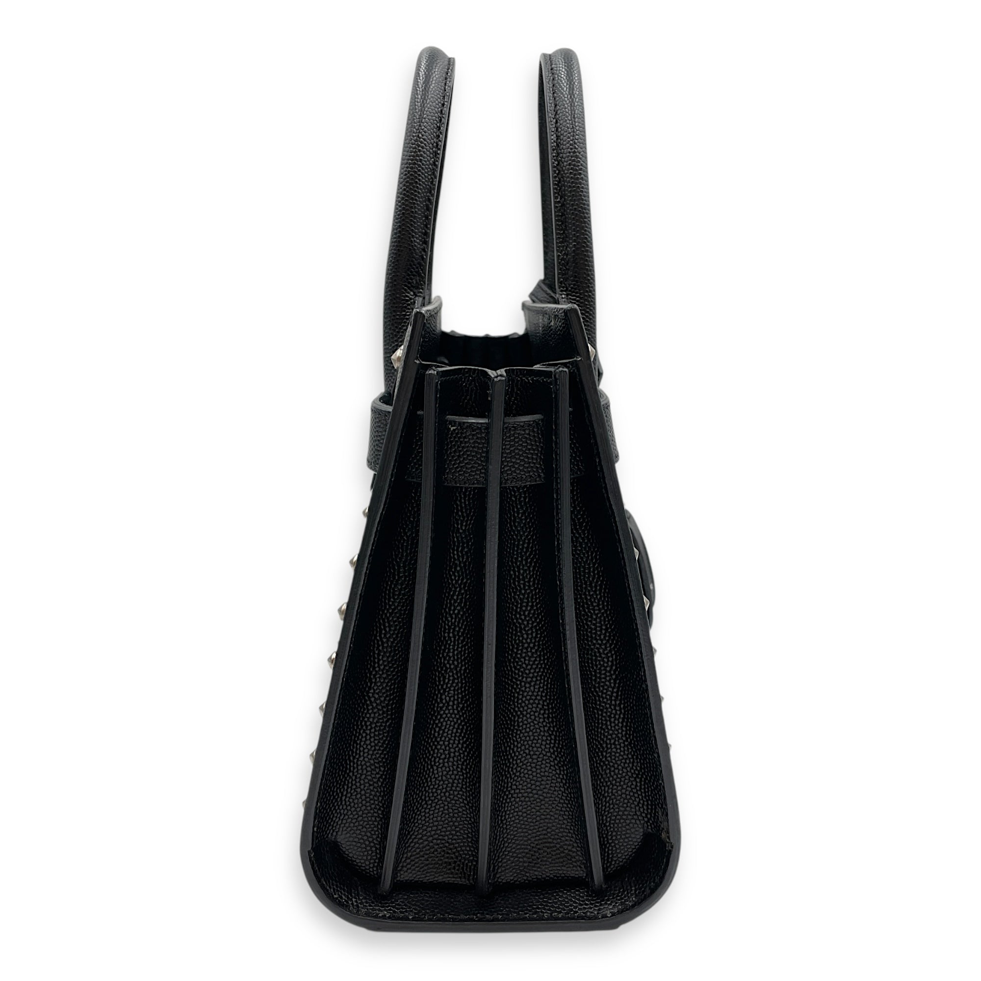 Studded Sac De Jour Nano Black Crossbody Bag in Calfskin, Silver hardware