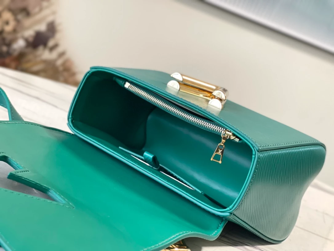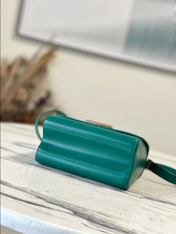#LouisVuittonTwistPM #EpiLeatherBags #LuxuryAccessories #CompactStyle #SerpentineGreen #CowhideTrim #FashionableFunctionality #GoldHardware #LVTwistLock #VersatileCarrying