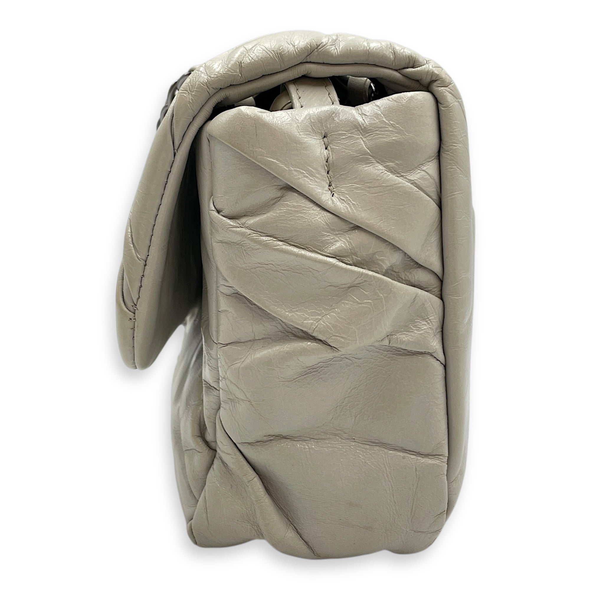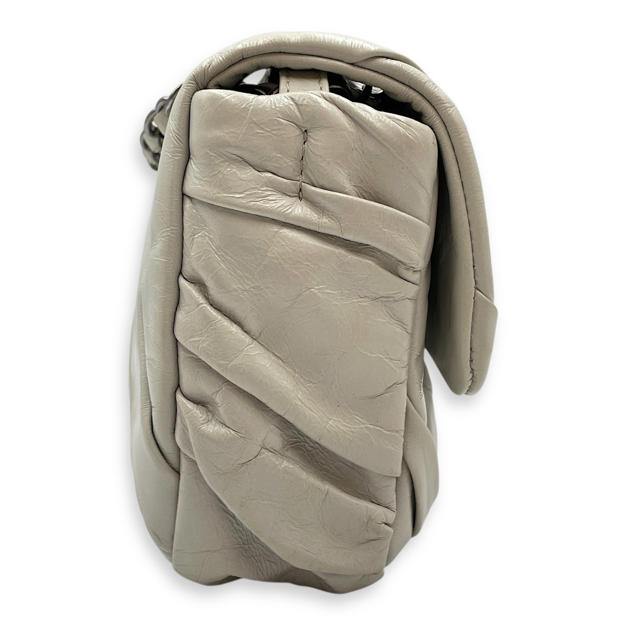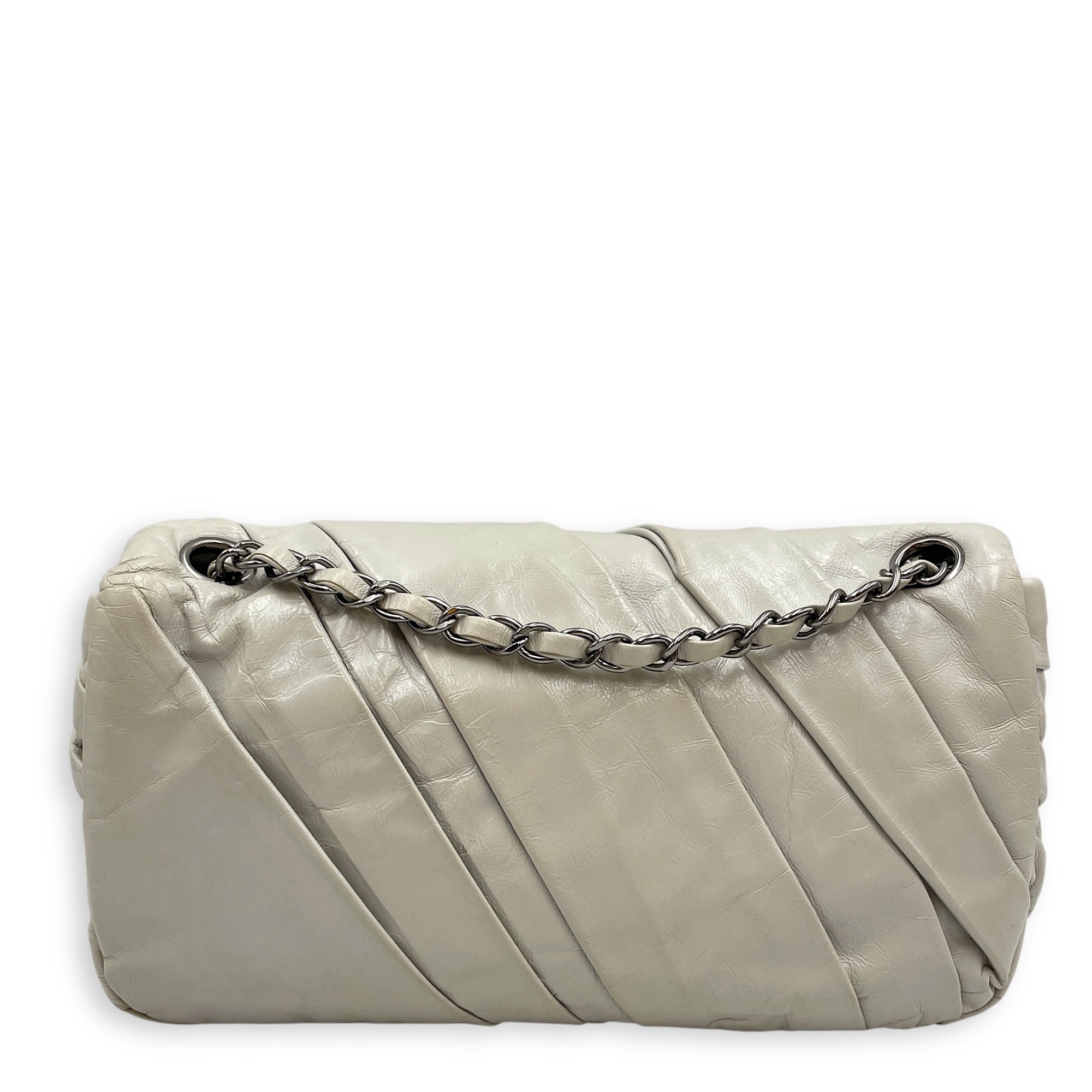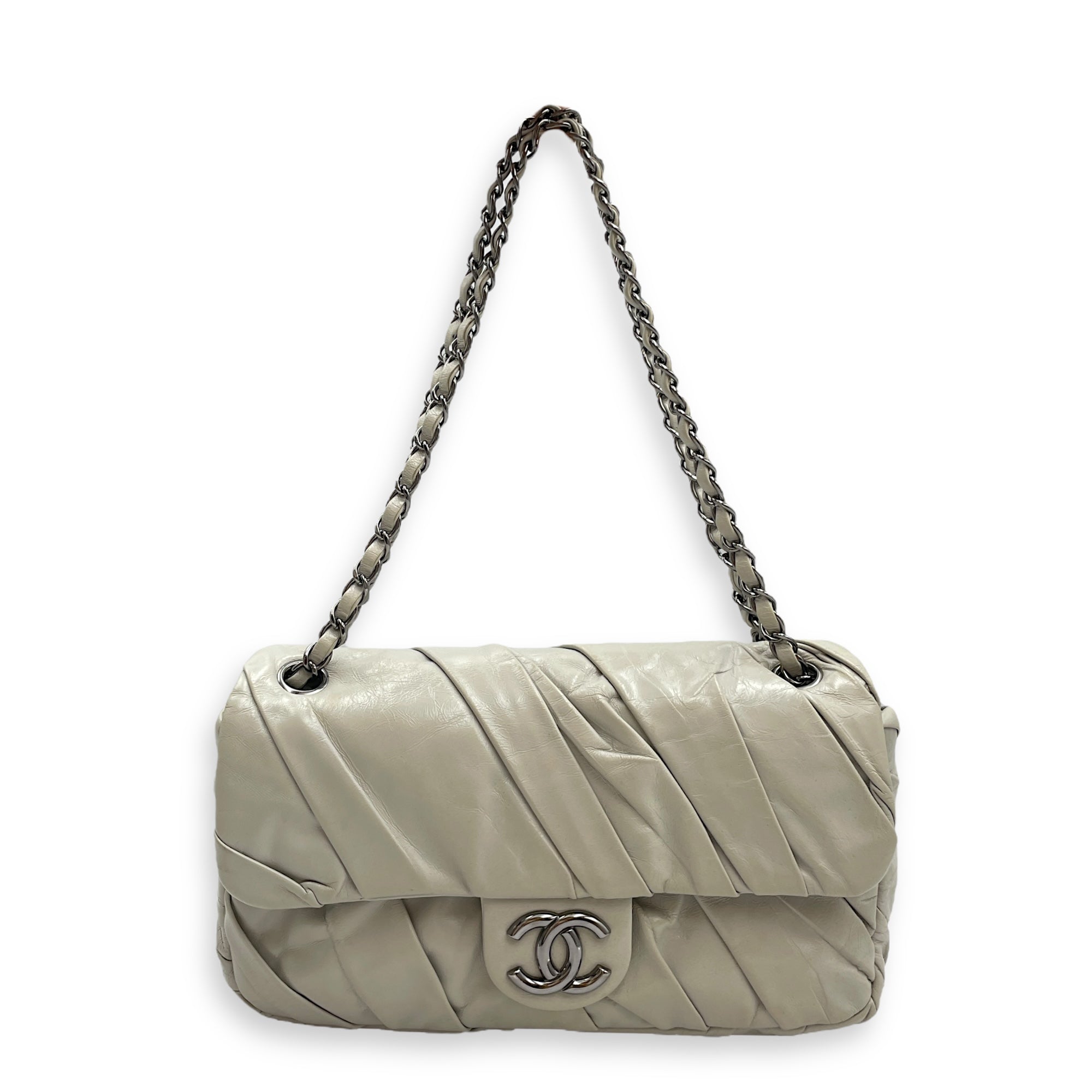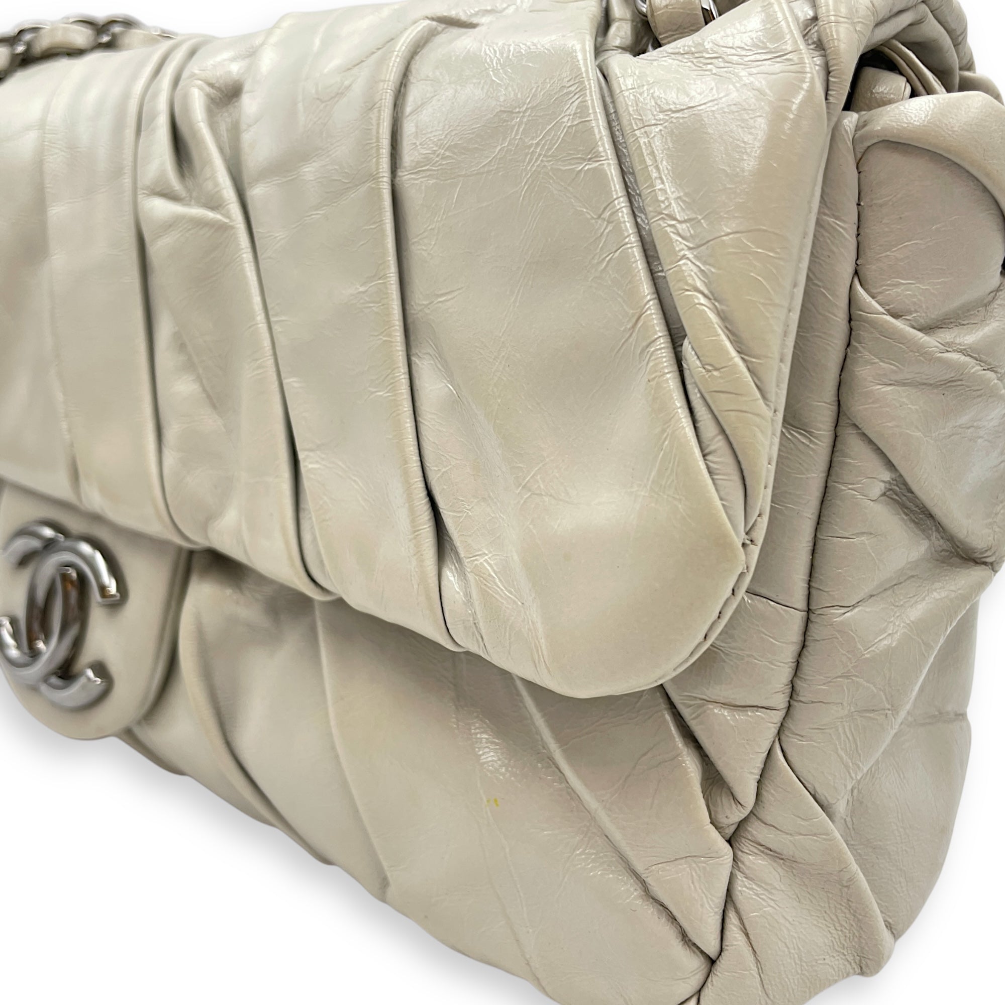 Twisted Maxi Grey Flap Bag in Calfskin, Silver hardware