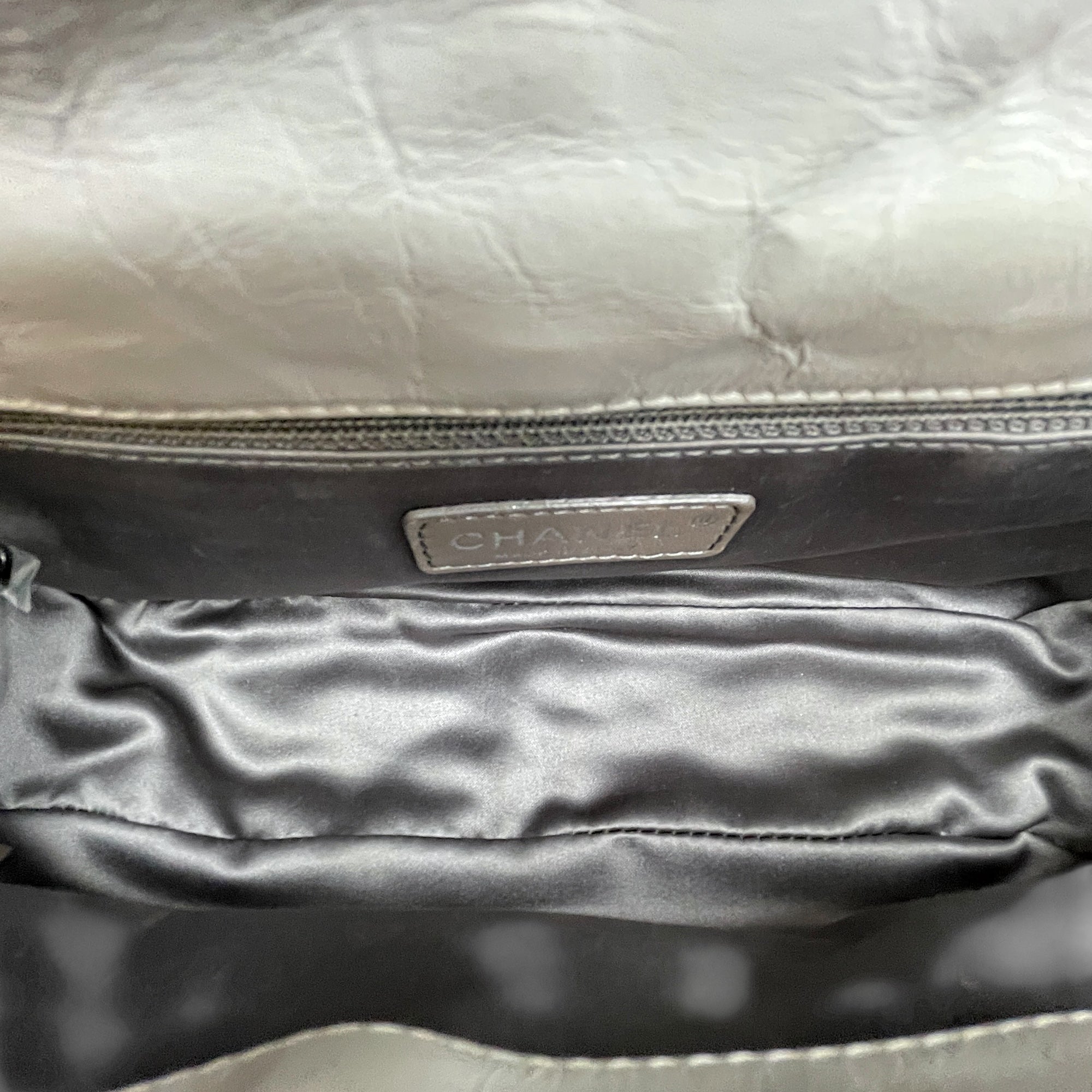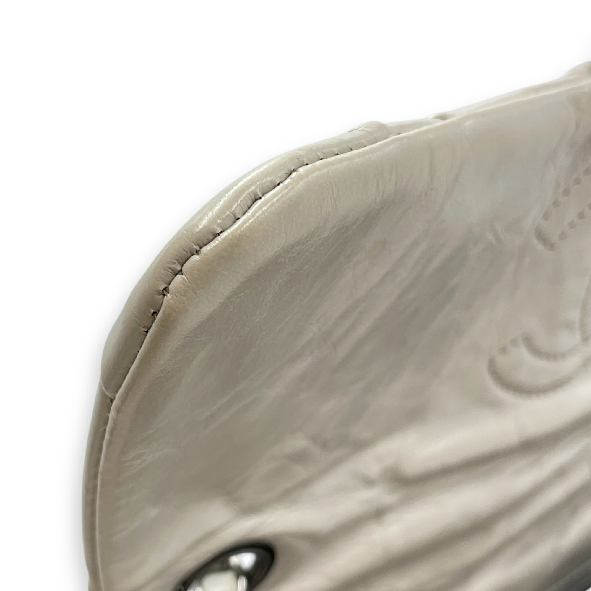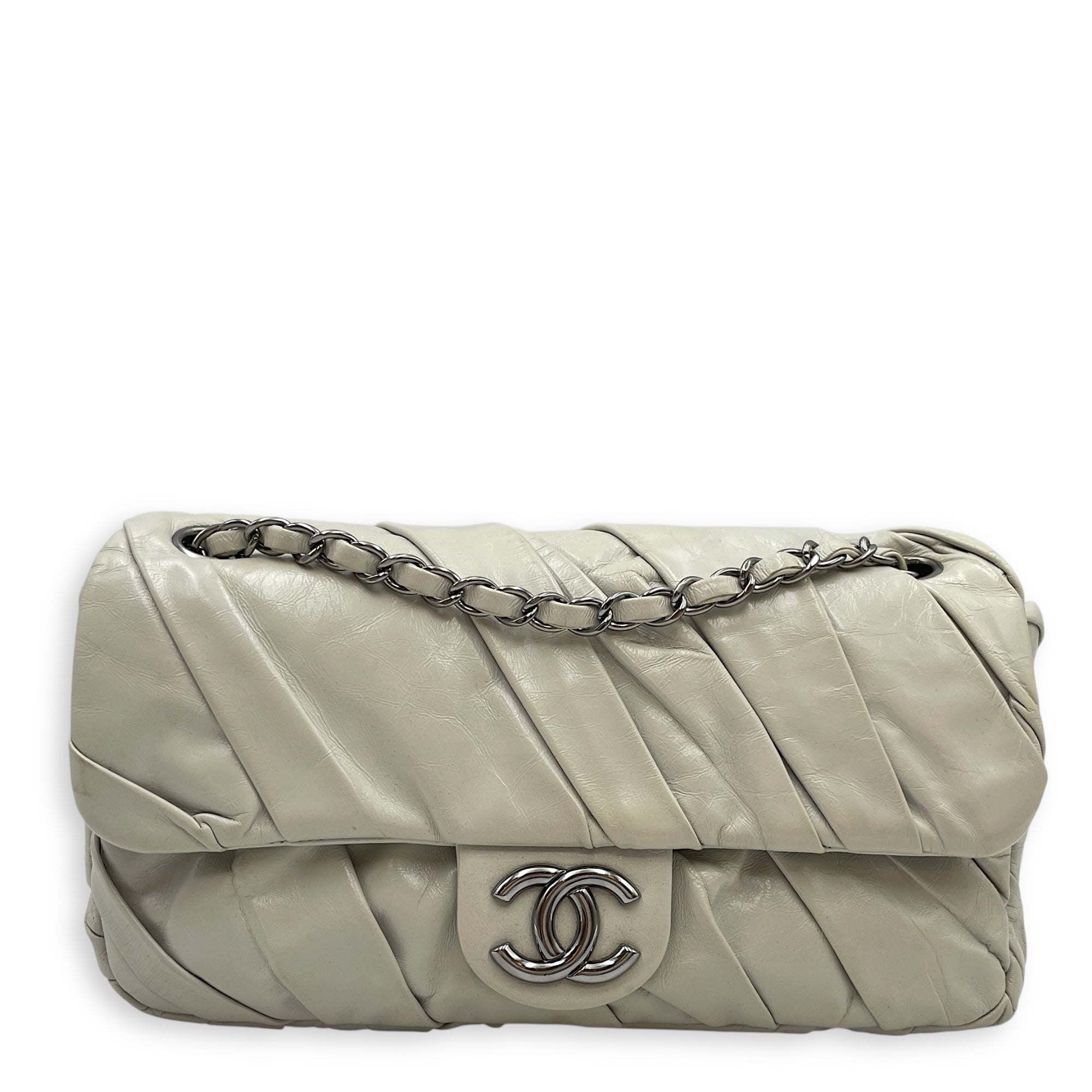 Be the first to review “Twisted Maxi Grey Flap Bag in Calfskin, Silver hardware”