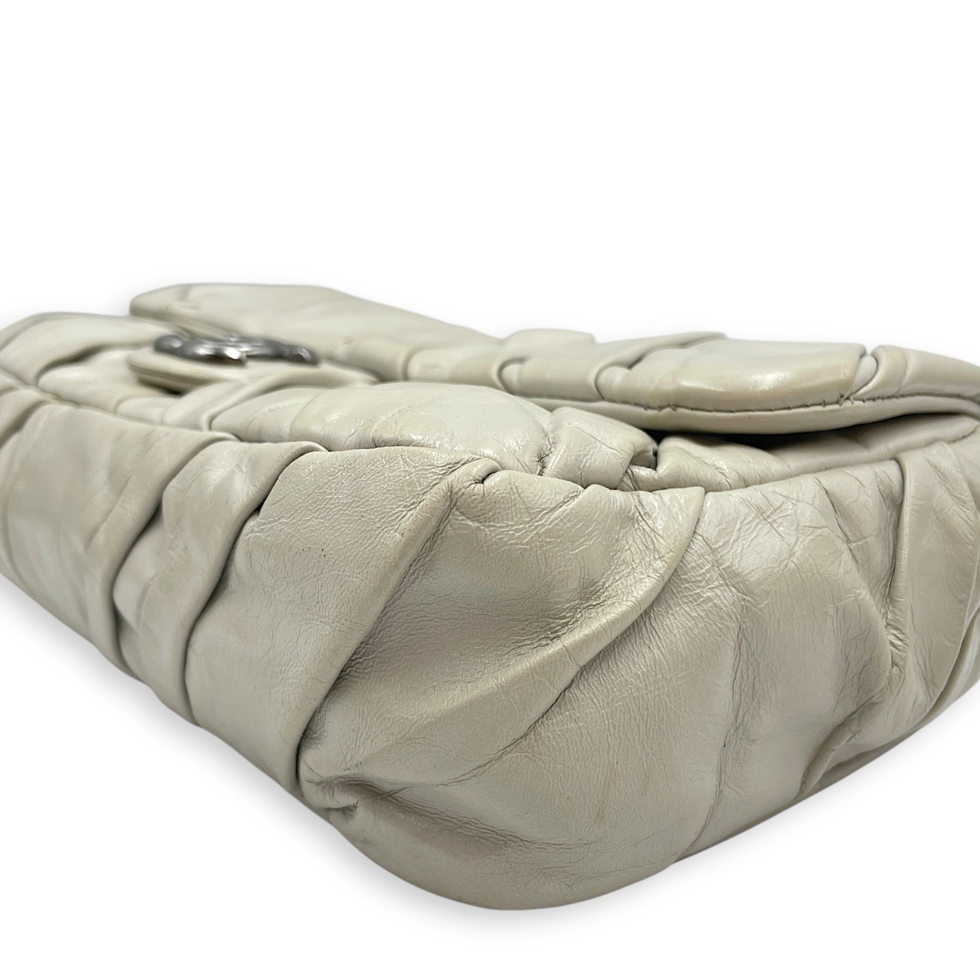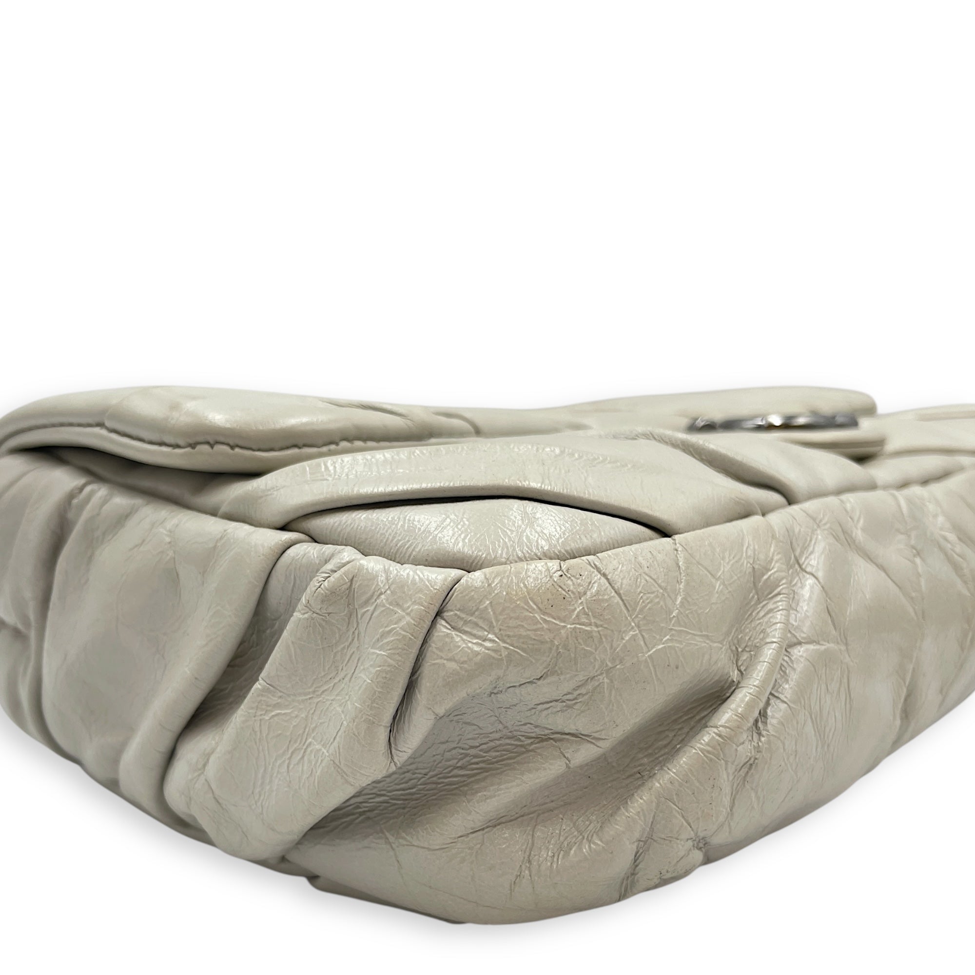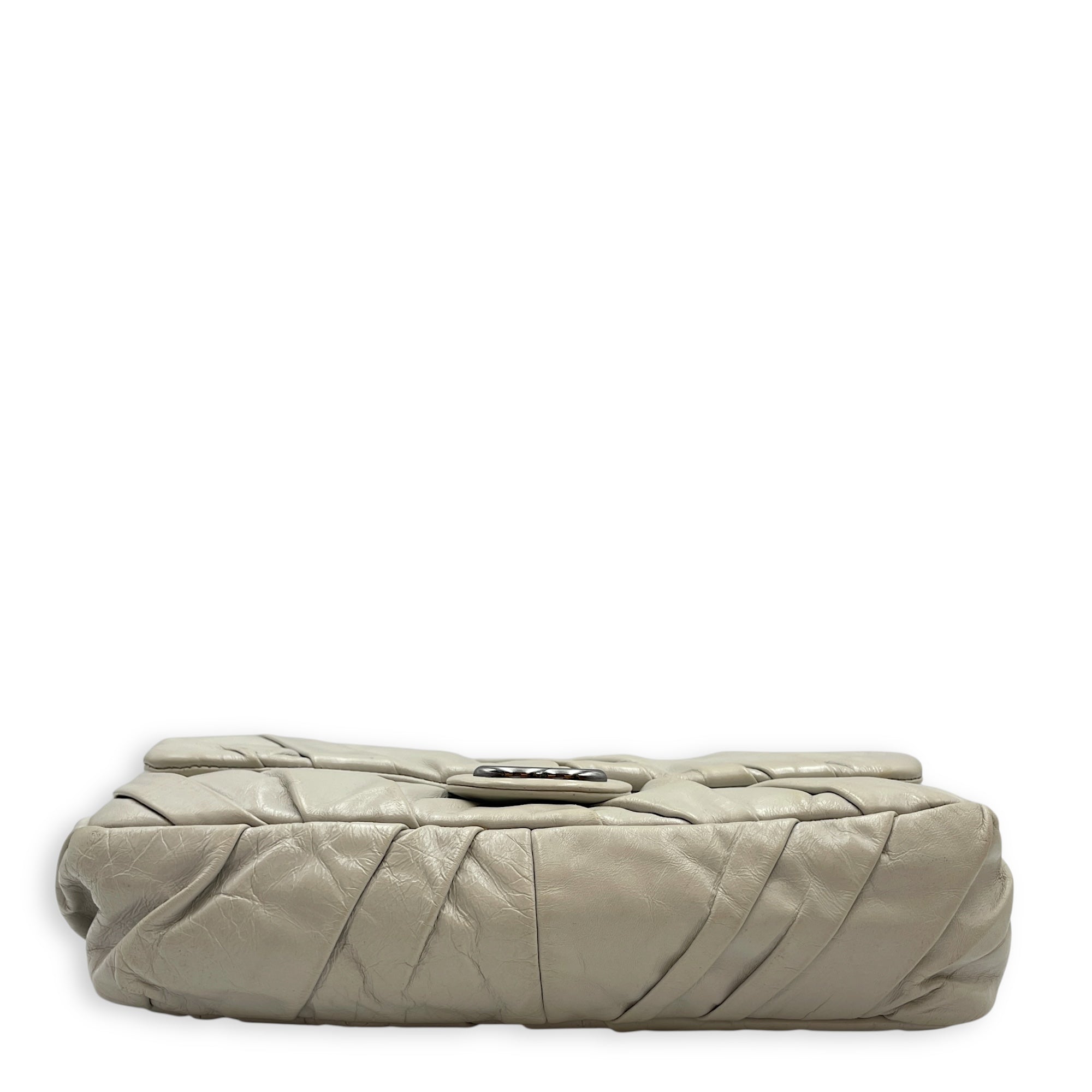 Be the first to review “Twisted Maxi Grey Flap Bag in Calfskin, Silver hardware”