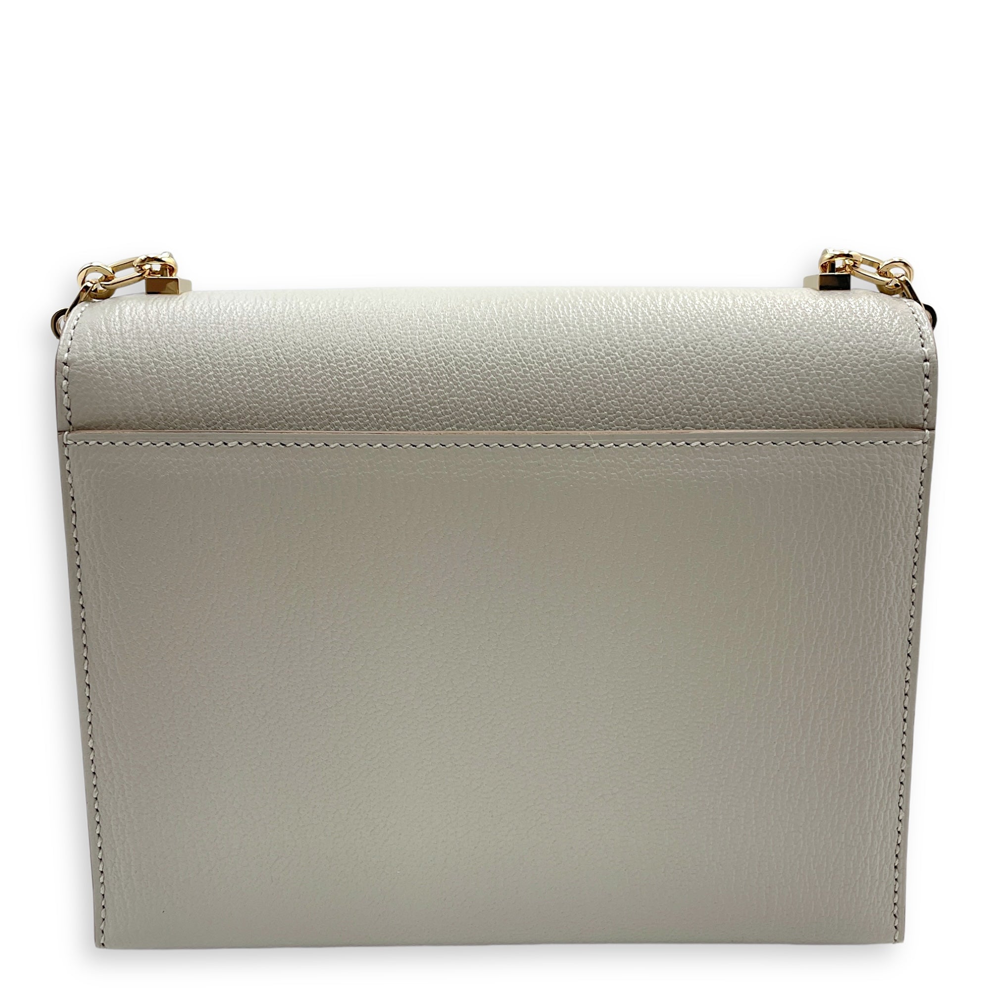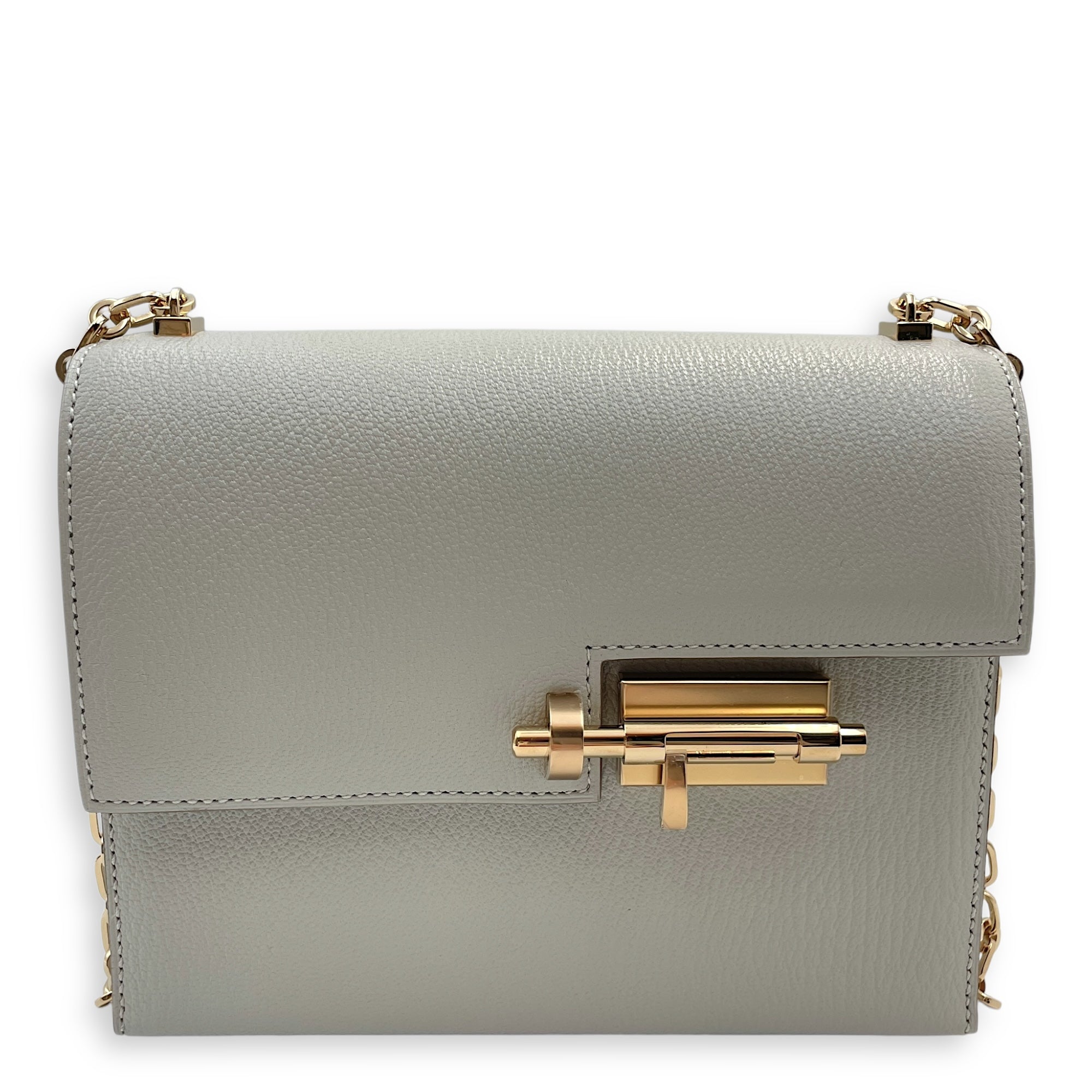 Verrou Chaine Mini Gris Perle in Chevre Mysore, Permabrass hardware