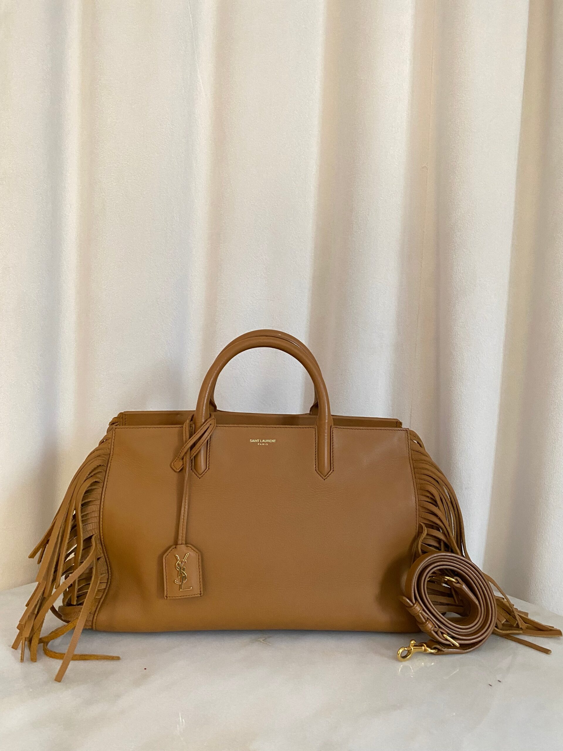 YSL Brown Fringe Rive Gauche Cabas Bag