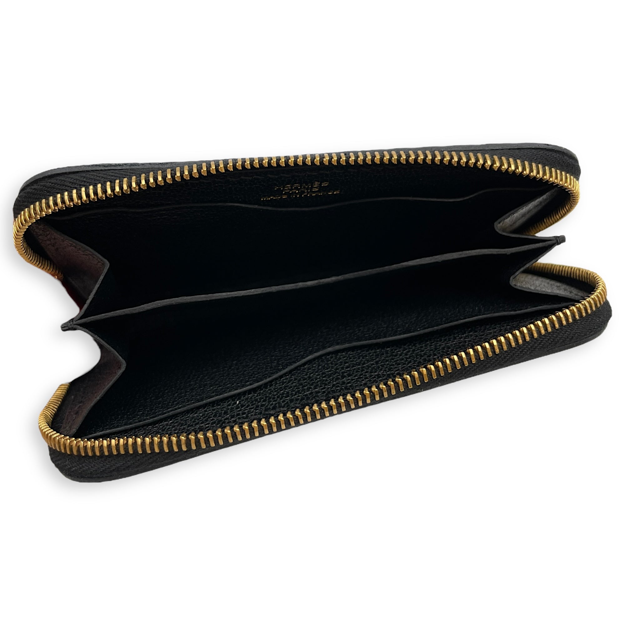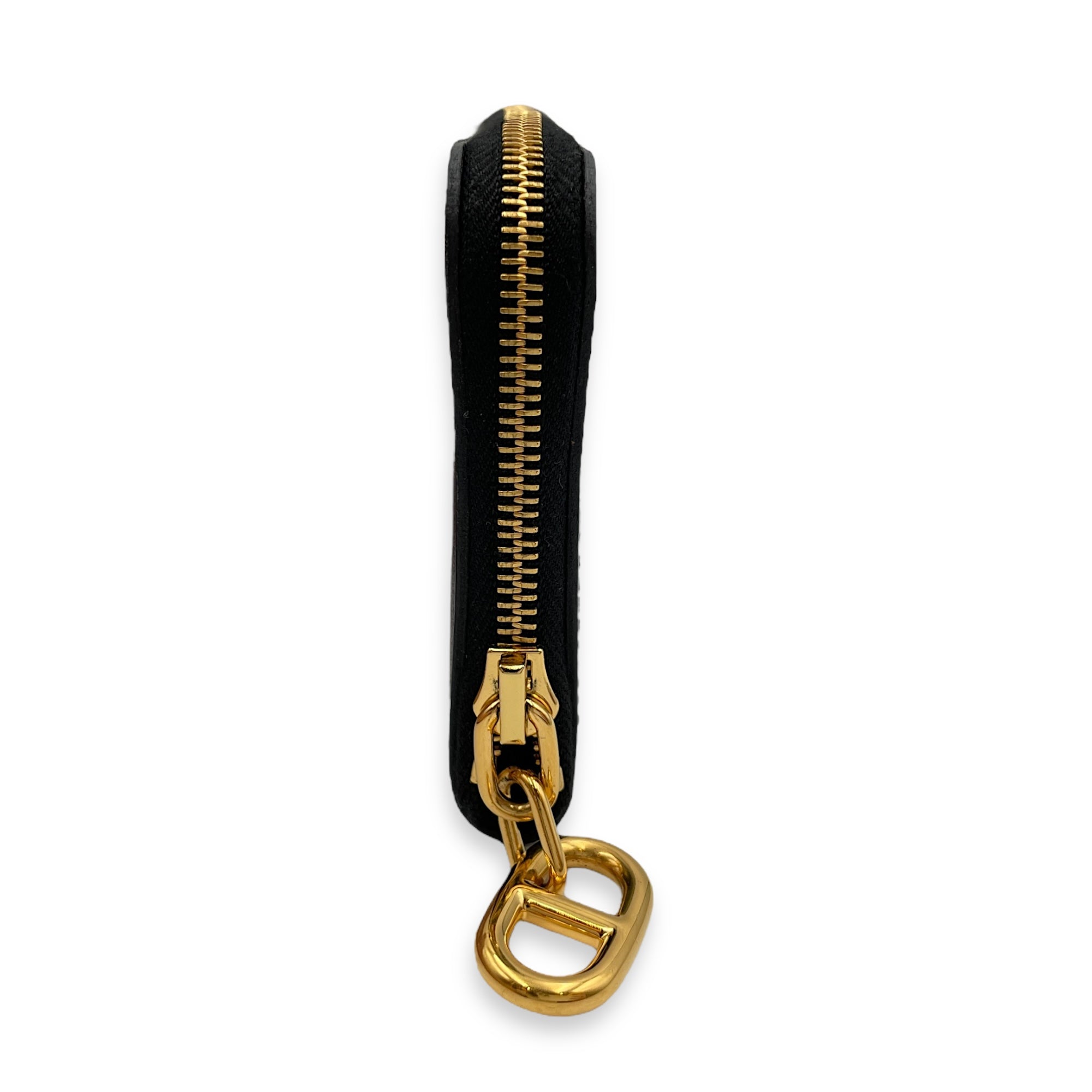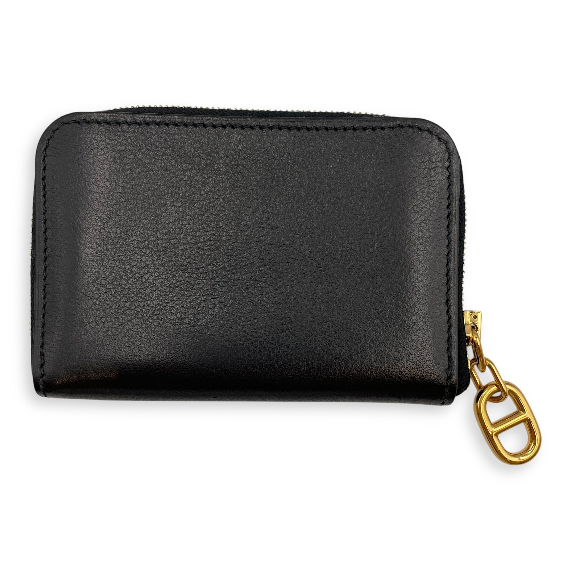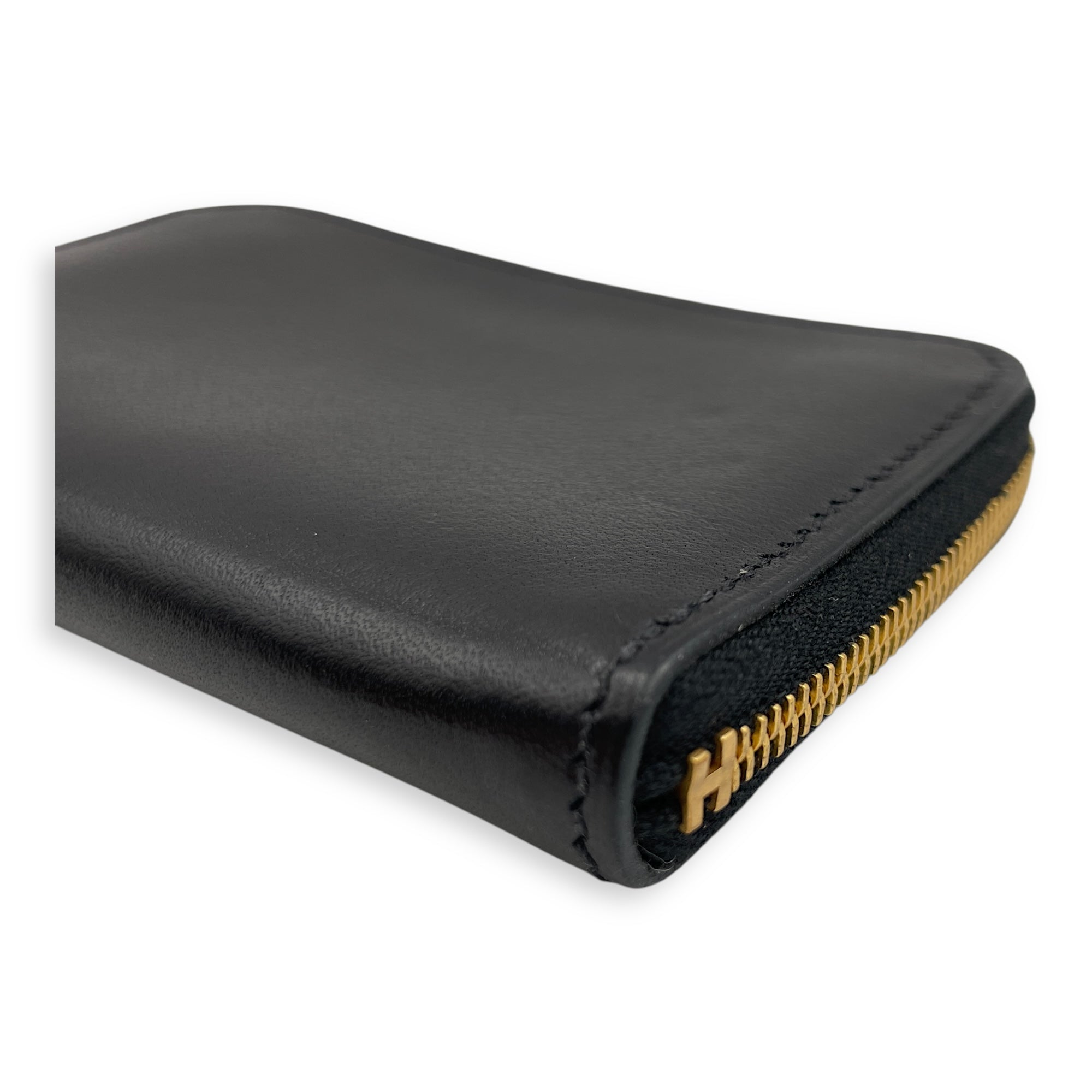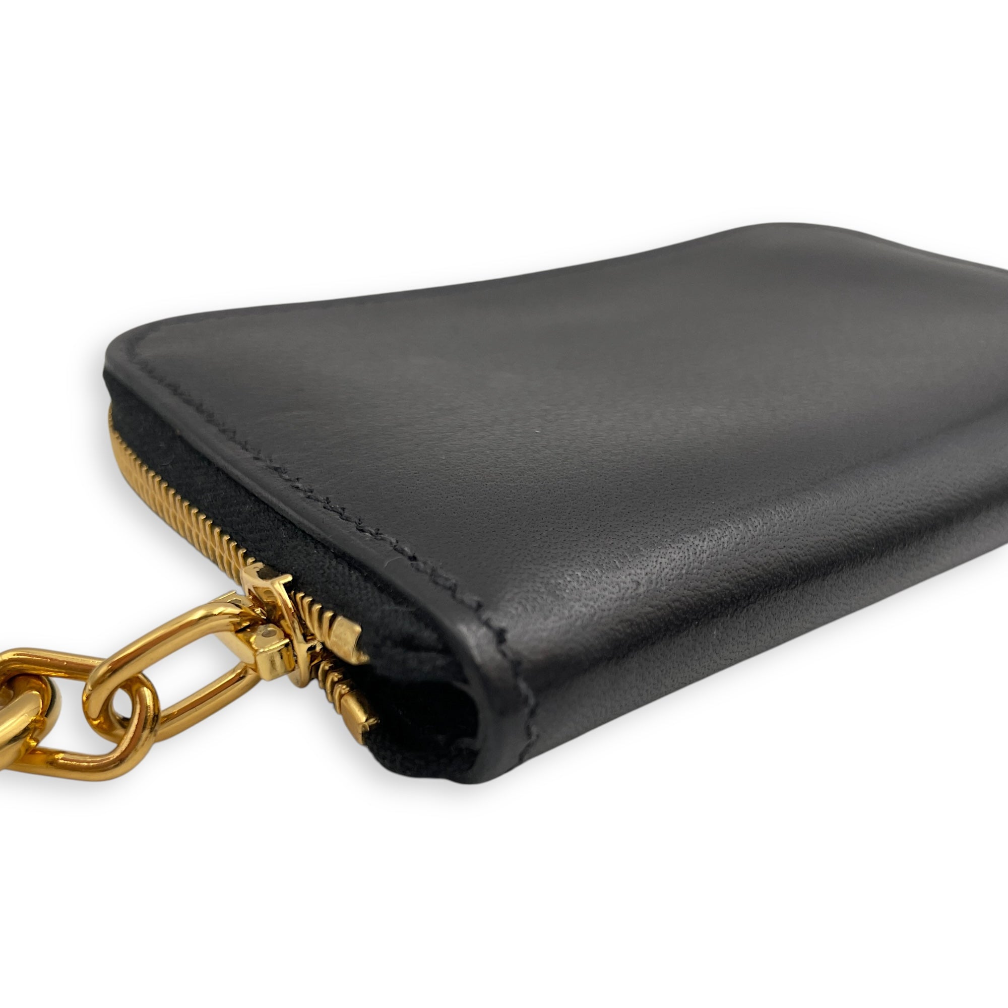 Zipengo Chaine D’ancre Compact Black Card Holder in Evercalf, Gold hardware