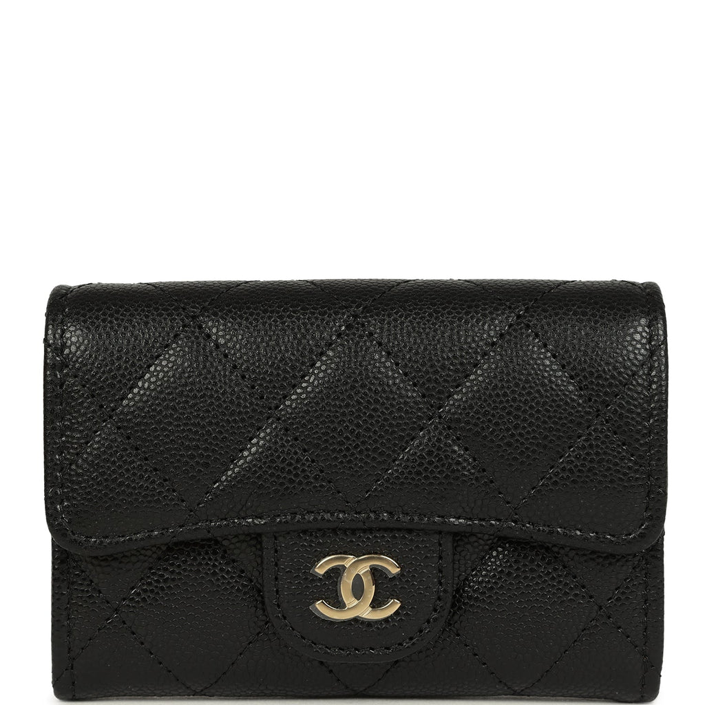Chanel Classic Card Holder Wallet Black Caviar Light Gold Hardware
